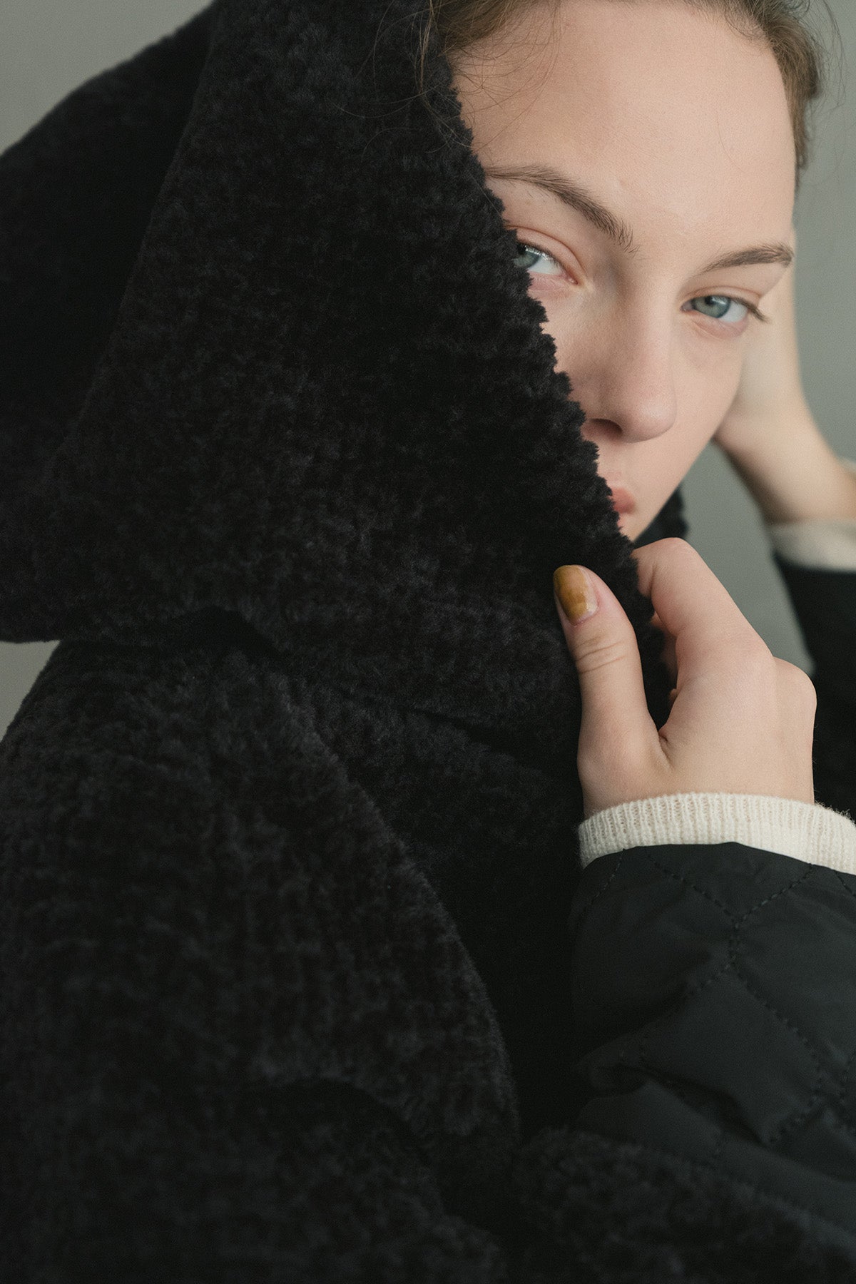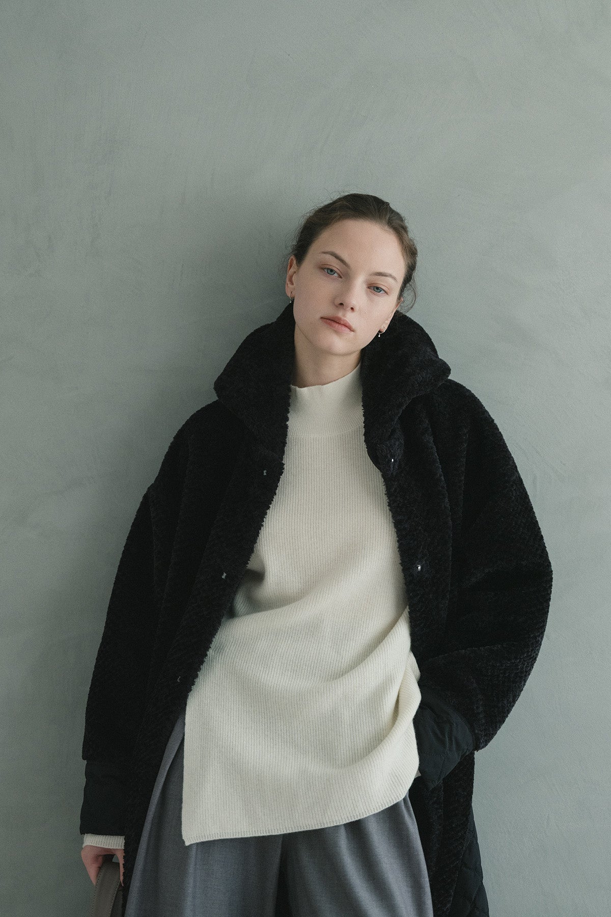 ブラックカラーならではの艶感あるボアが可愛さを大人仕様に更新してくれます