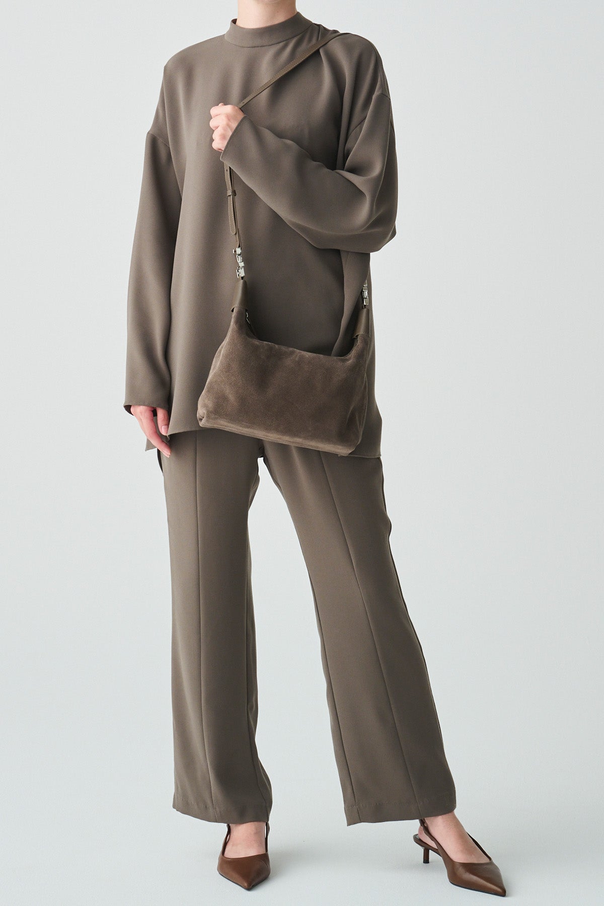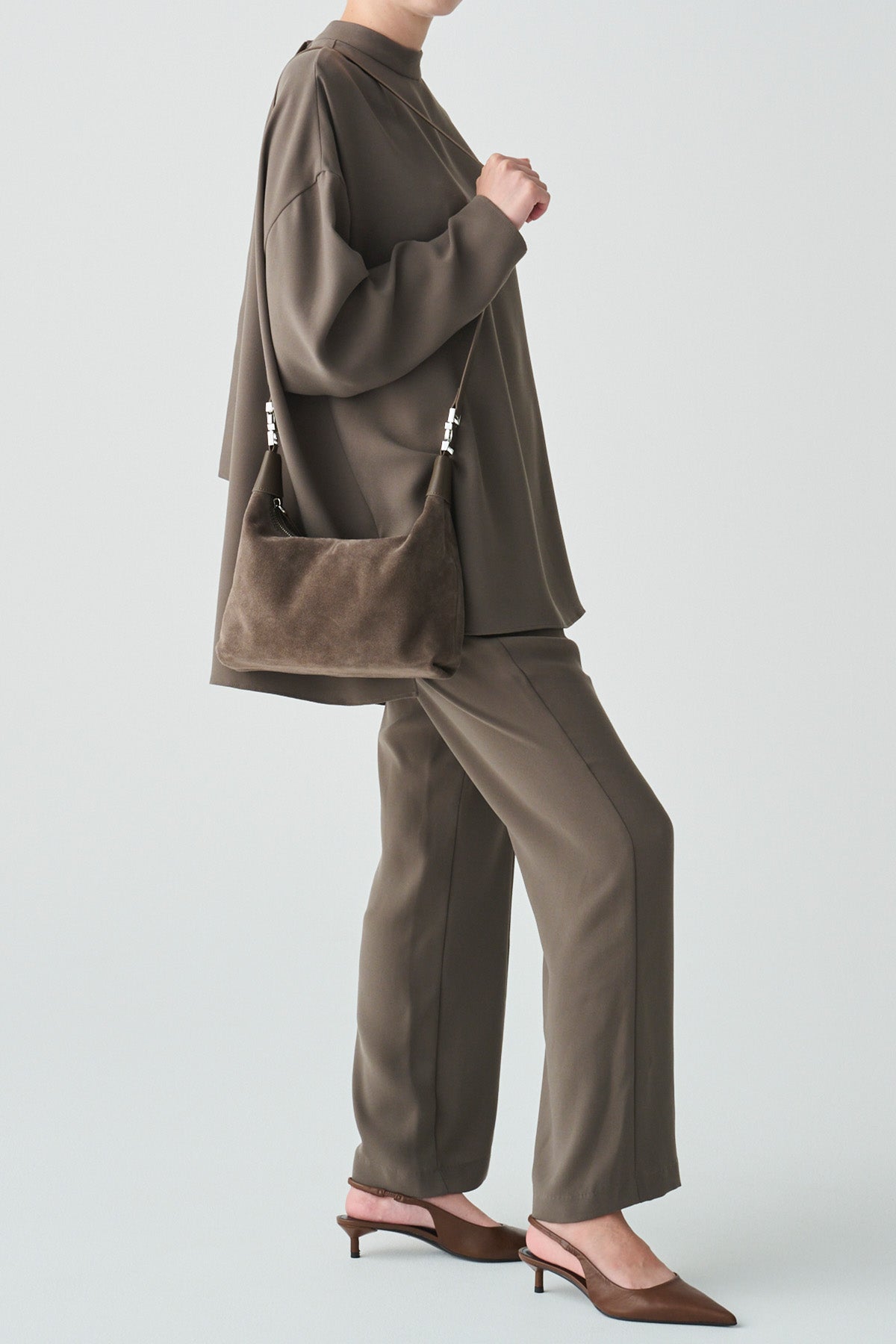 滑らかなスウェード素材が上品な表情を見せるバッグ