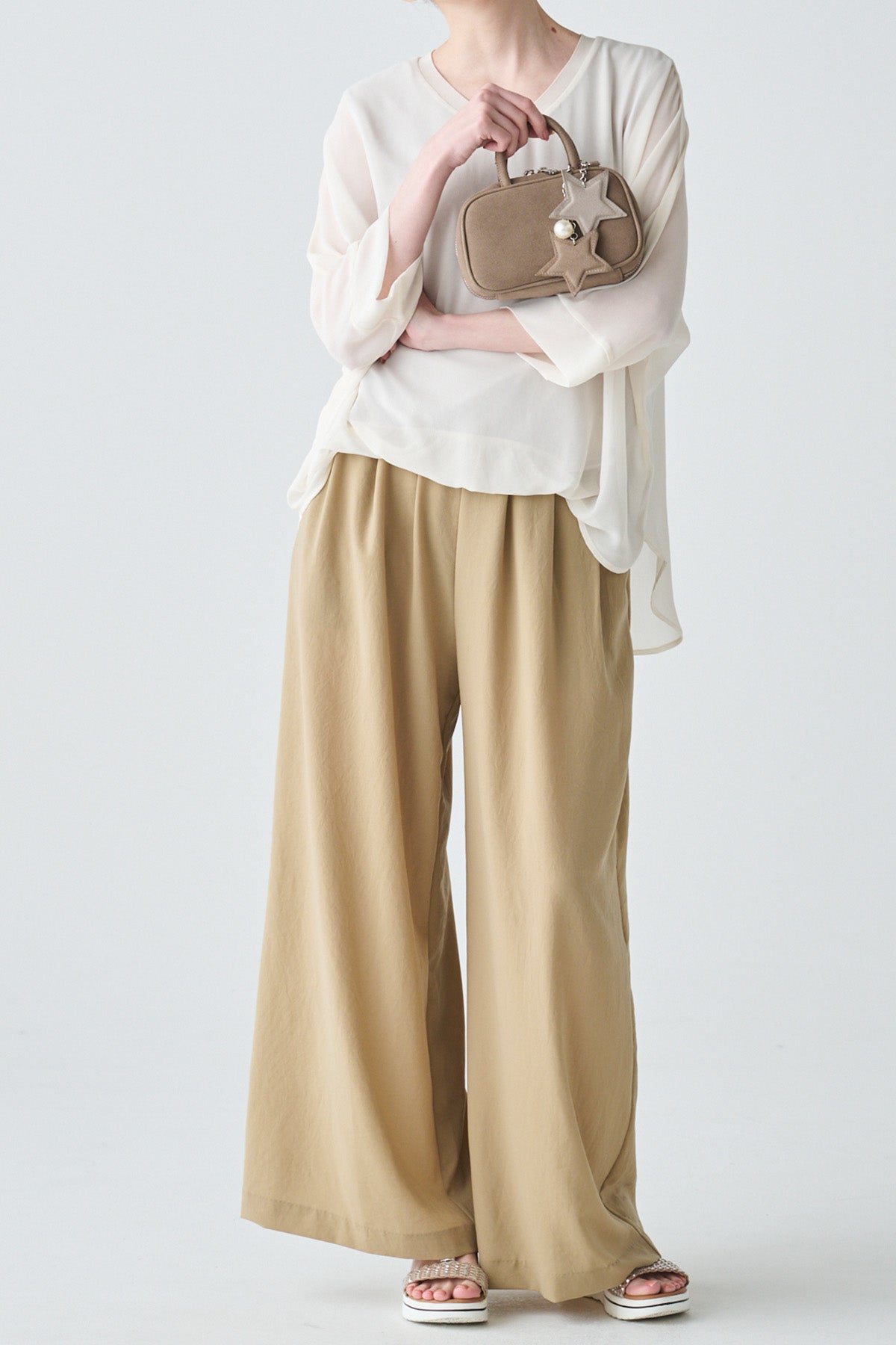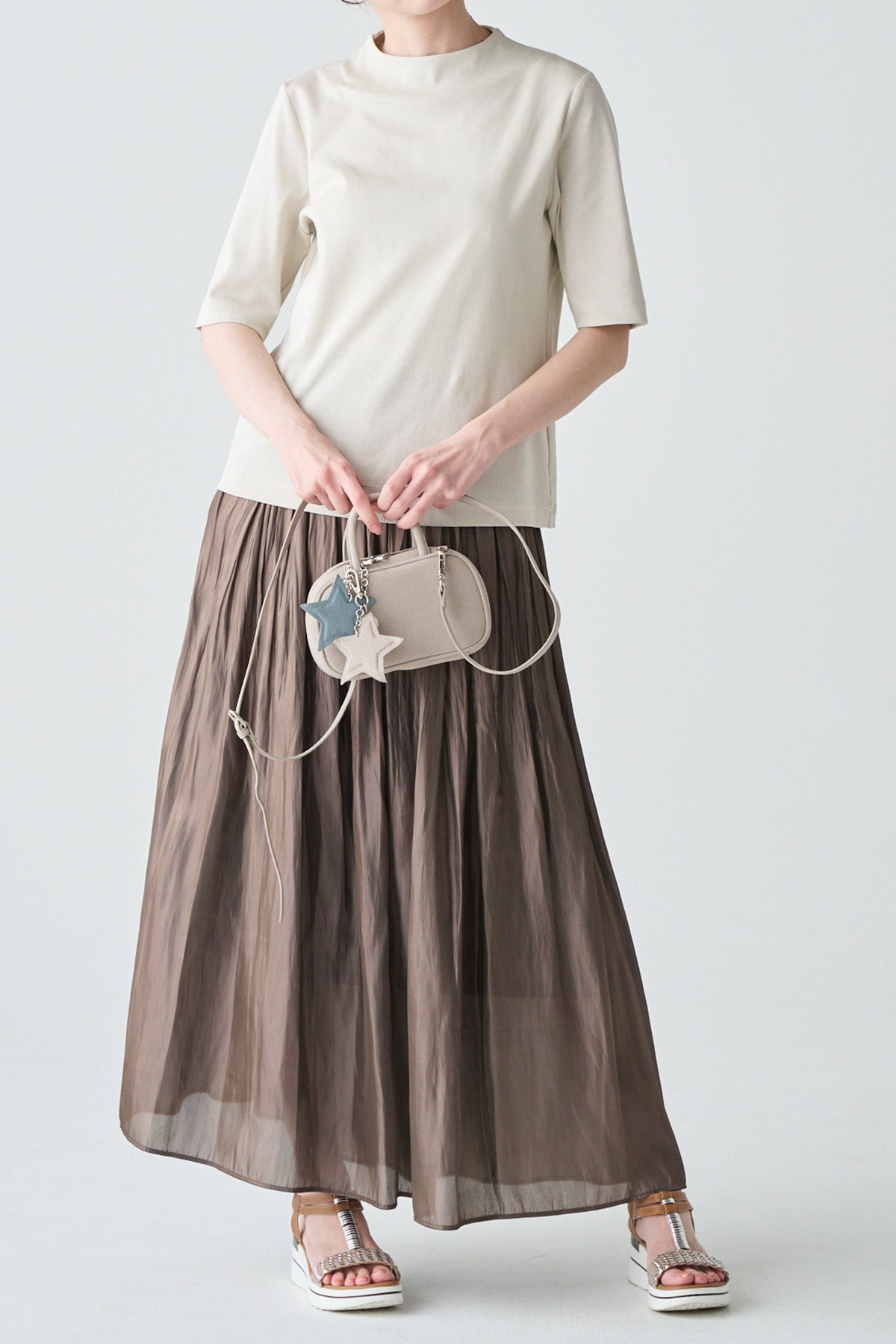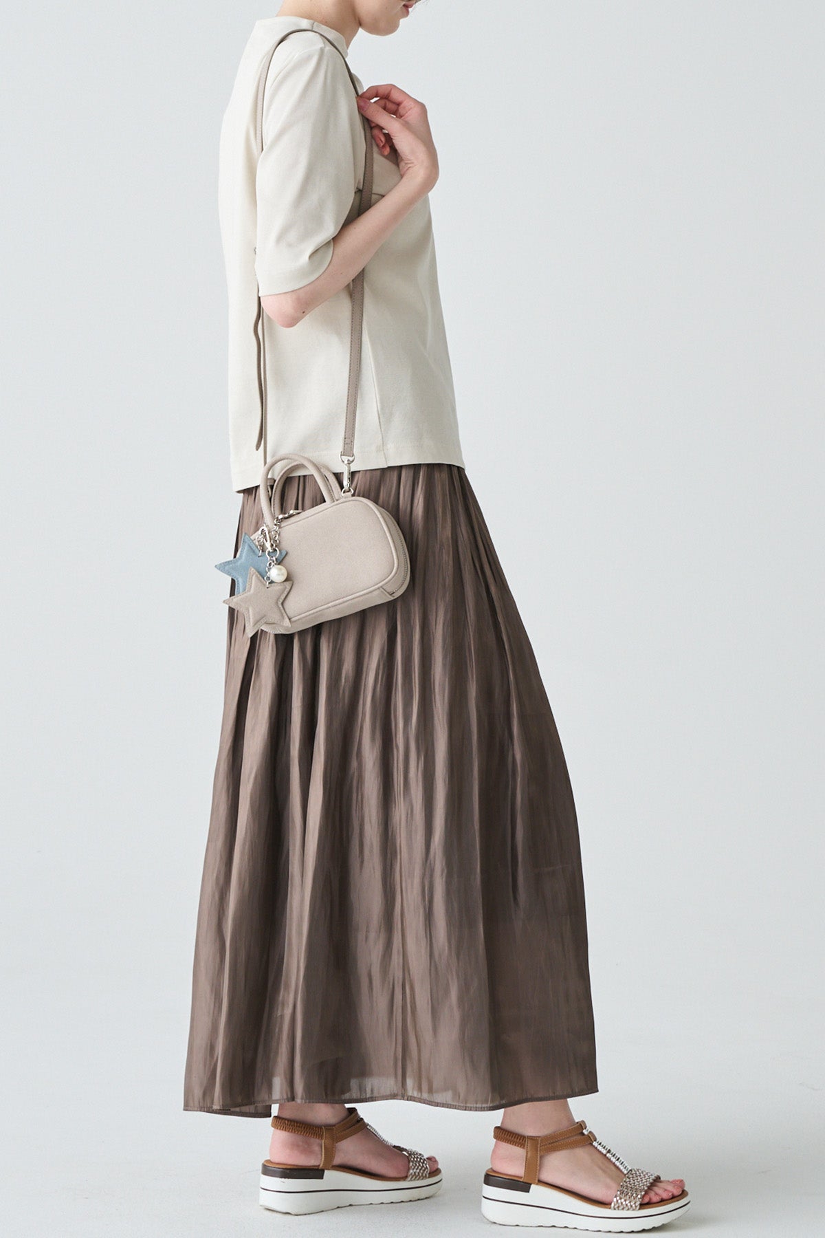 星型チャームとパールが愛らしいフェイクスウェードのミニバッグ キャッシュ