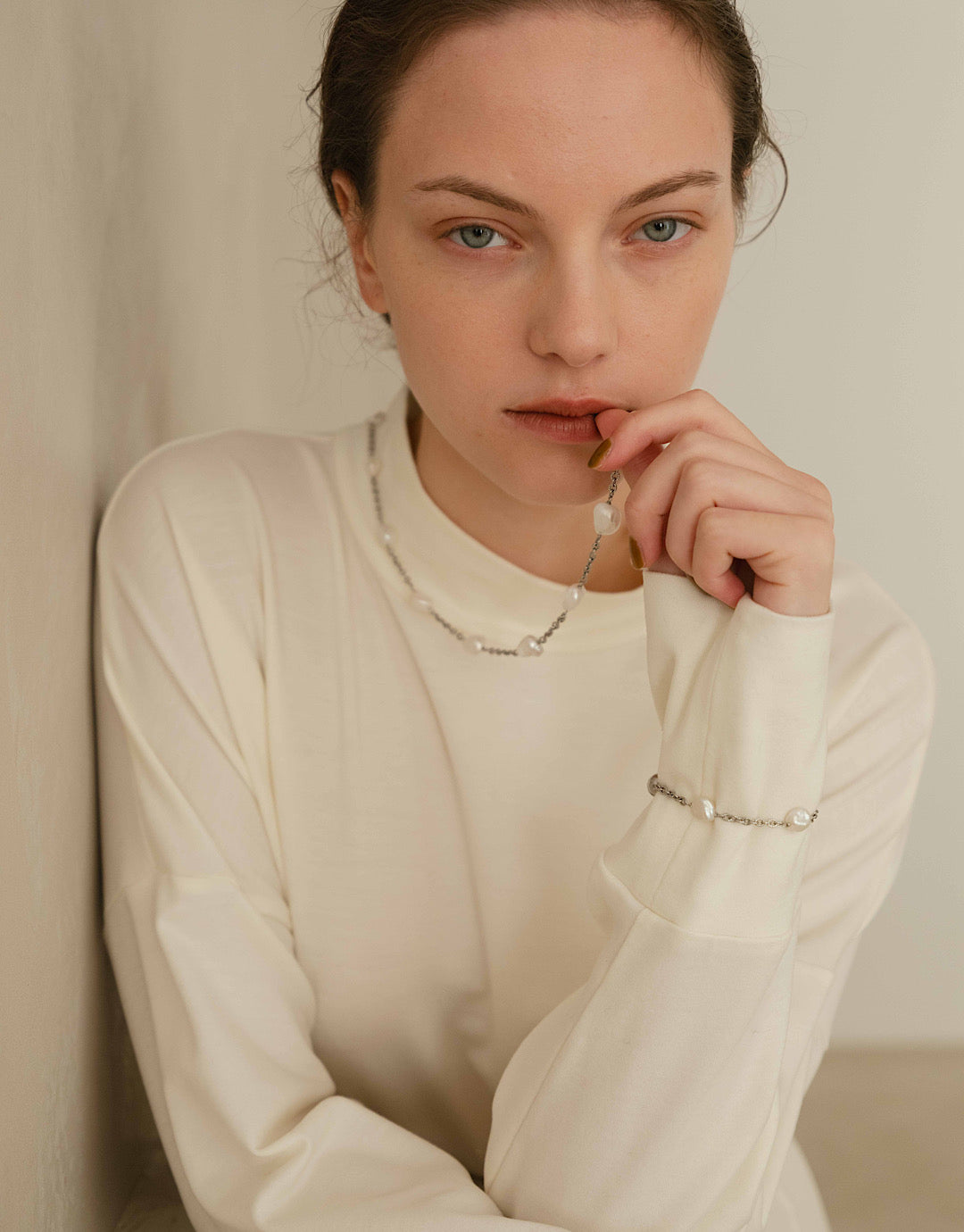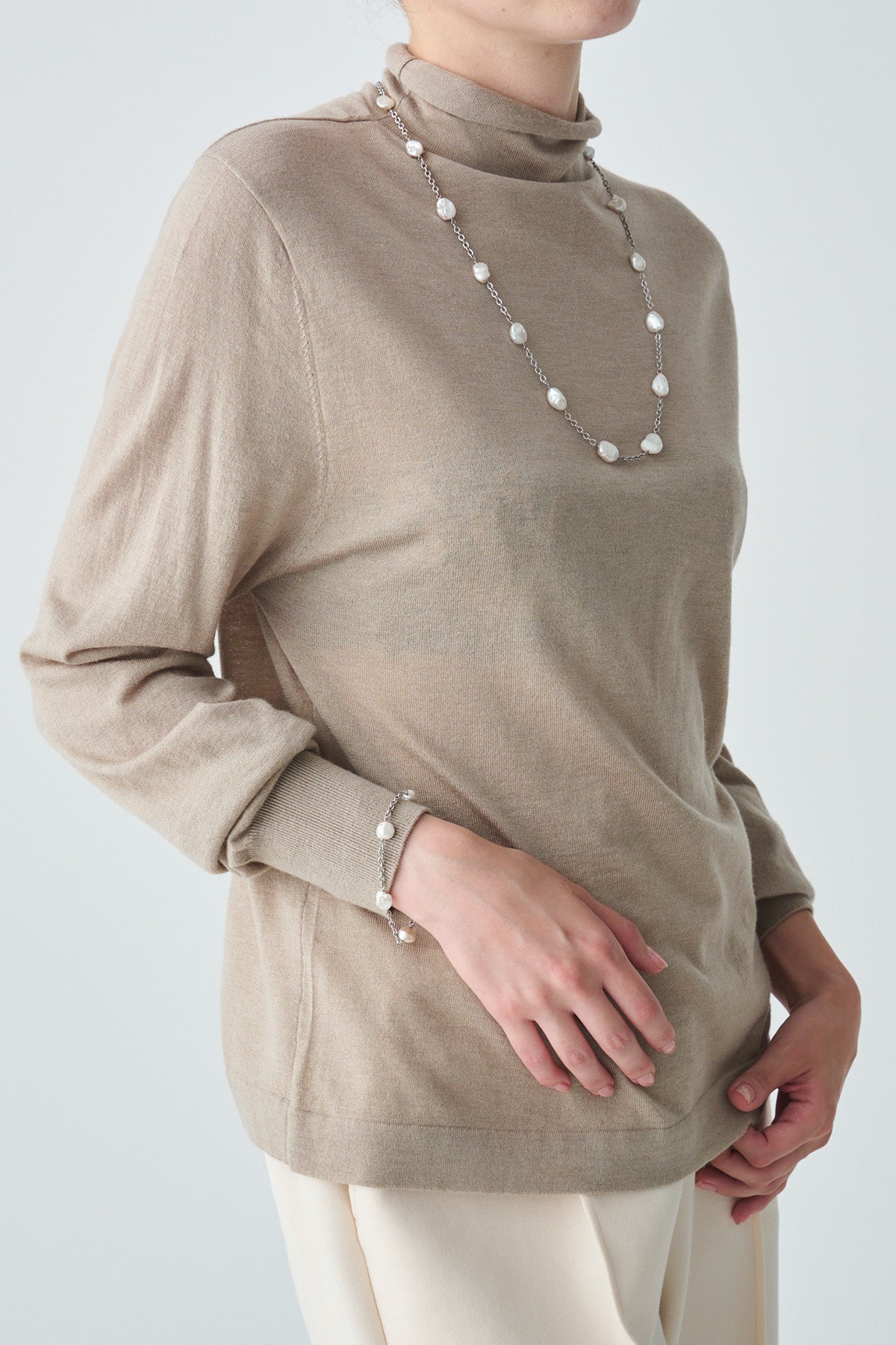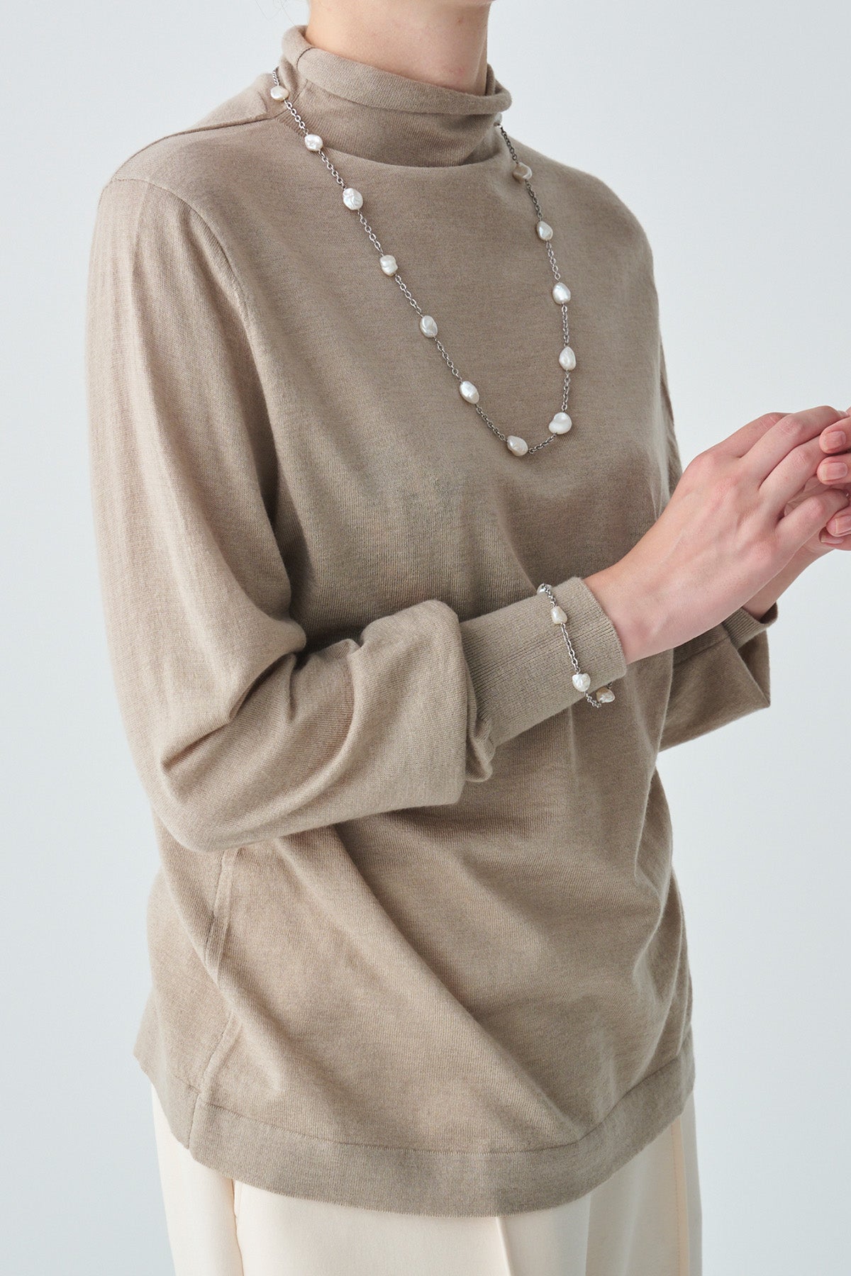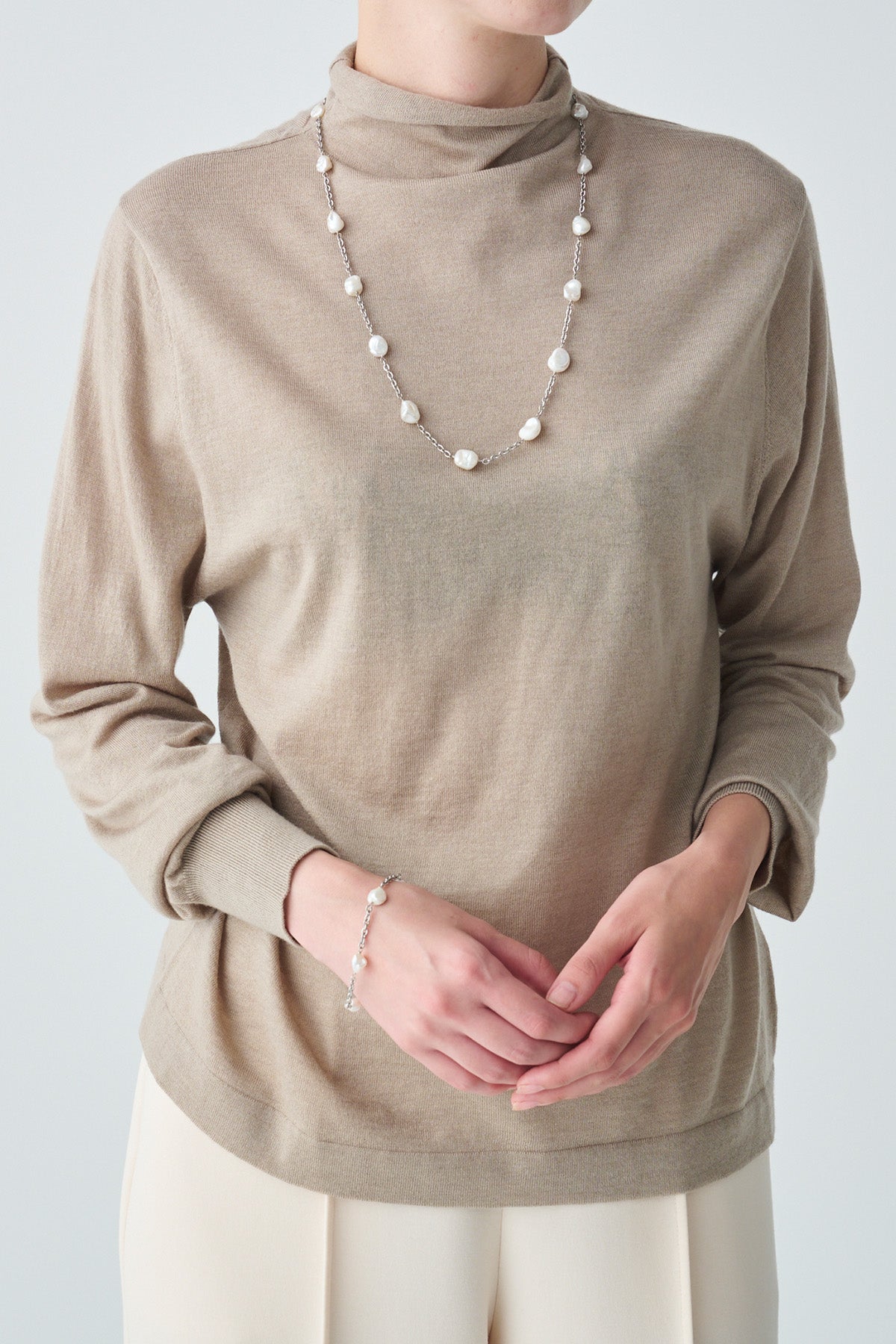 ネックレスとブレスレットを連結すれば、ロングネックレスとしてもアレンジ可能
