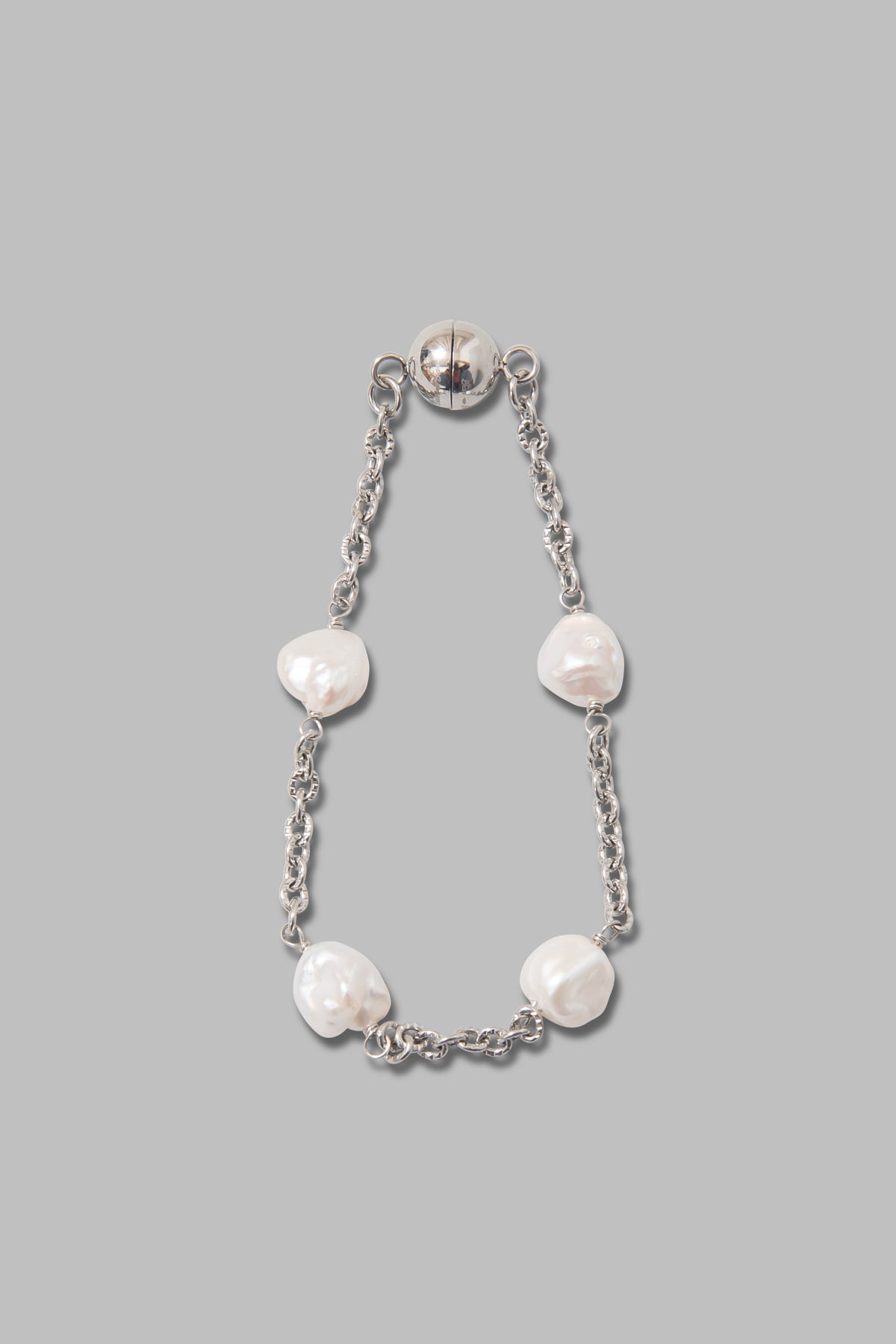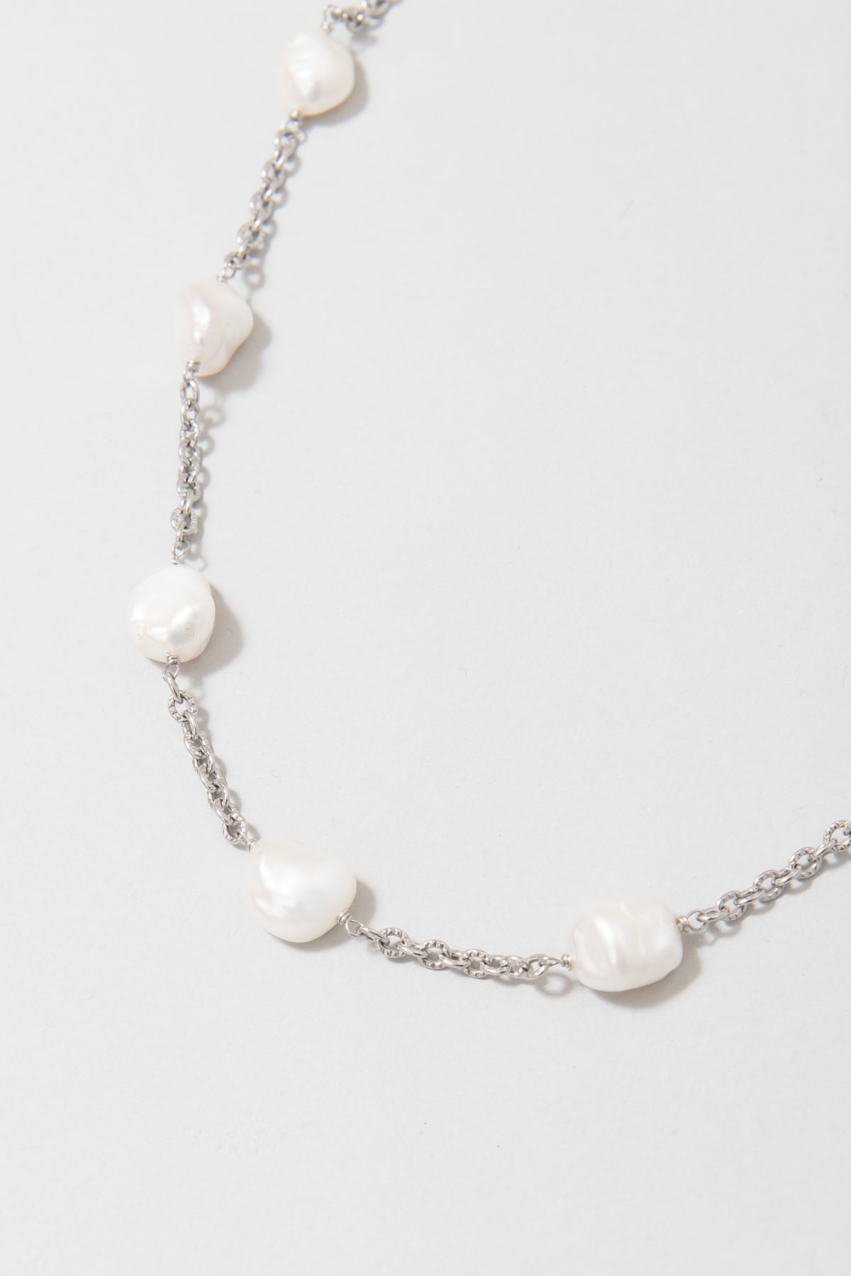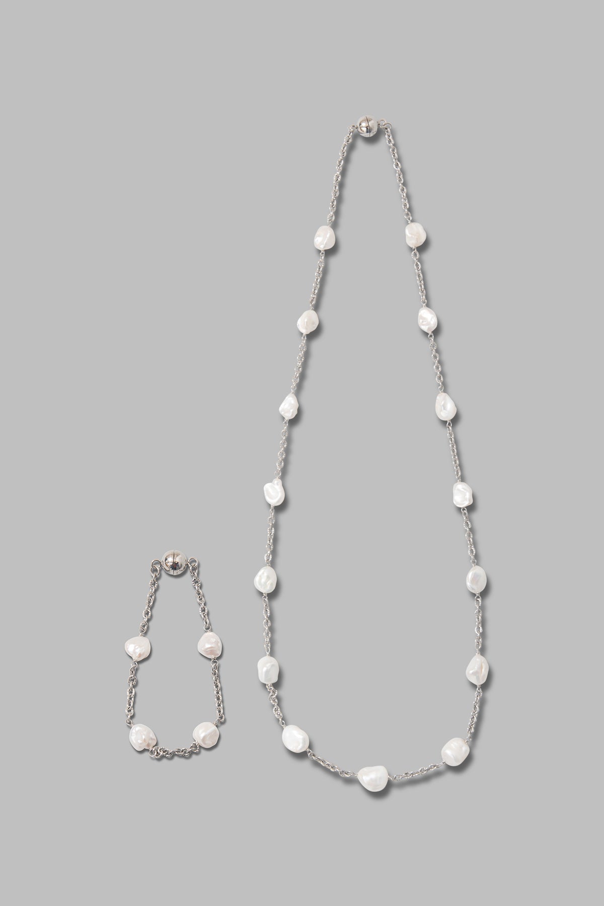 バロックパールにシルバーチェーンにあしらった、上品なネックレスとブレスレットのセット