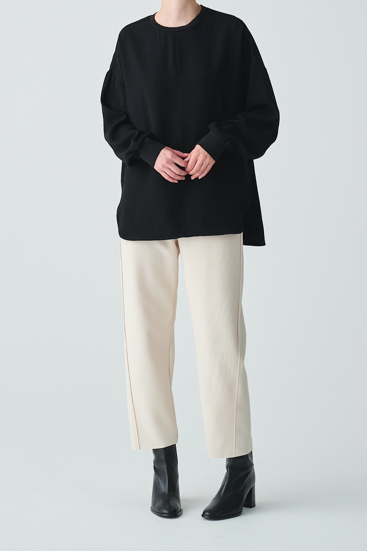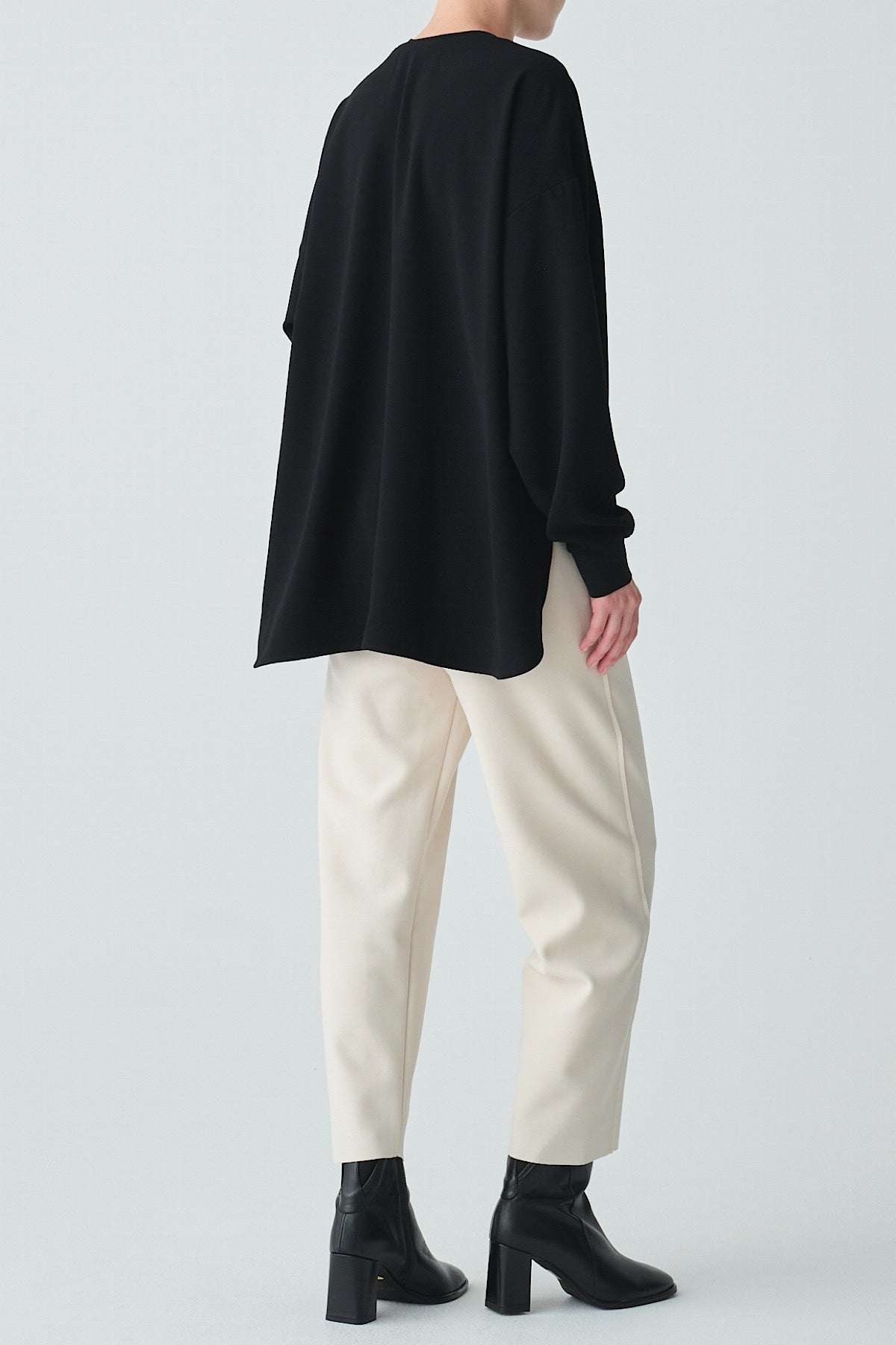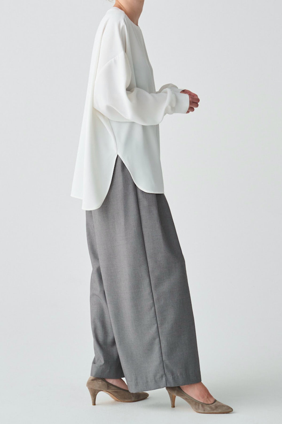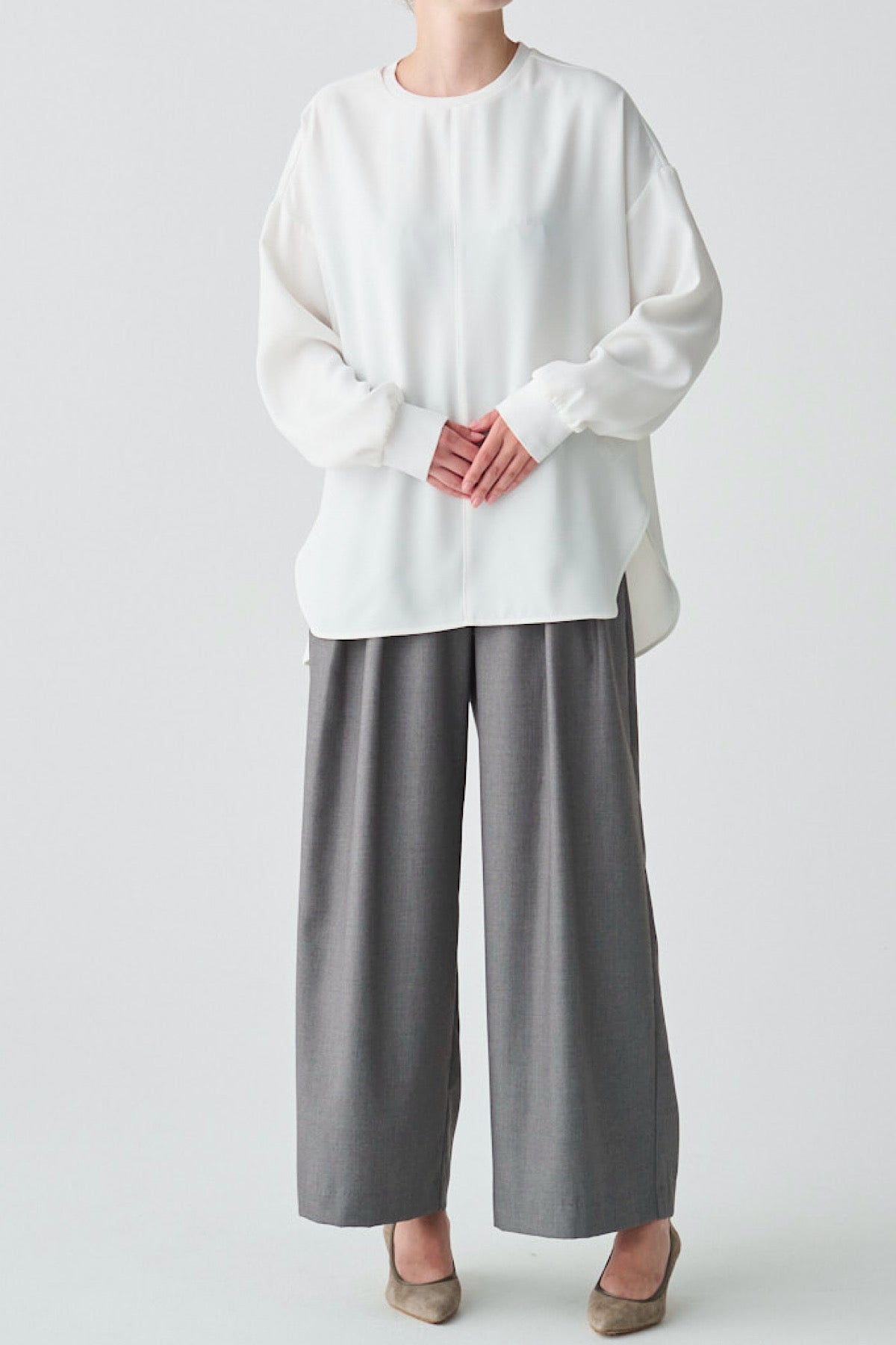 とろみのあるジョーゼット素材が生む美しいドレープ感で、ブラウスのようにきちんと感がありながら、ロンT感覚で気軽に着られる一枚