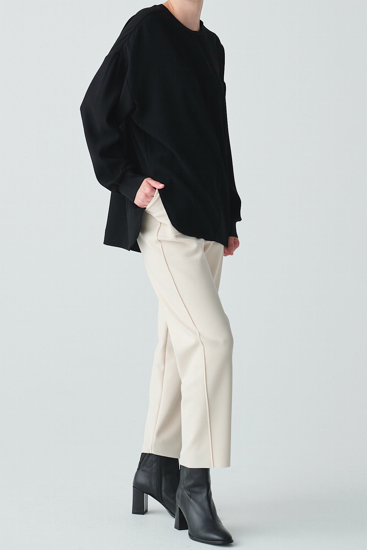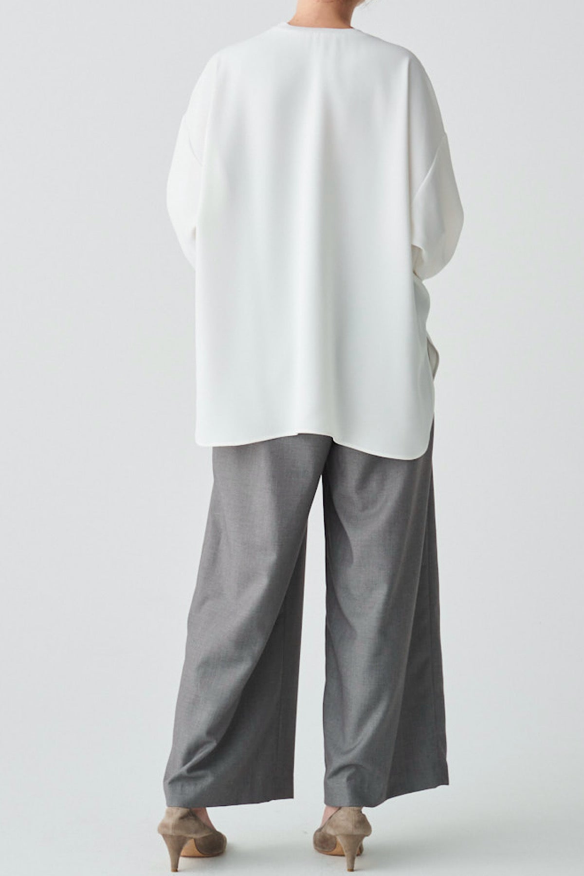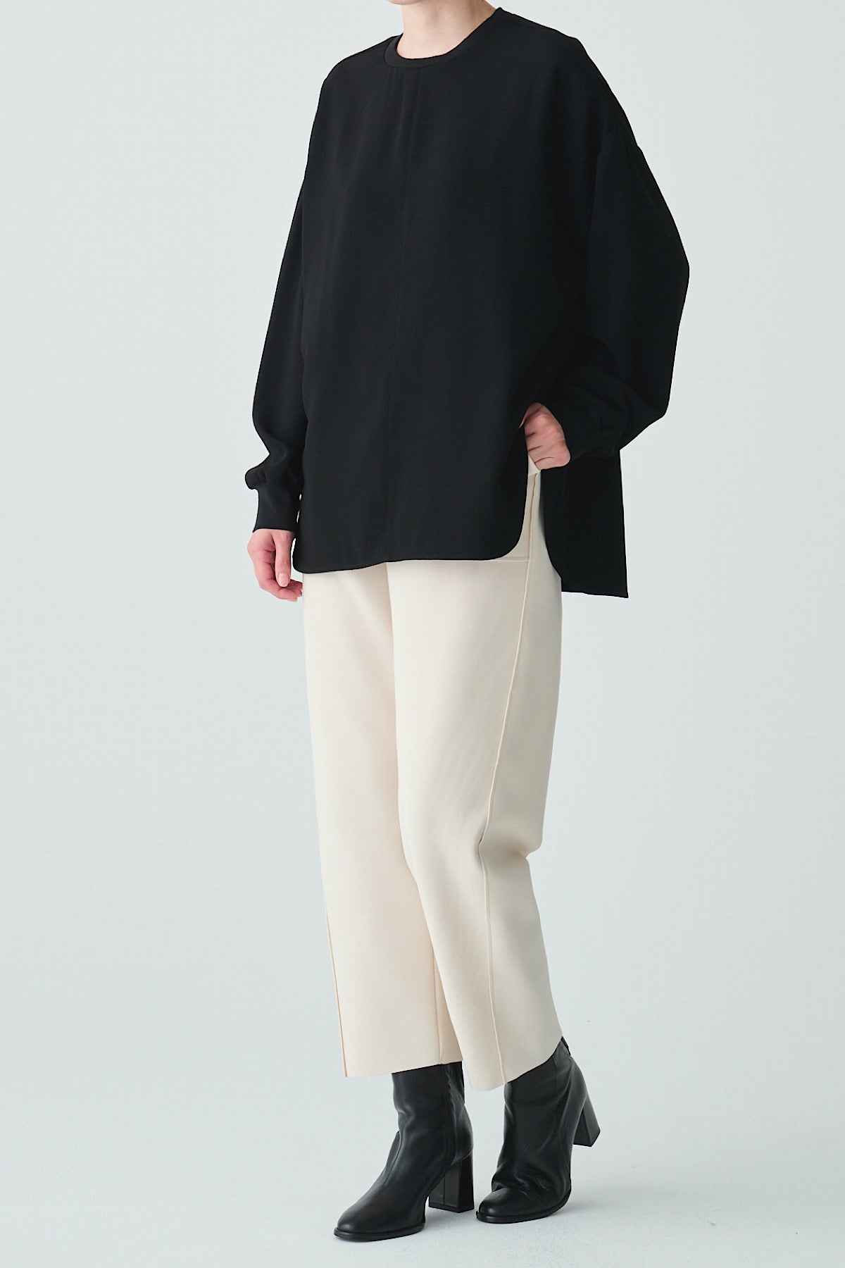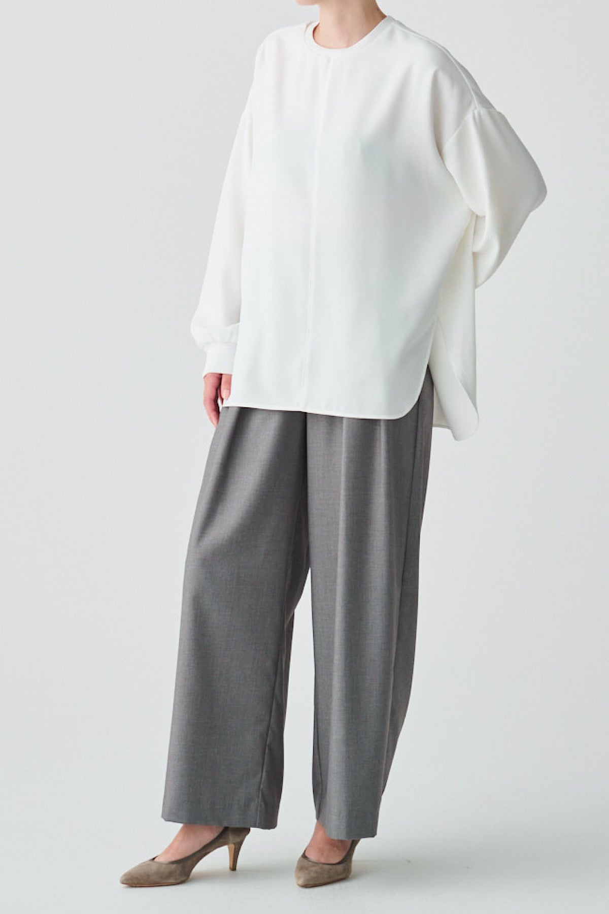 とろみのあるジョーゼット素材が生む美しいドレープ感で、ブラウスのようにきちんと感がありながら、ロンT感覚で気軽に着られる一枚