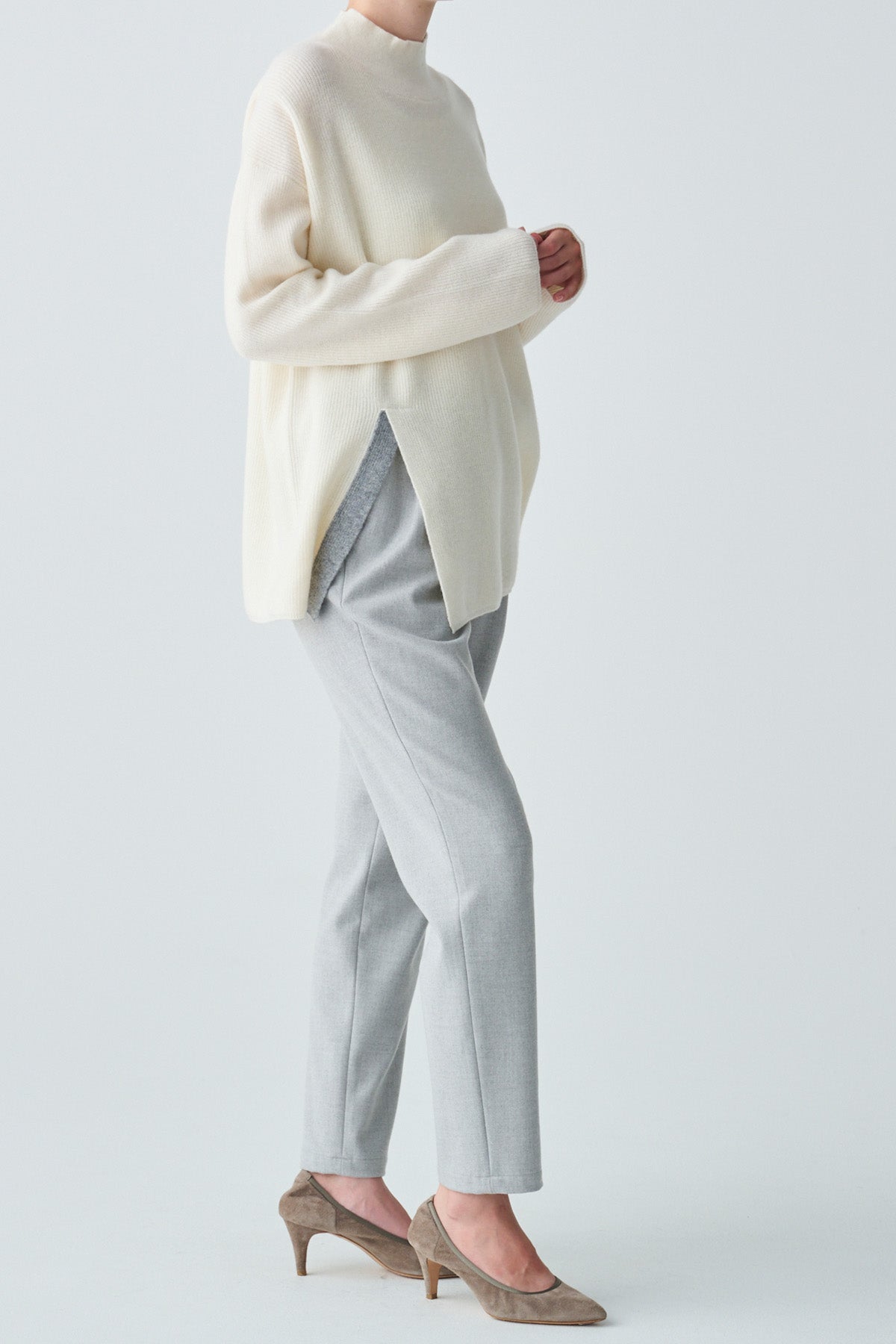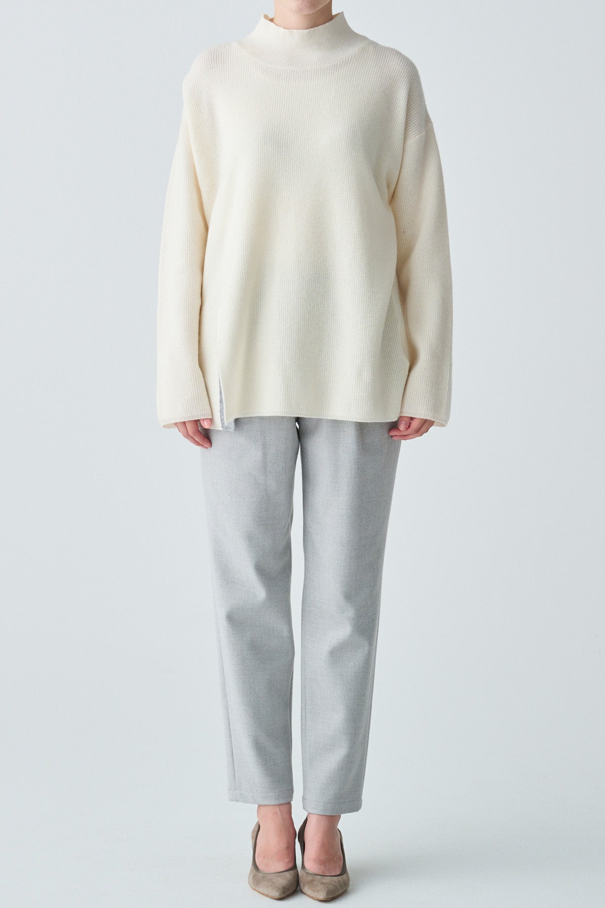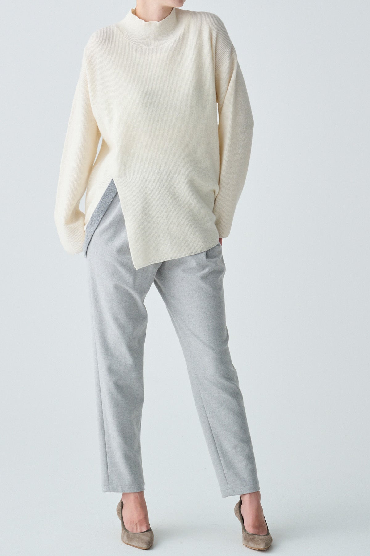 シンプルな中に上品さが光る、スリットデザインのニット