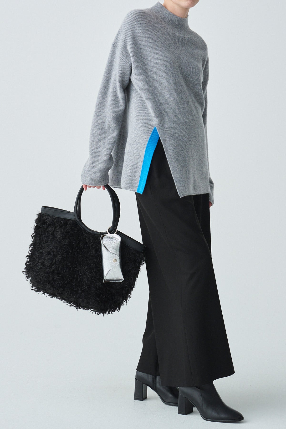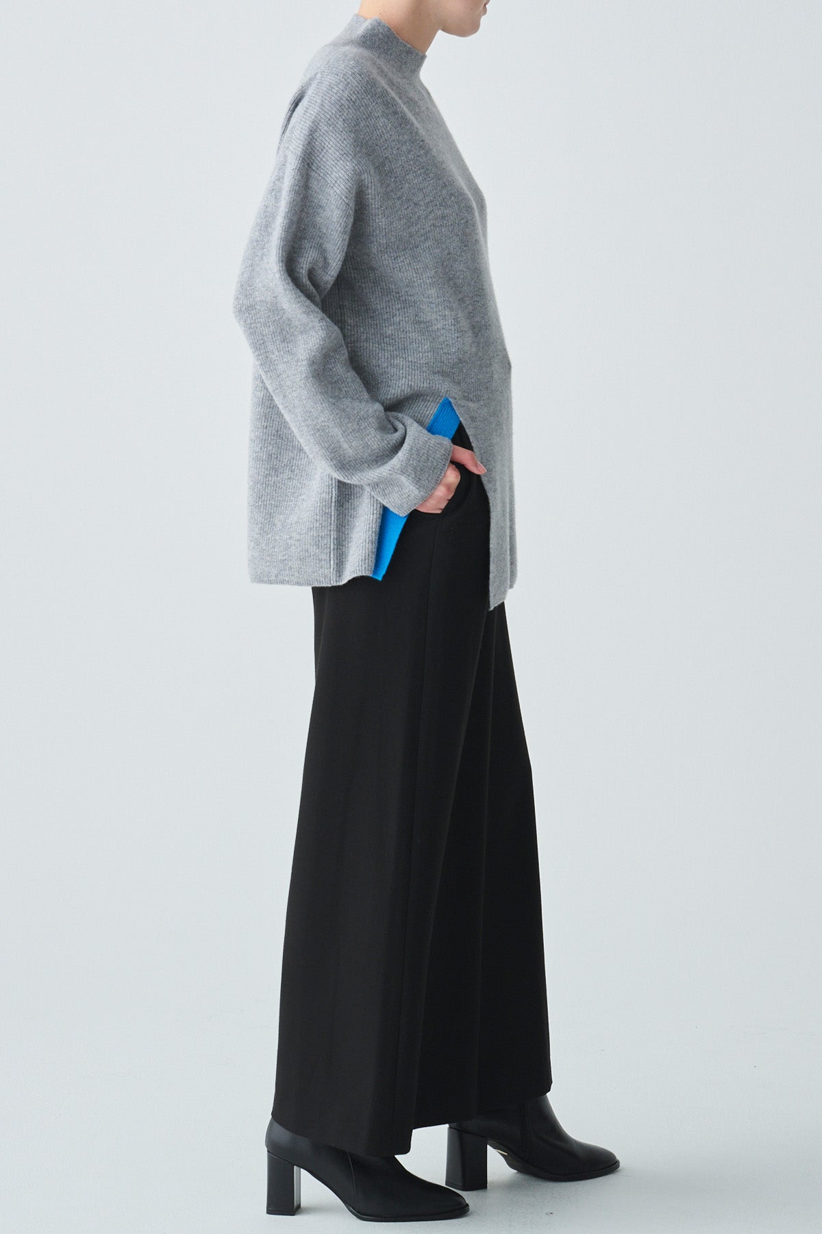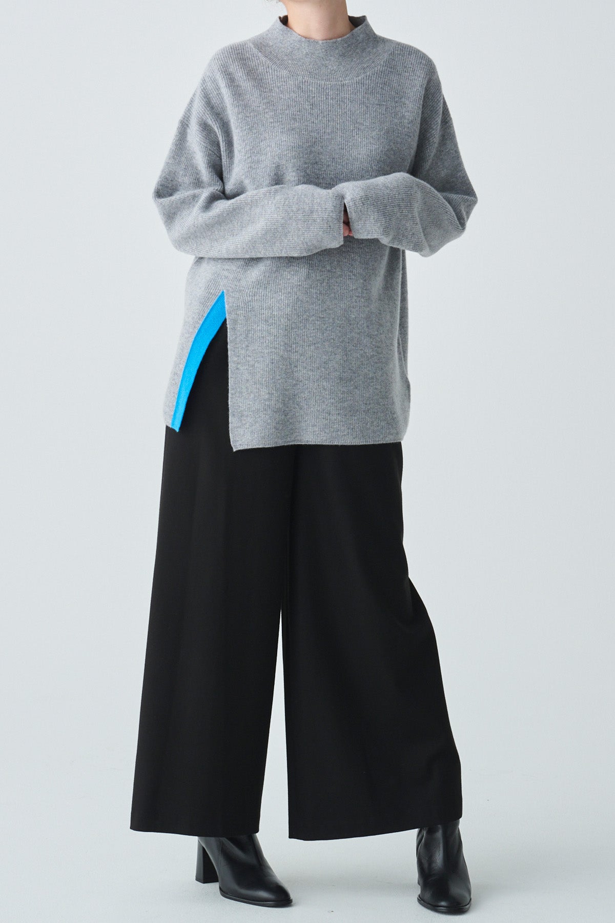 バイカラースリットデザインカシミヤ混ニット