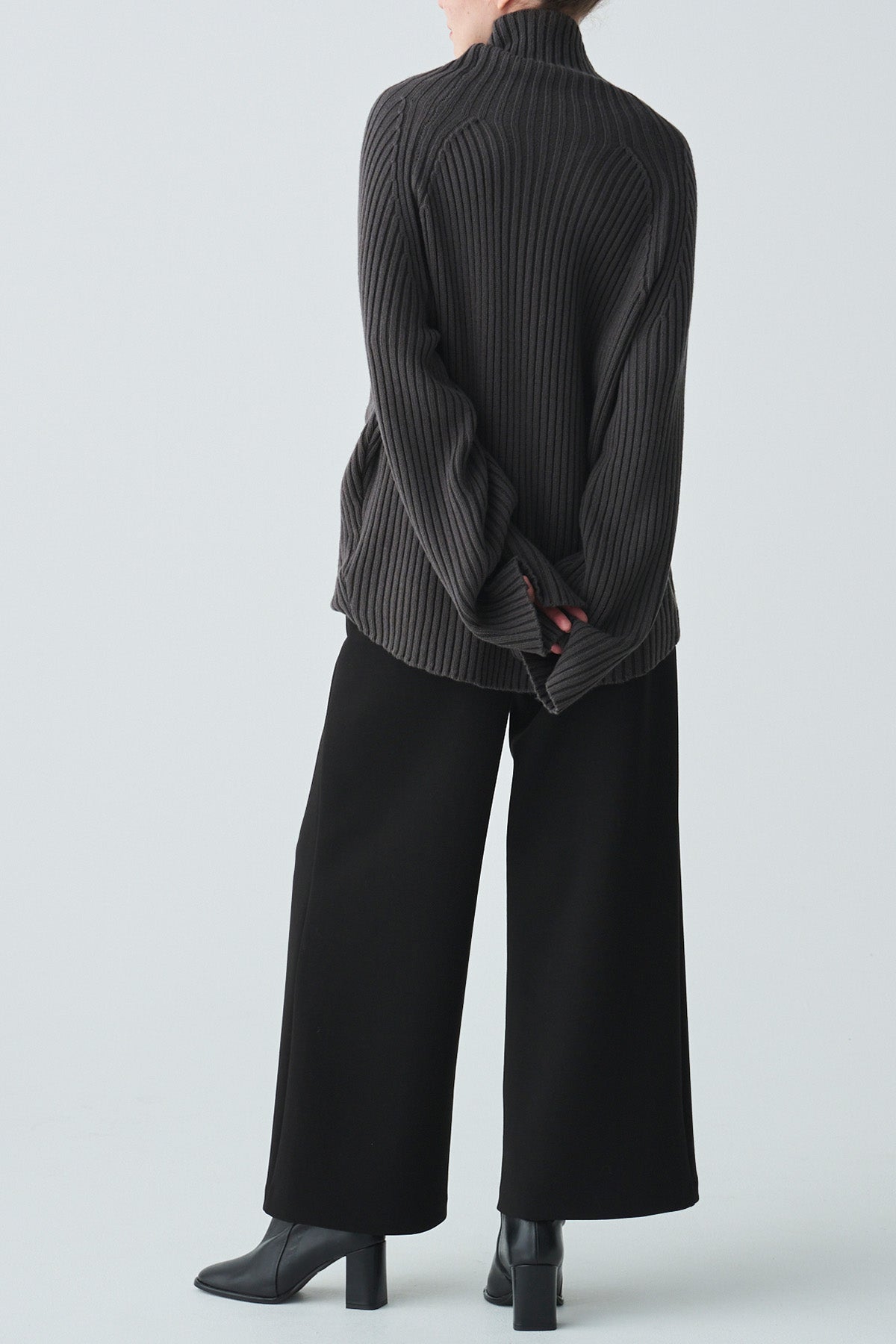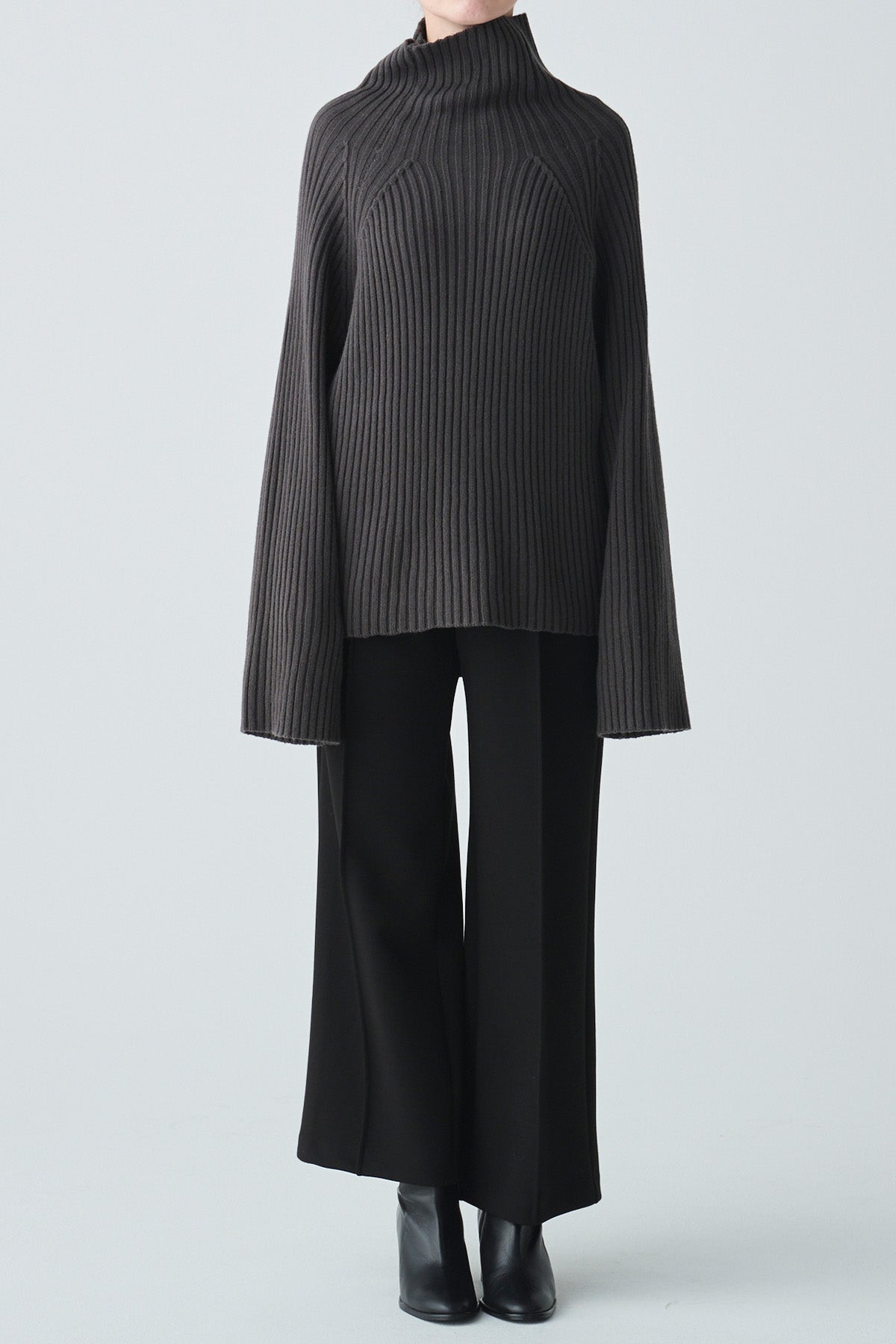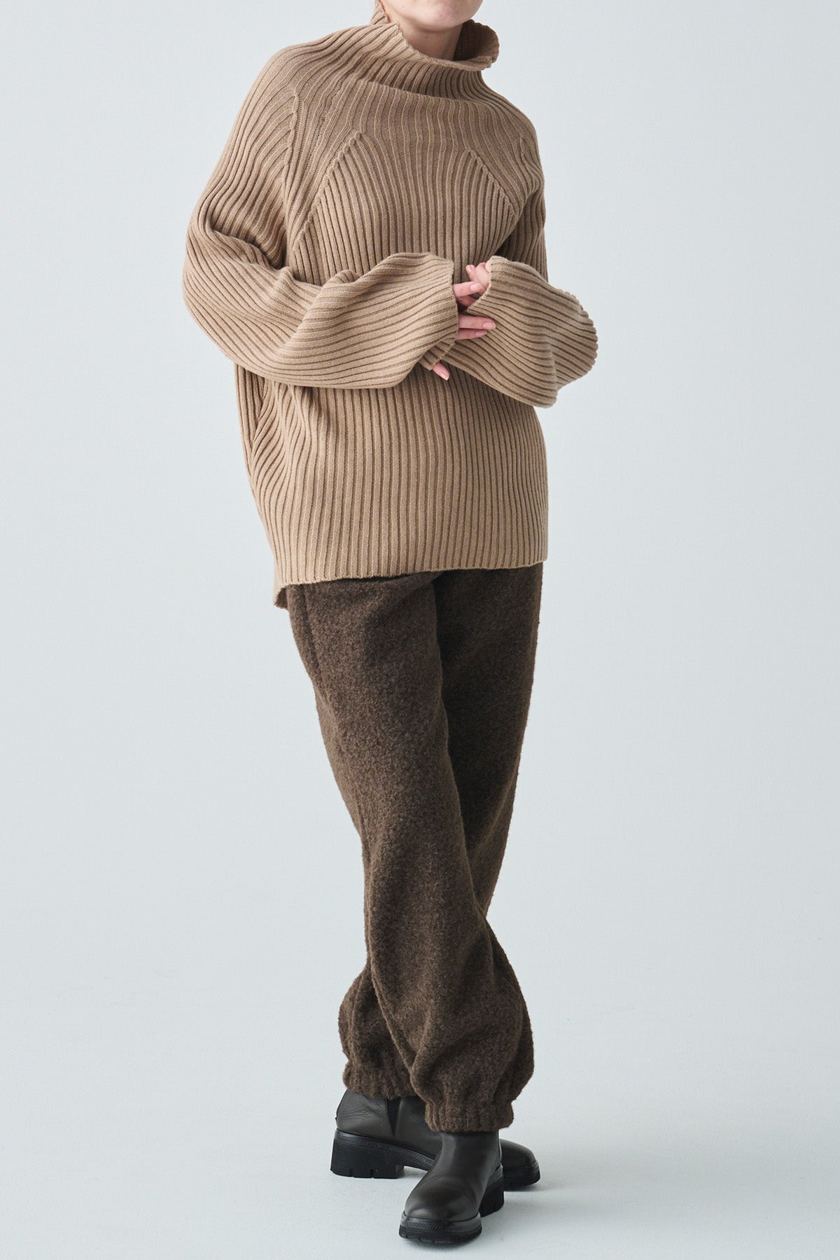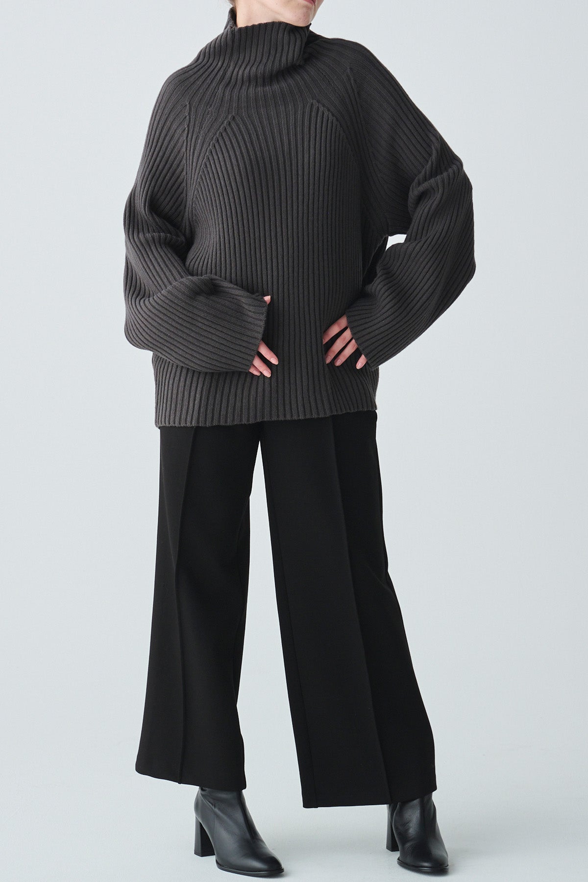立体感のある太めのリブ編みが表情を引き立てるワイドリブニット