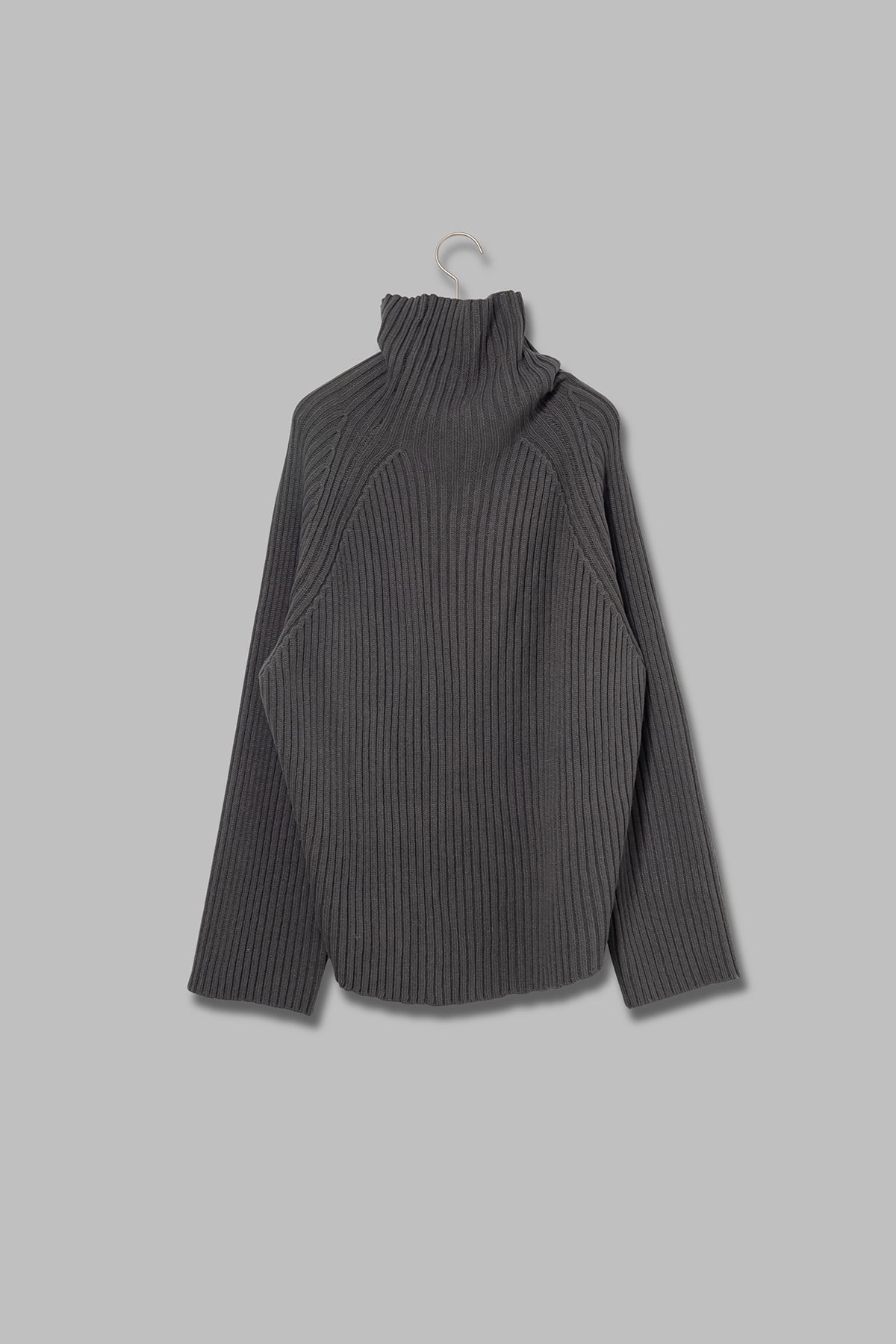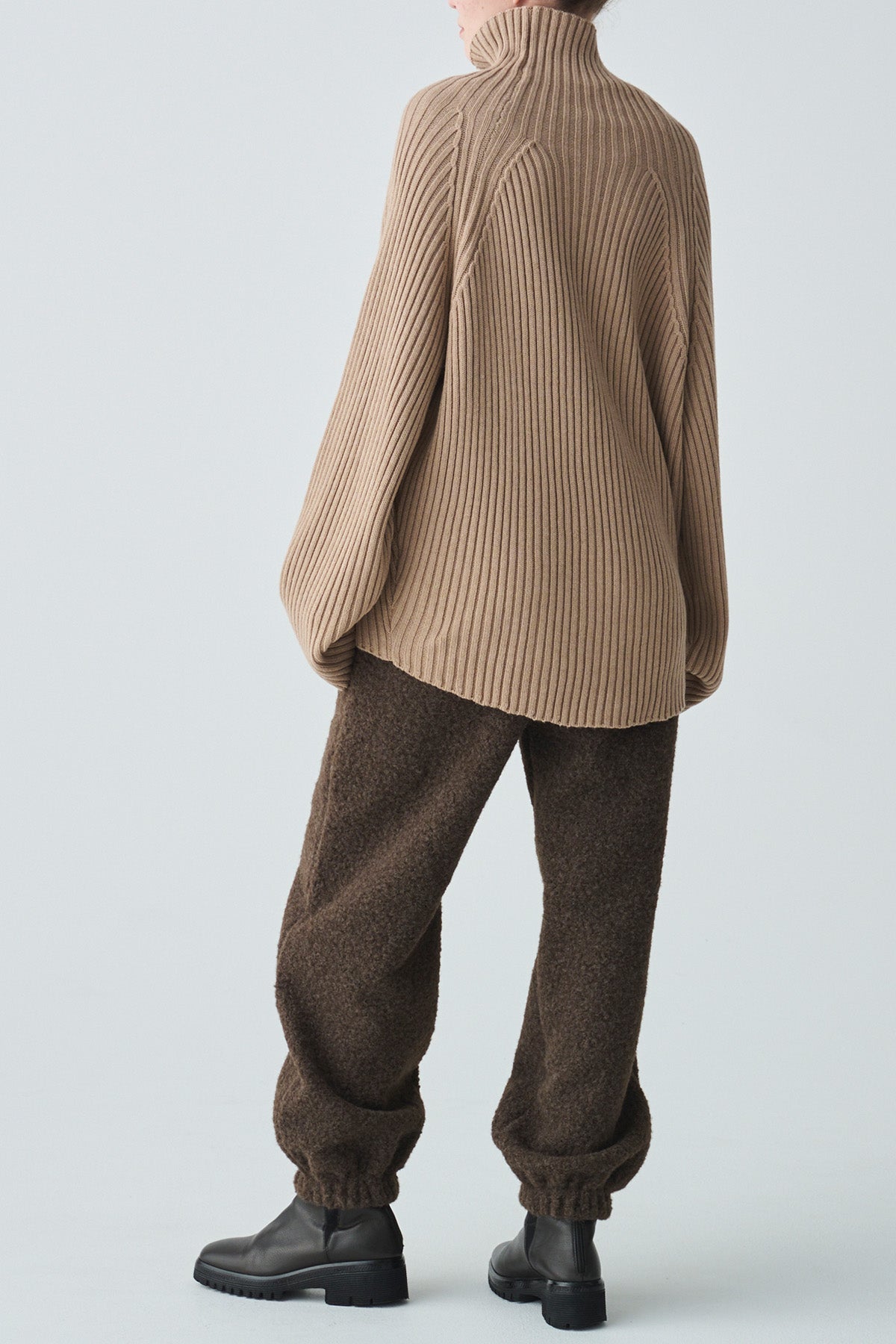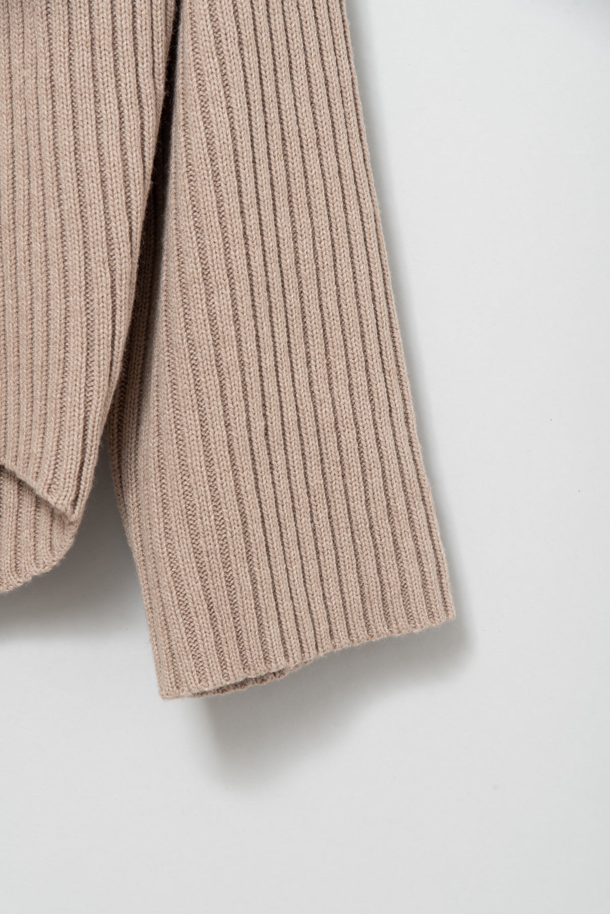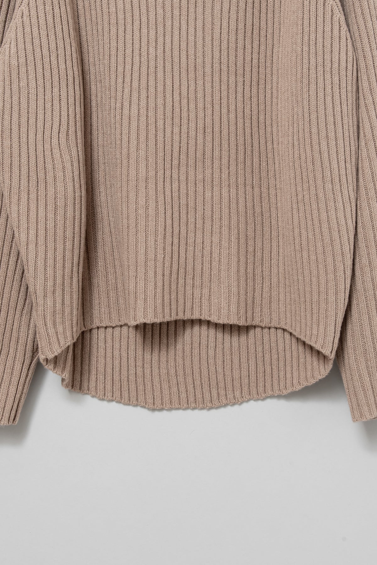 立体感のある太めのリブ編みが表情を引き立てるワイドリブニット