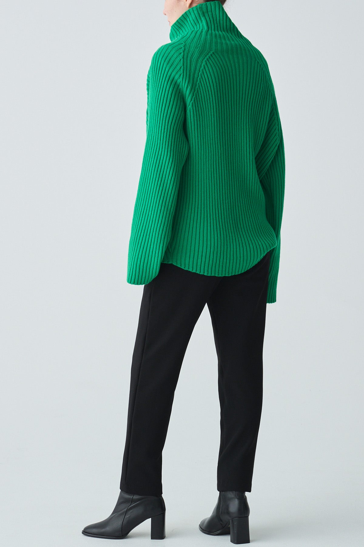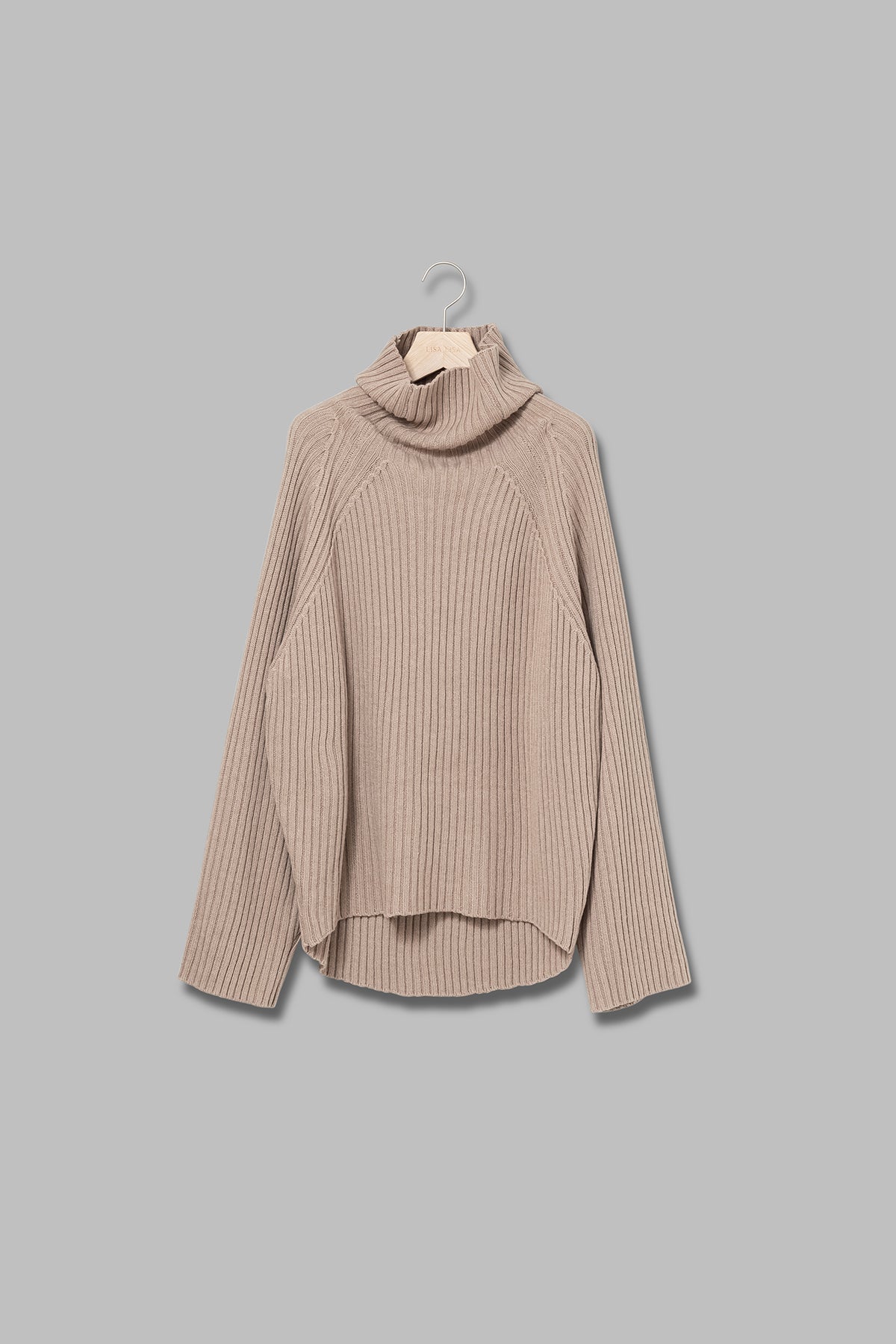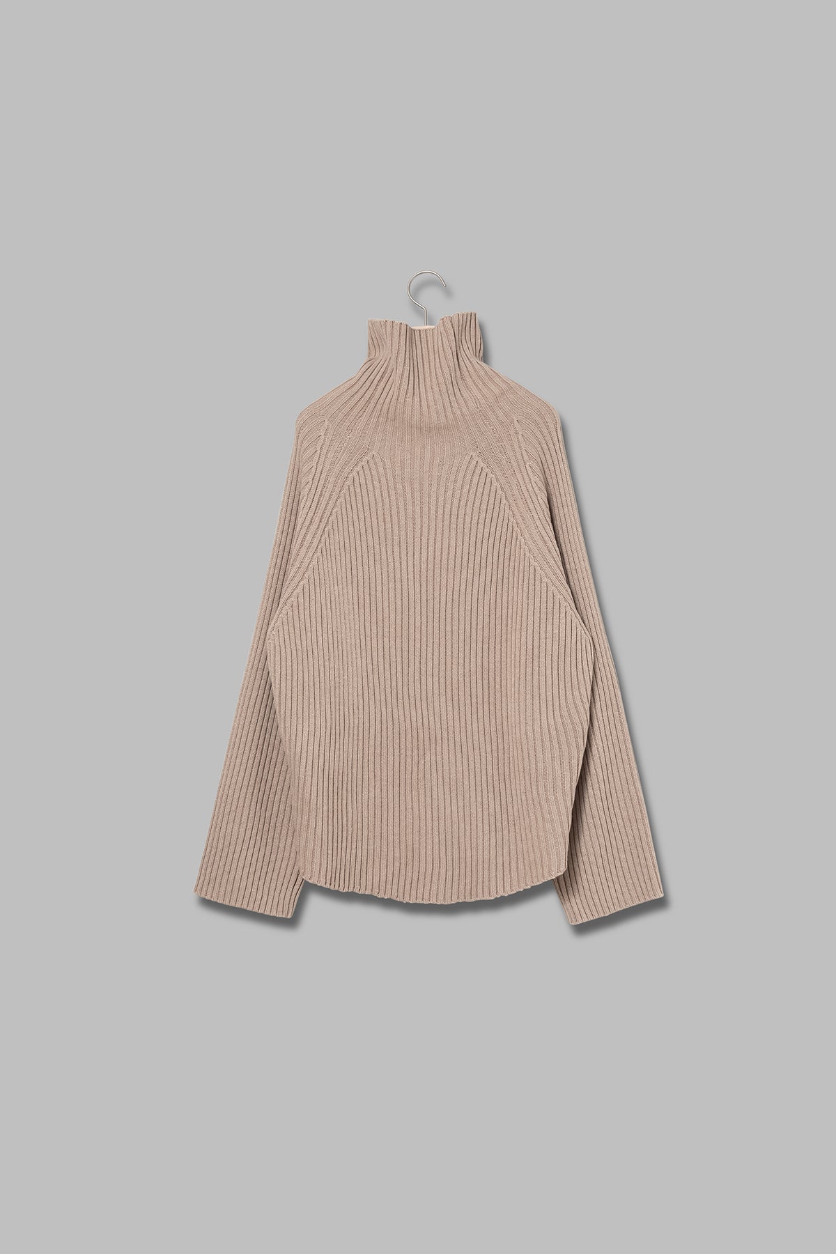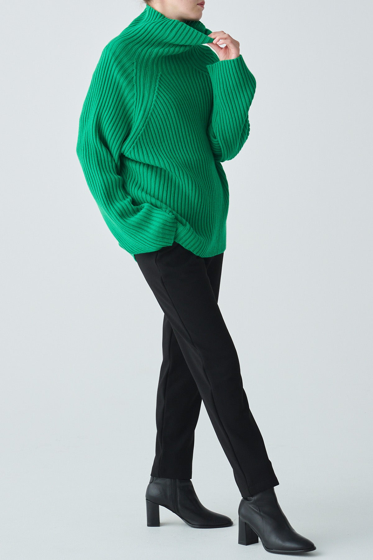 ゆるやかなボトルネックが顔まわりをすっきりと見せ、上品な抜け感を演出