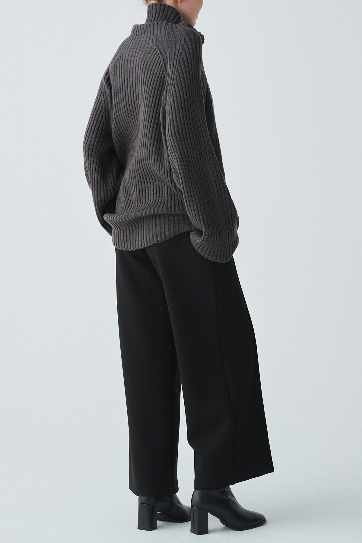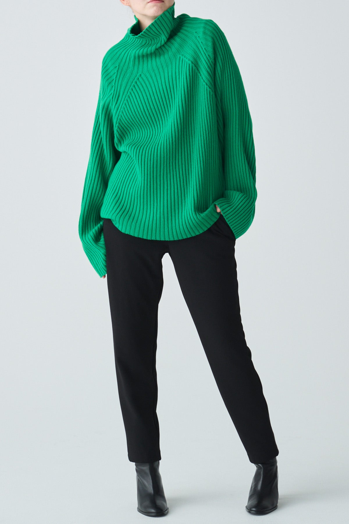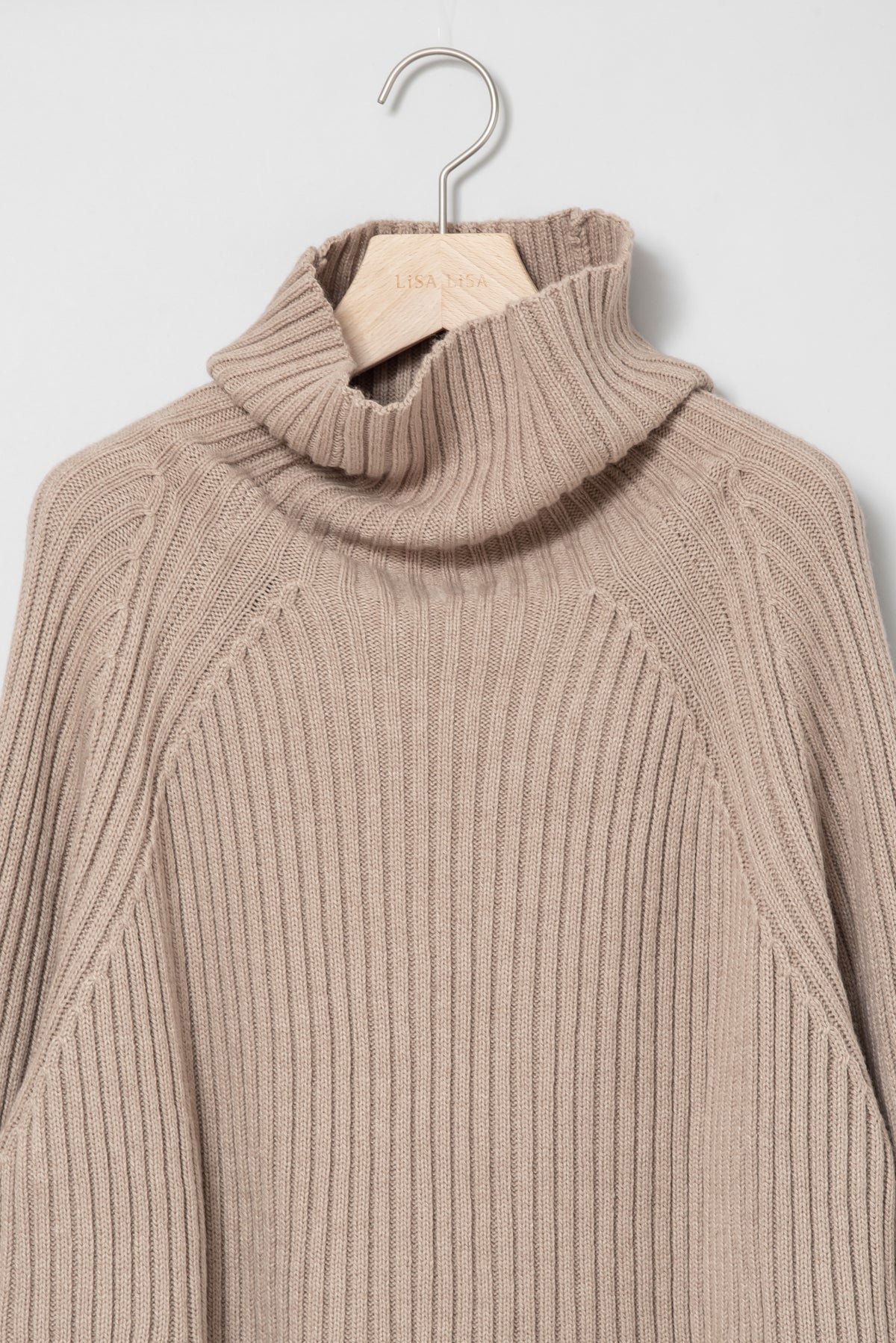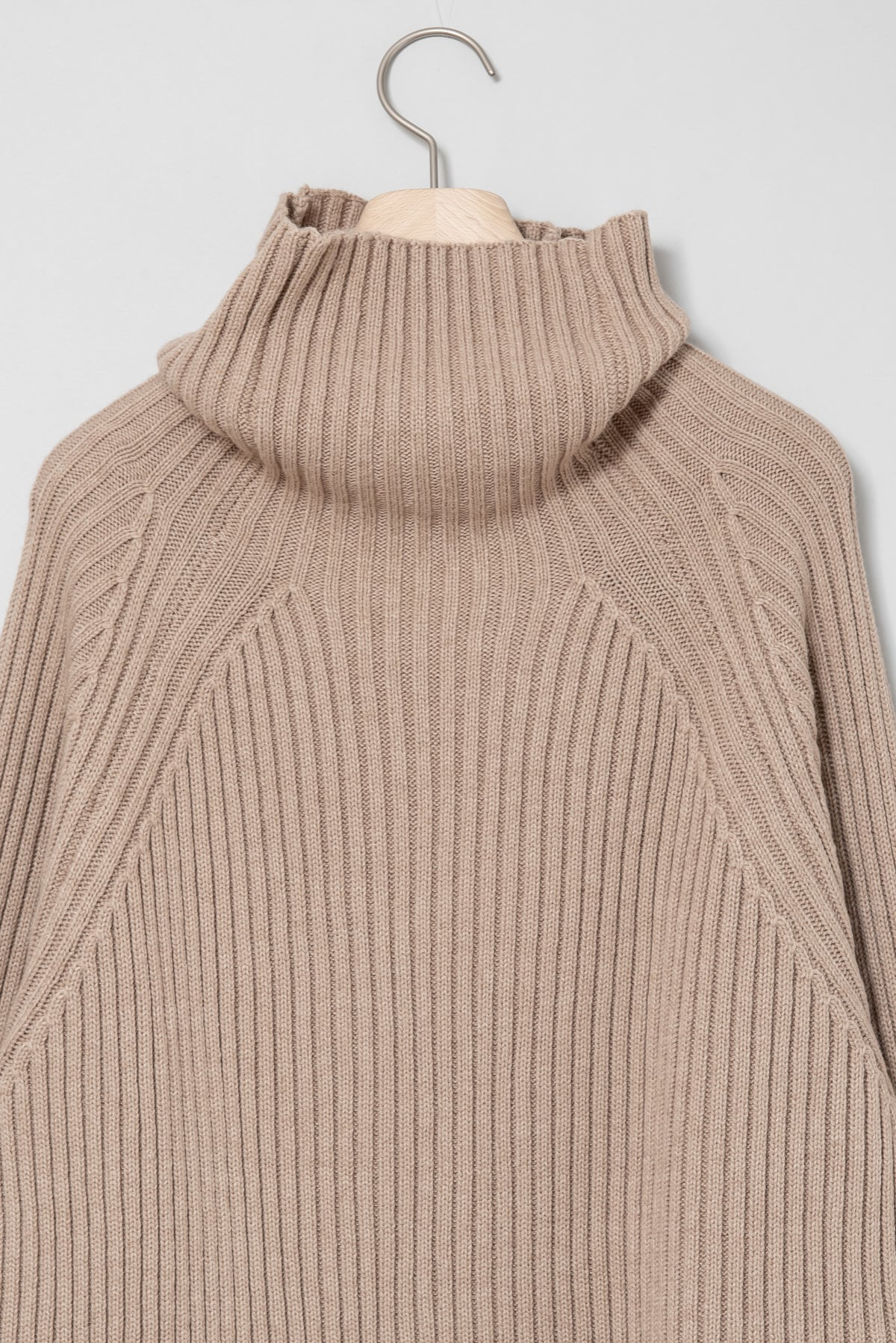 ゆるやかなボトルネックが顔まわりをすっきりと見せ、上品な抜け感を演出