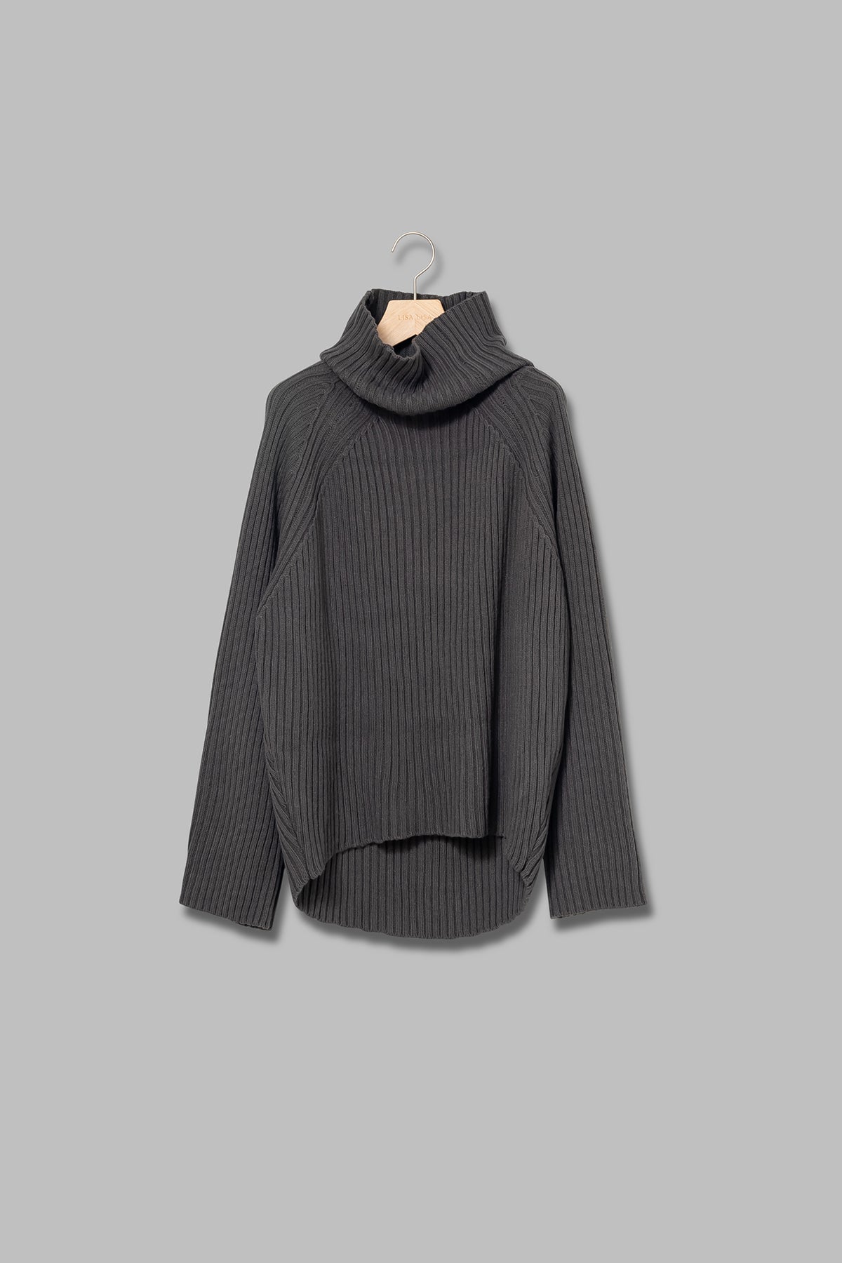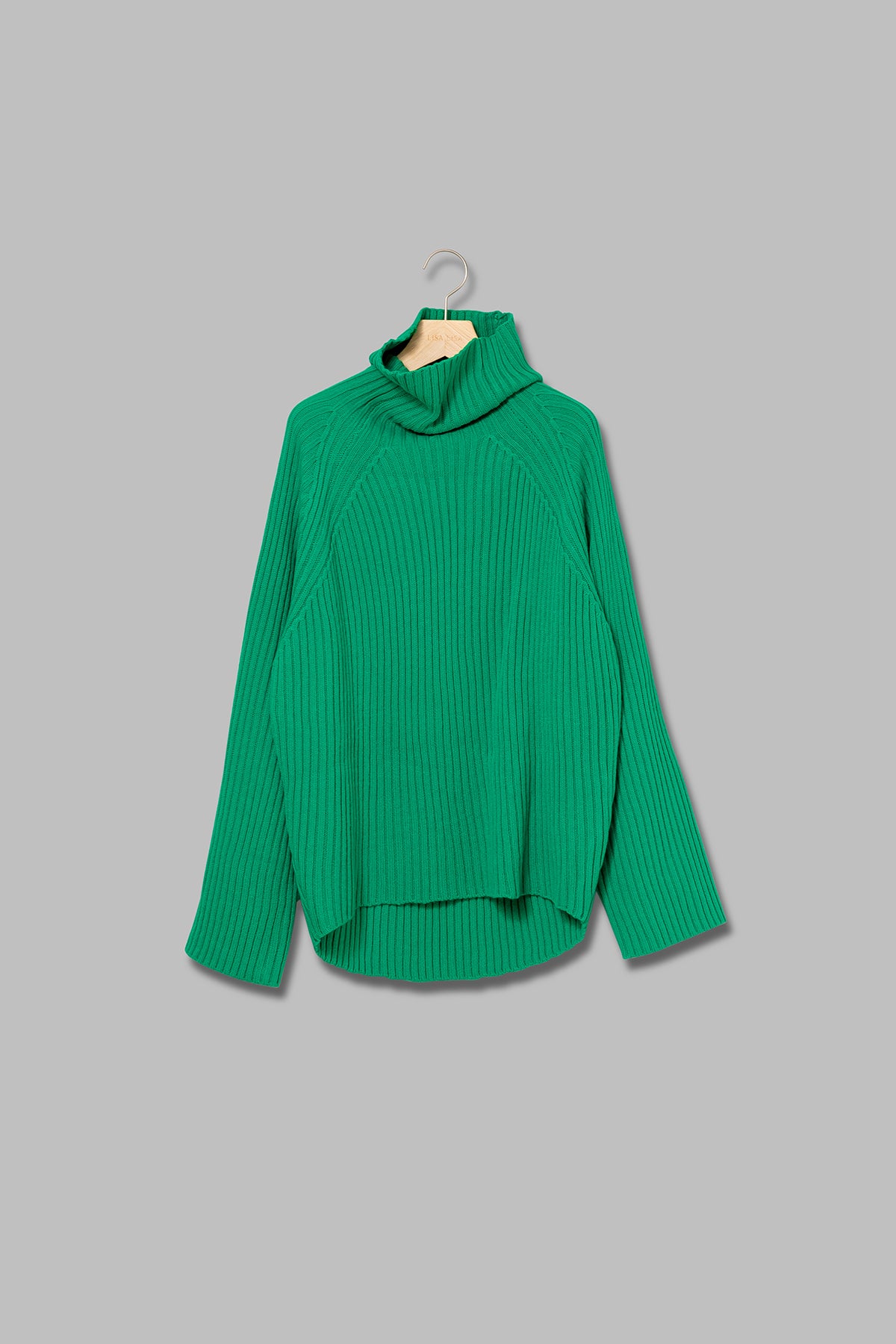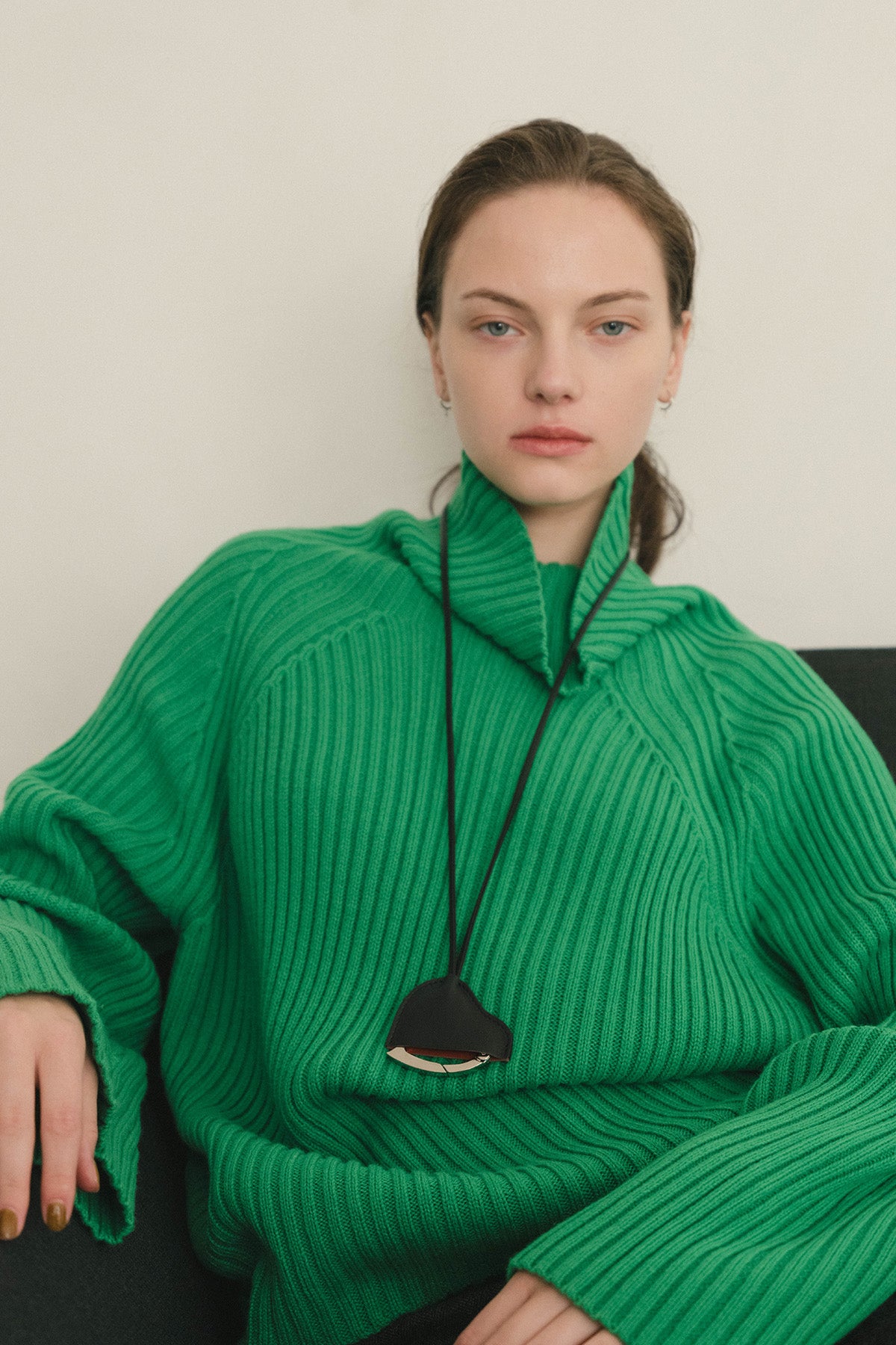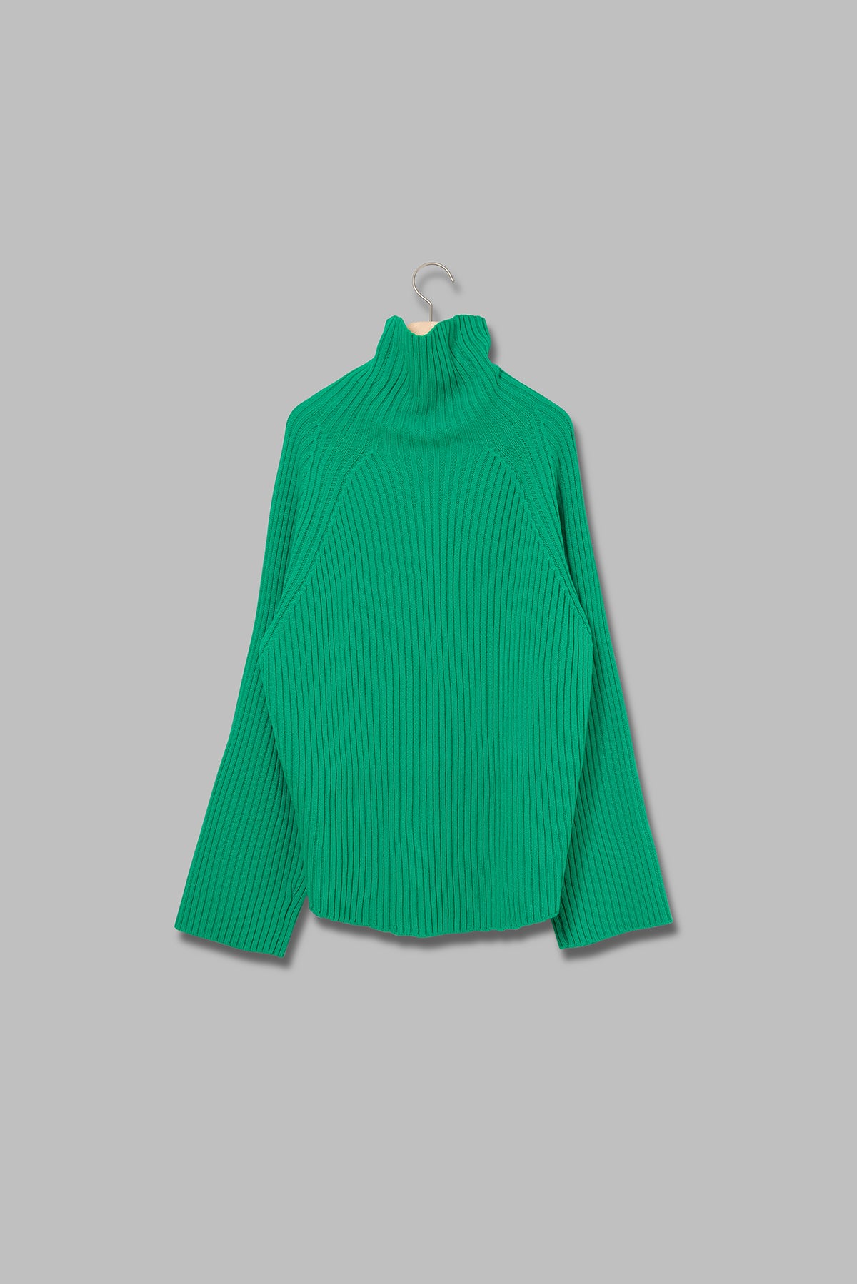 ゆるやかなボトルネックが顔まわりをすっきりと見せ、上品な抜け感を演出