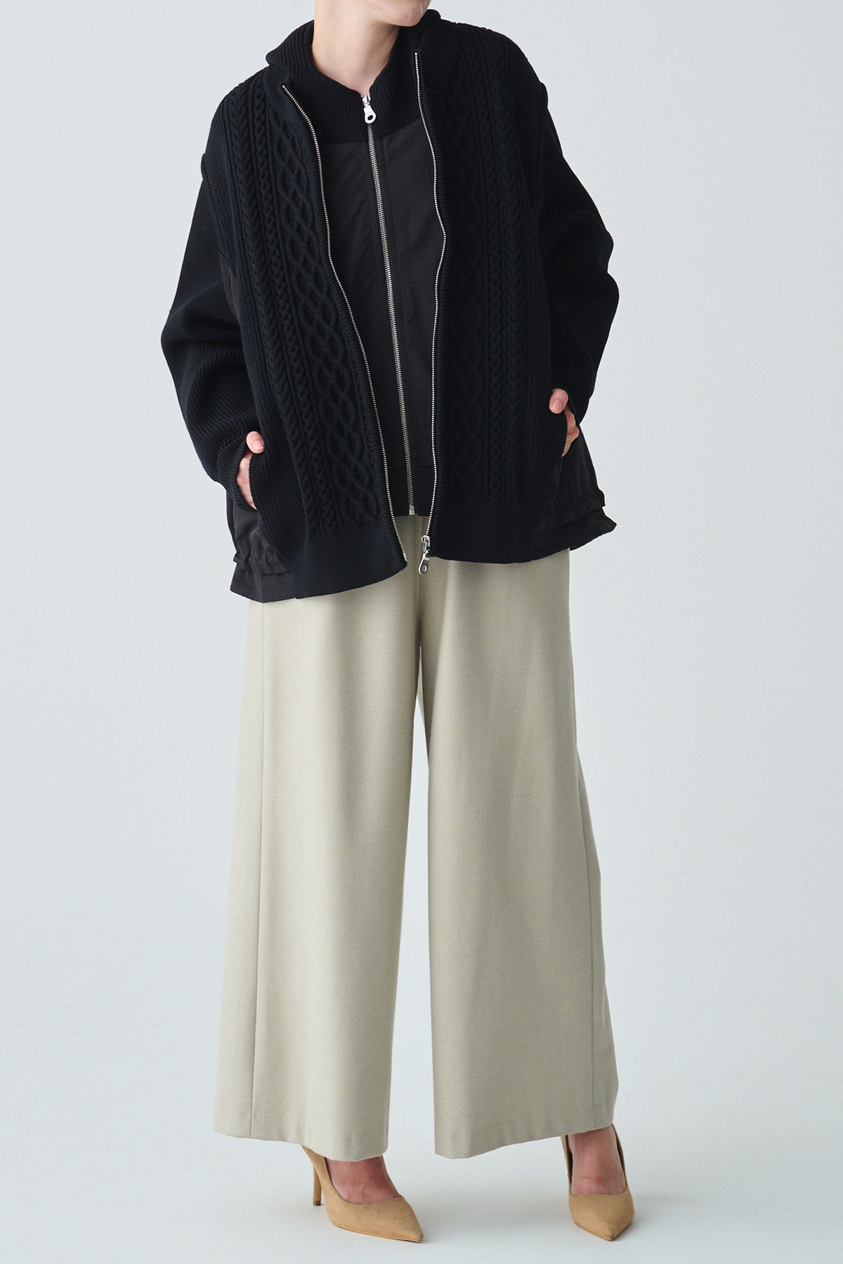 【仕様】フロントジップ、裾ドロストあり、後タックあり、両サイドポケット