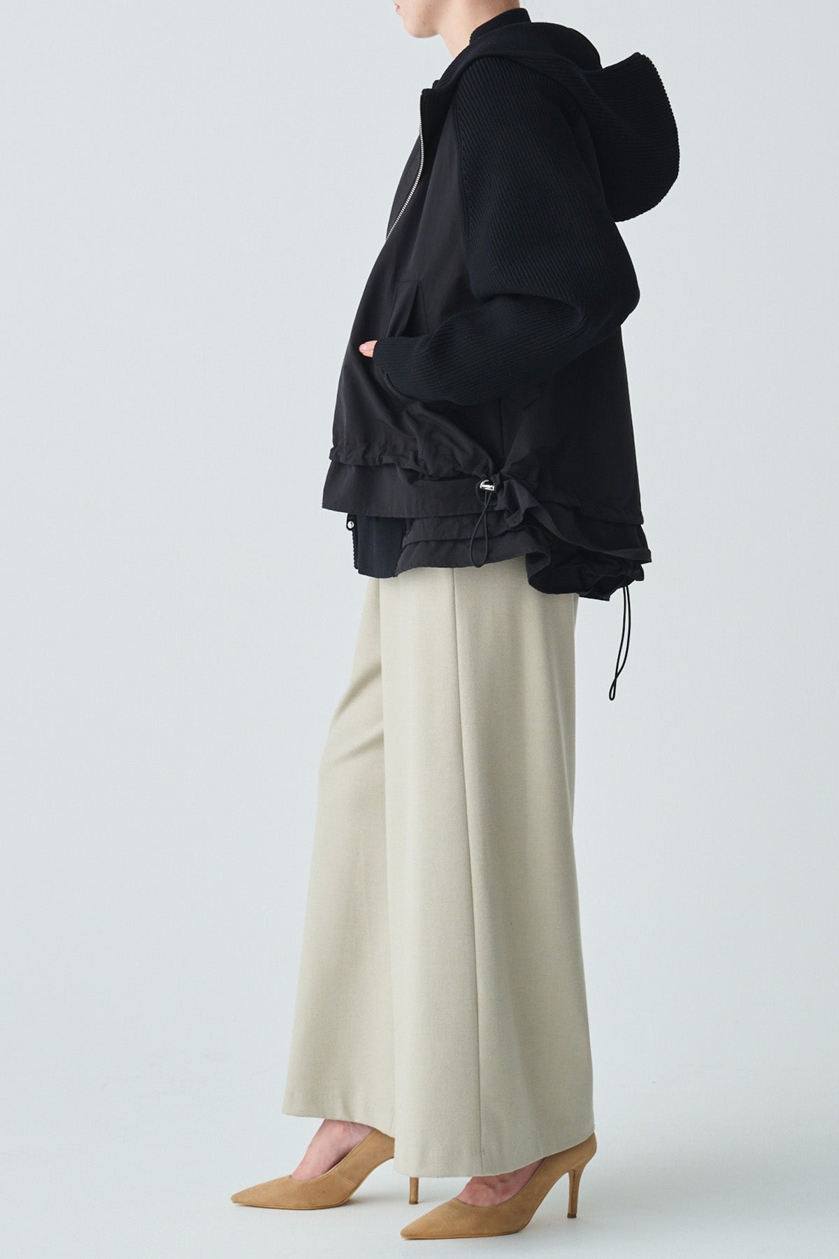 裾はドロスト仕様で、シルエットをアレンジできるのも魅力