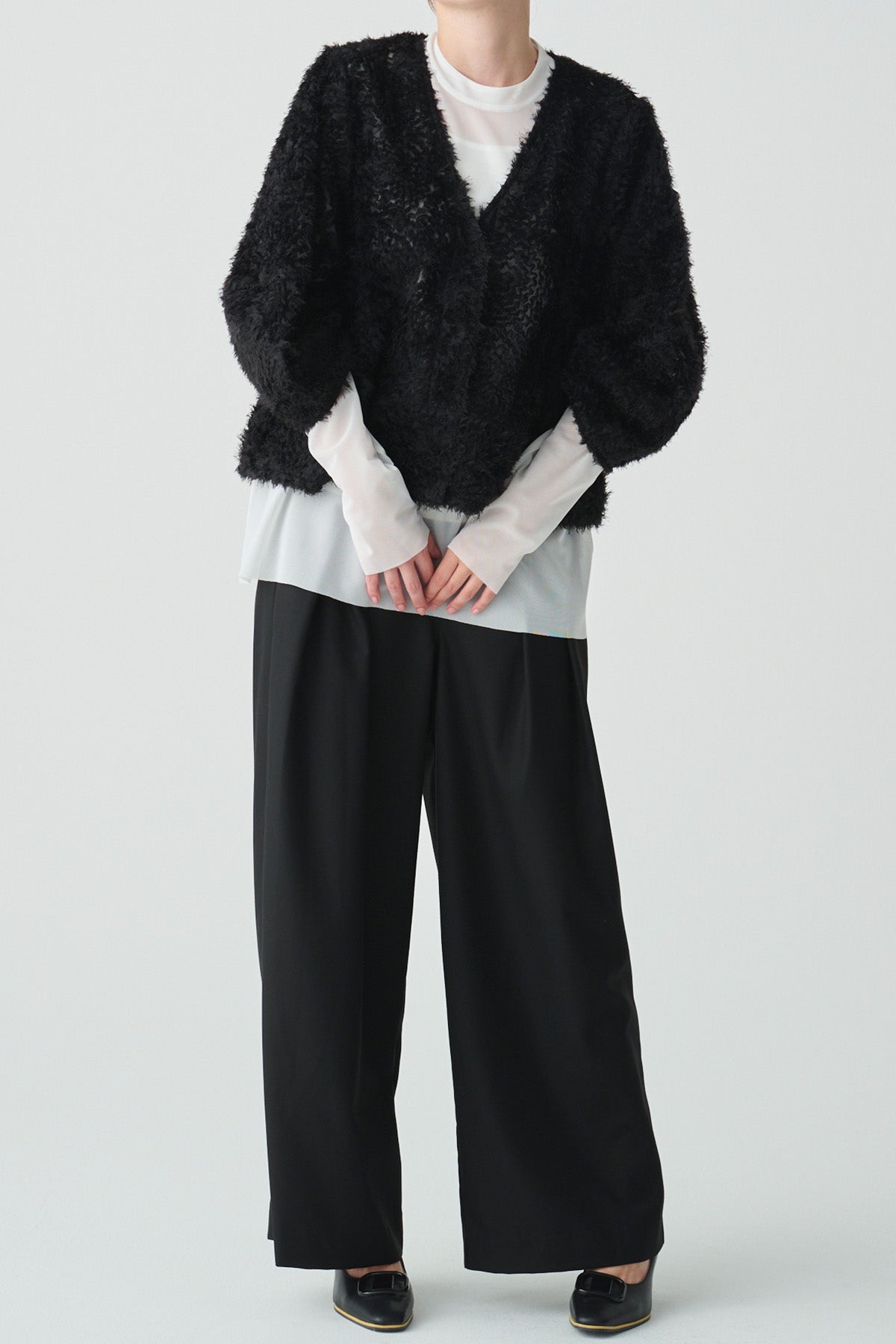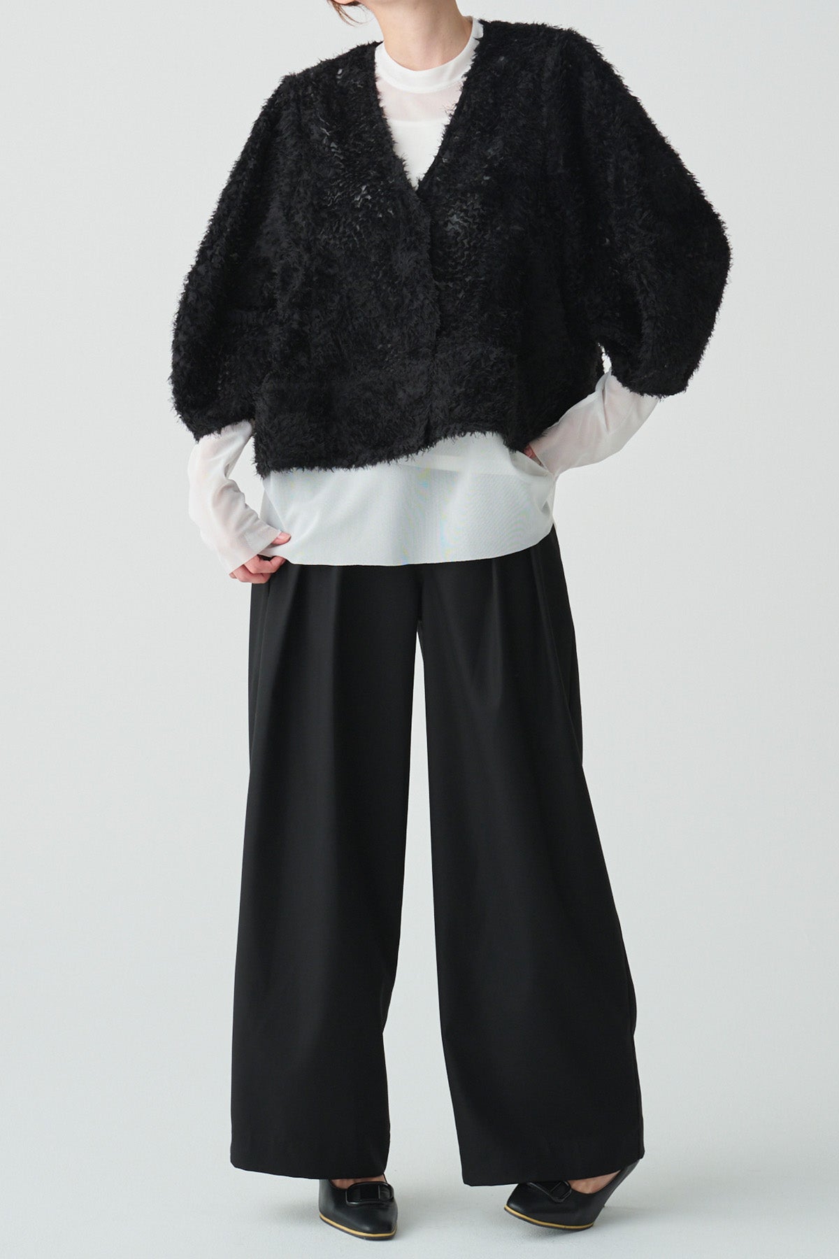 ほんのり透け感のある風合いが、スタイリングに抜け感をプラス