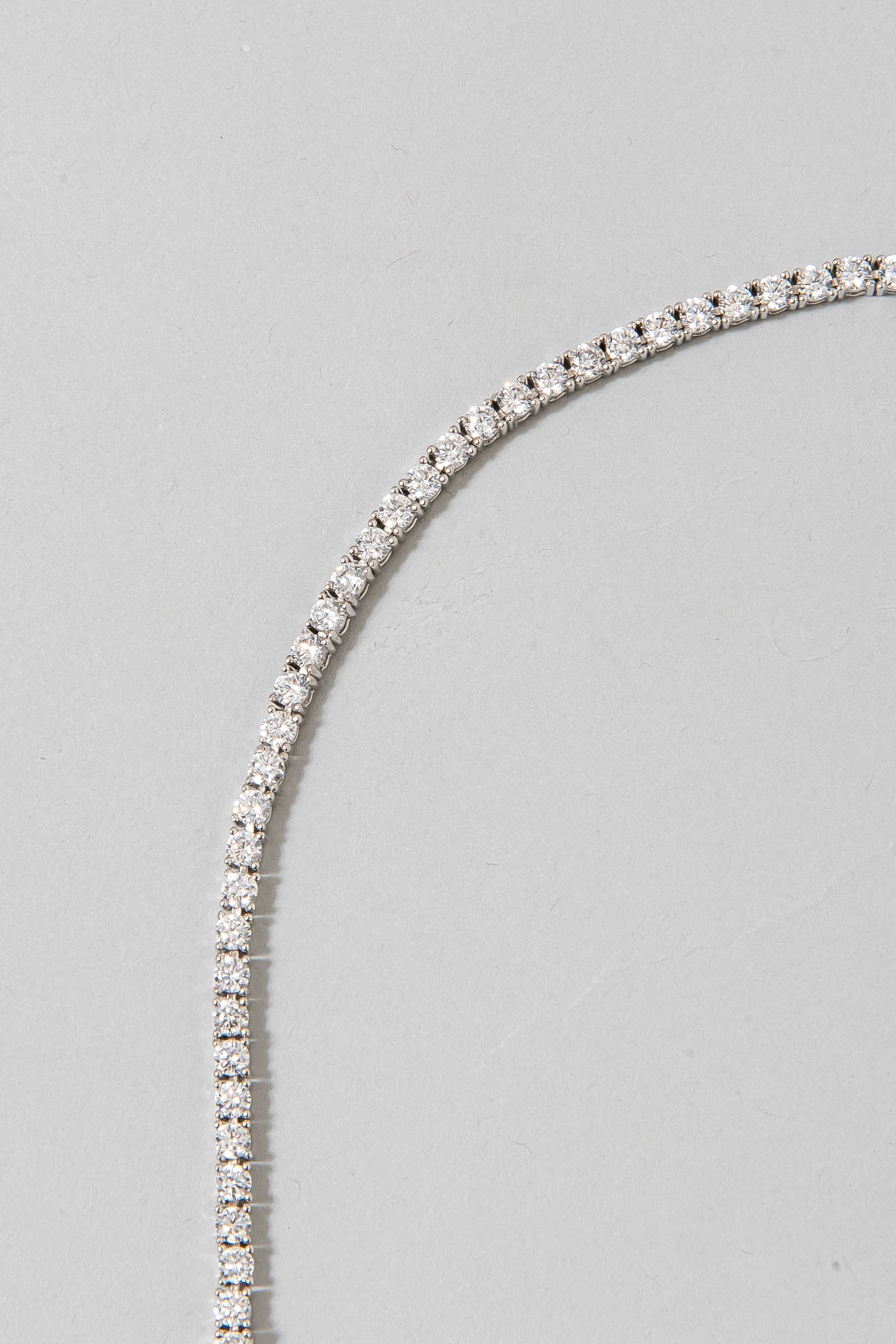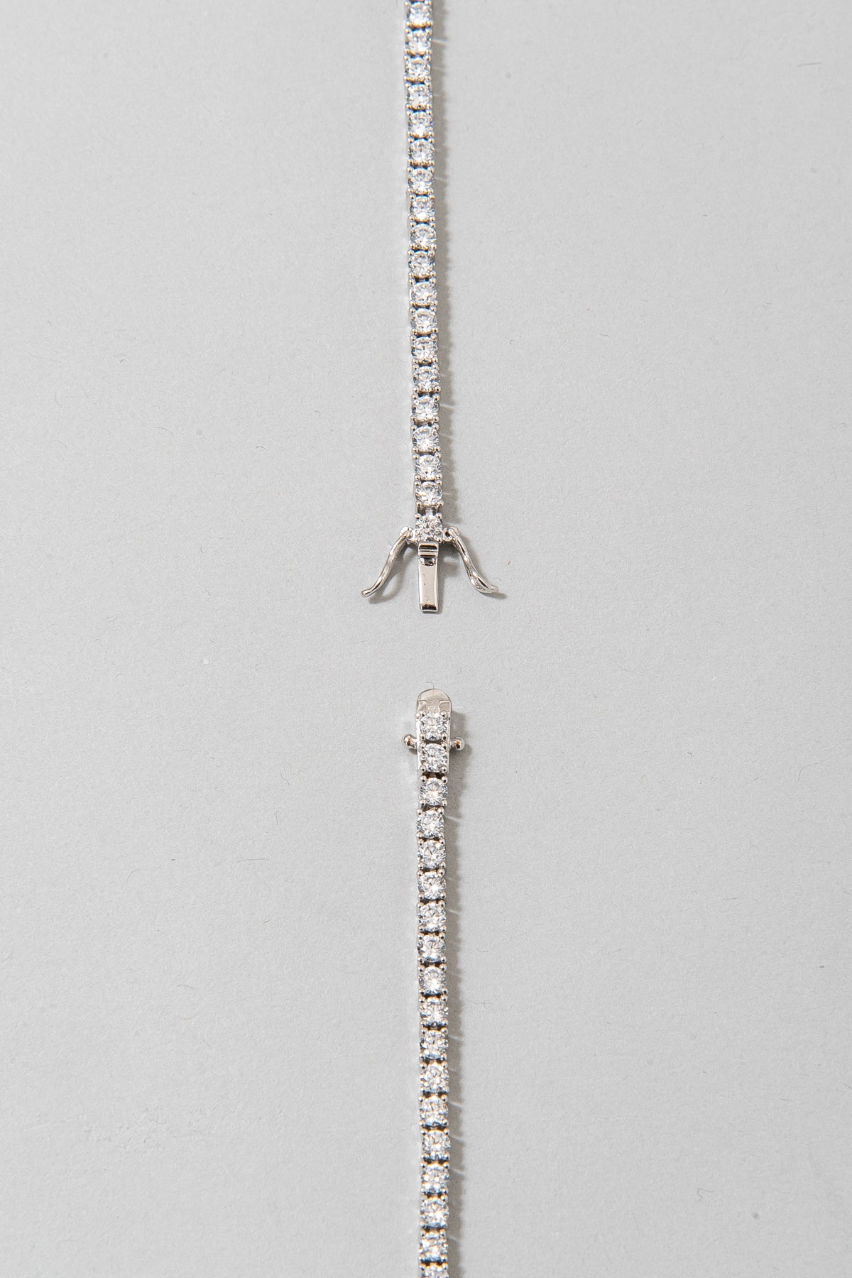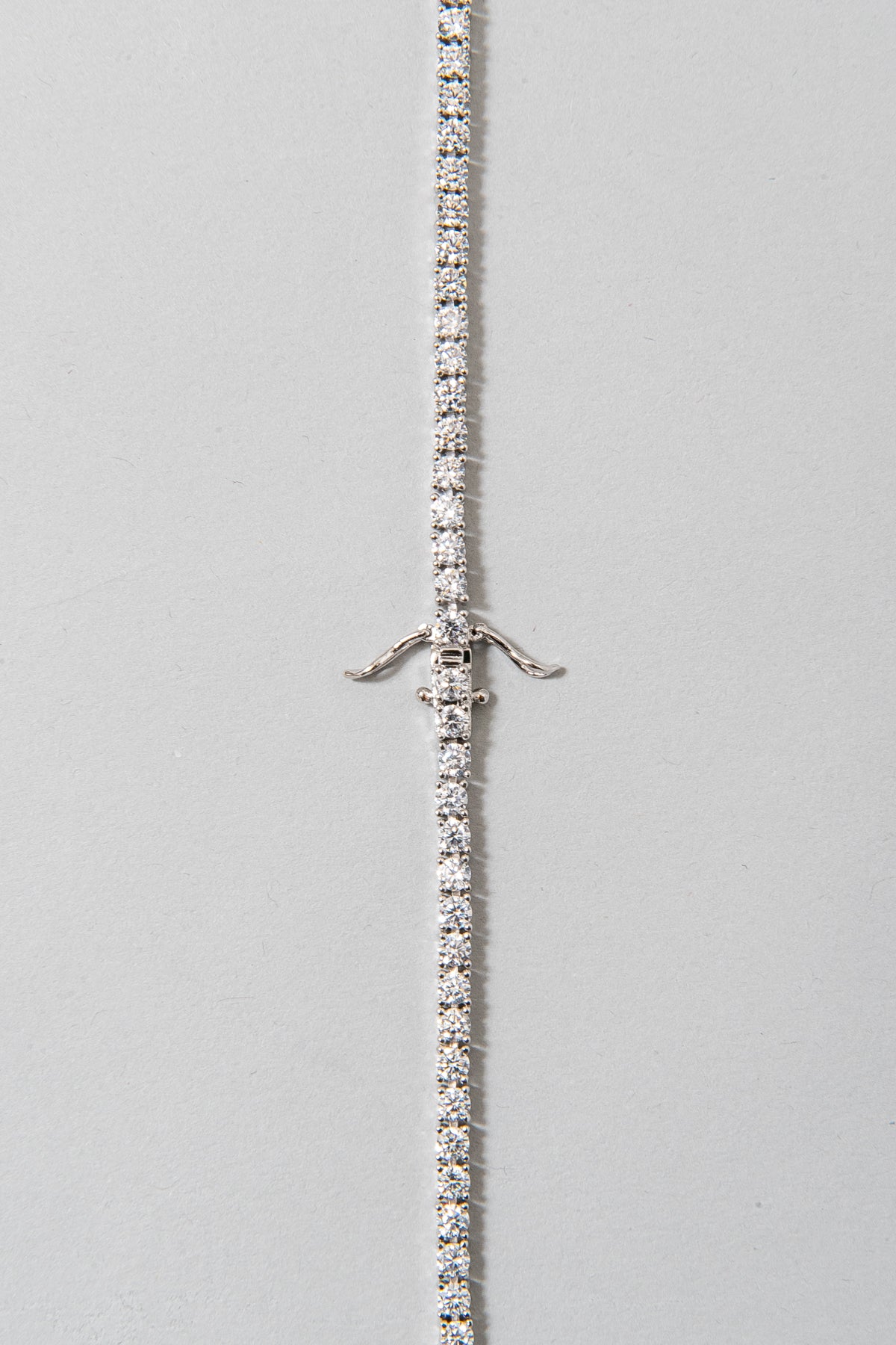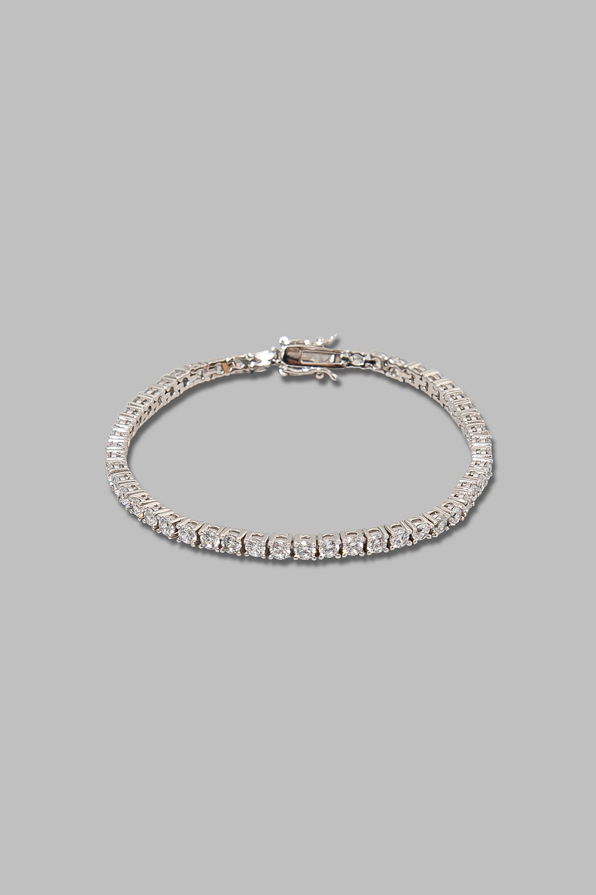 繊細に並んだキュービックジルコニアが、手元を上品に照らすテニスブレスレット
