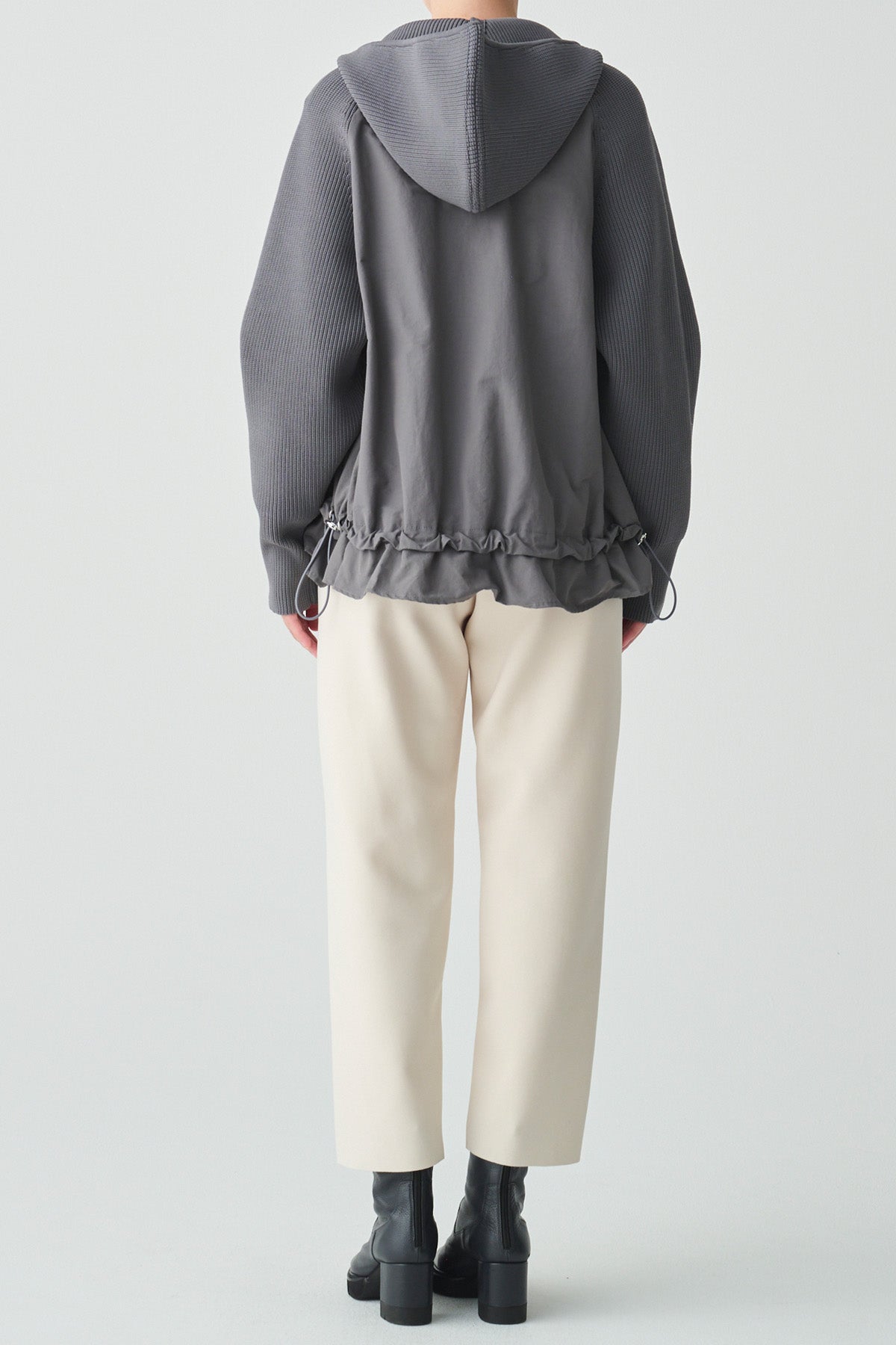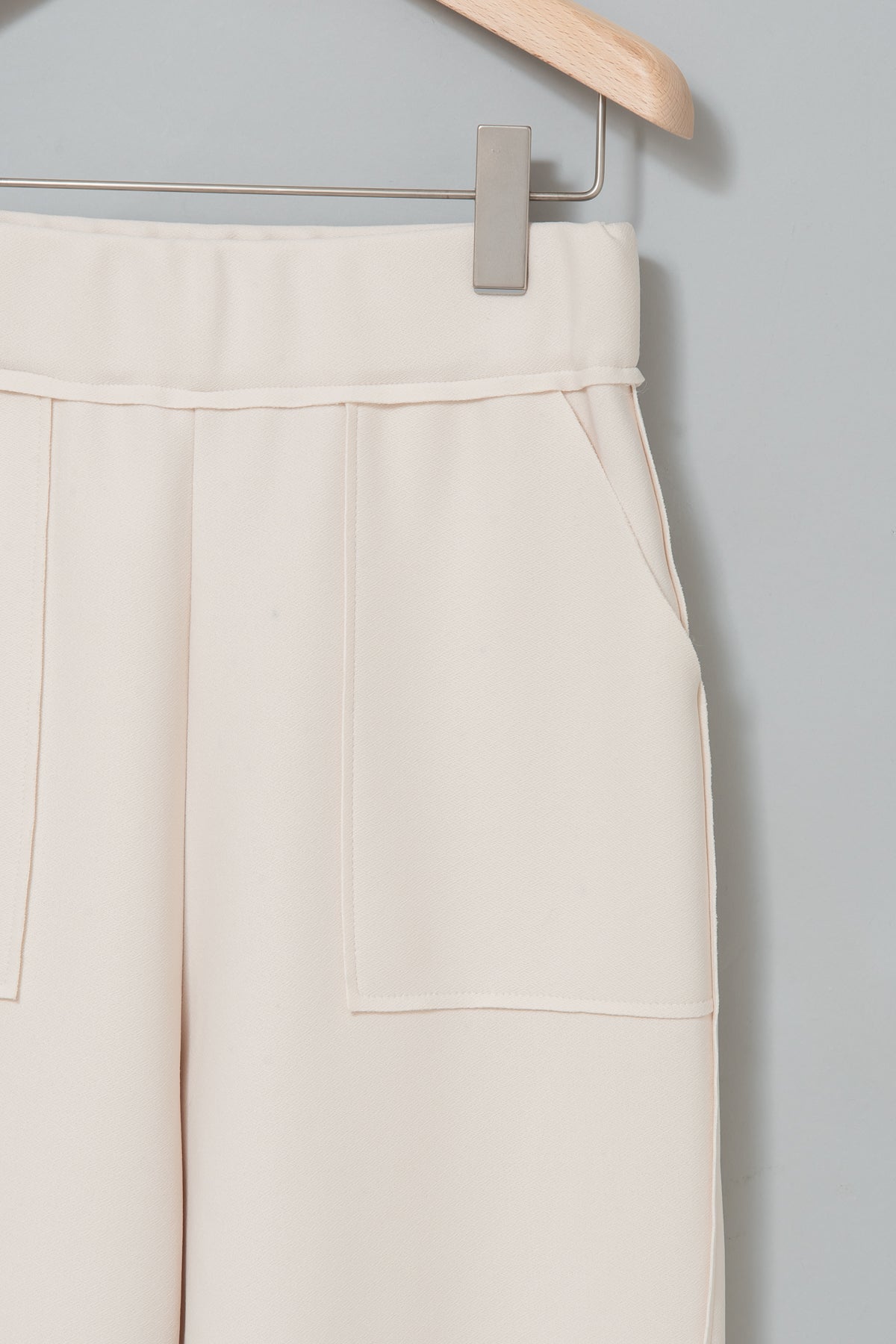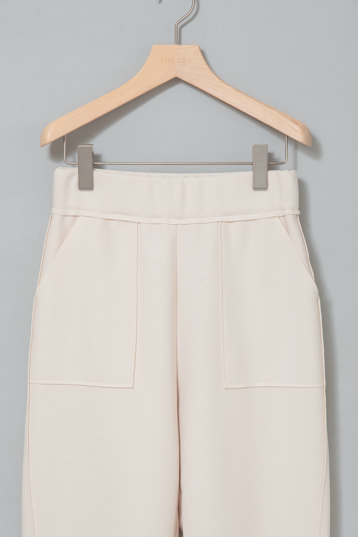 フロントのアウトポケットがアクセントになり、腰まわりをすっきり見せながら程よいカジュアル感を演出
