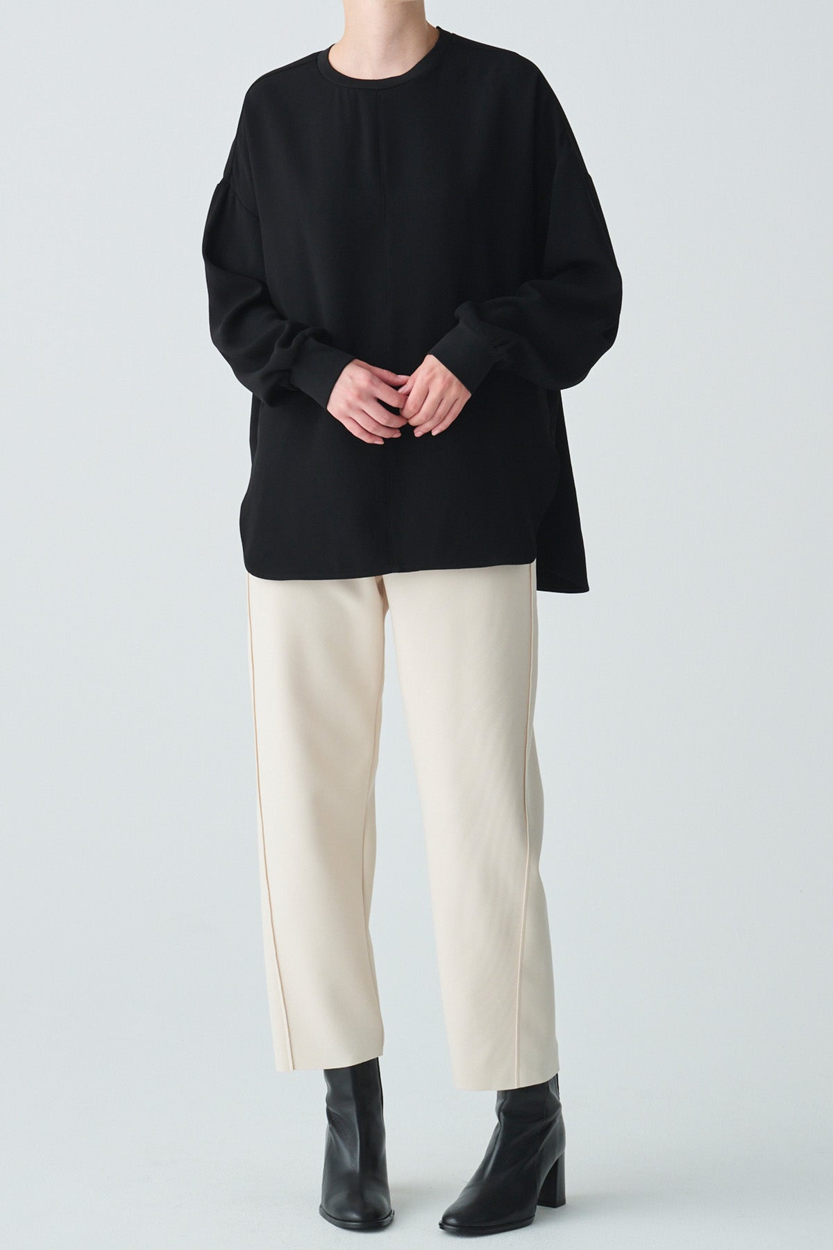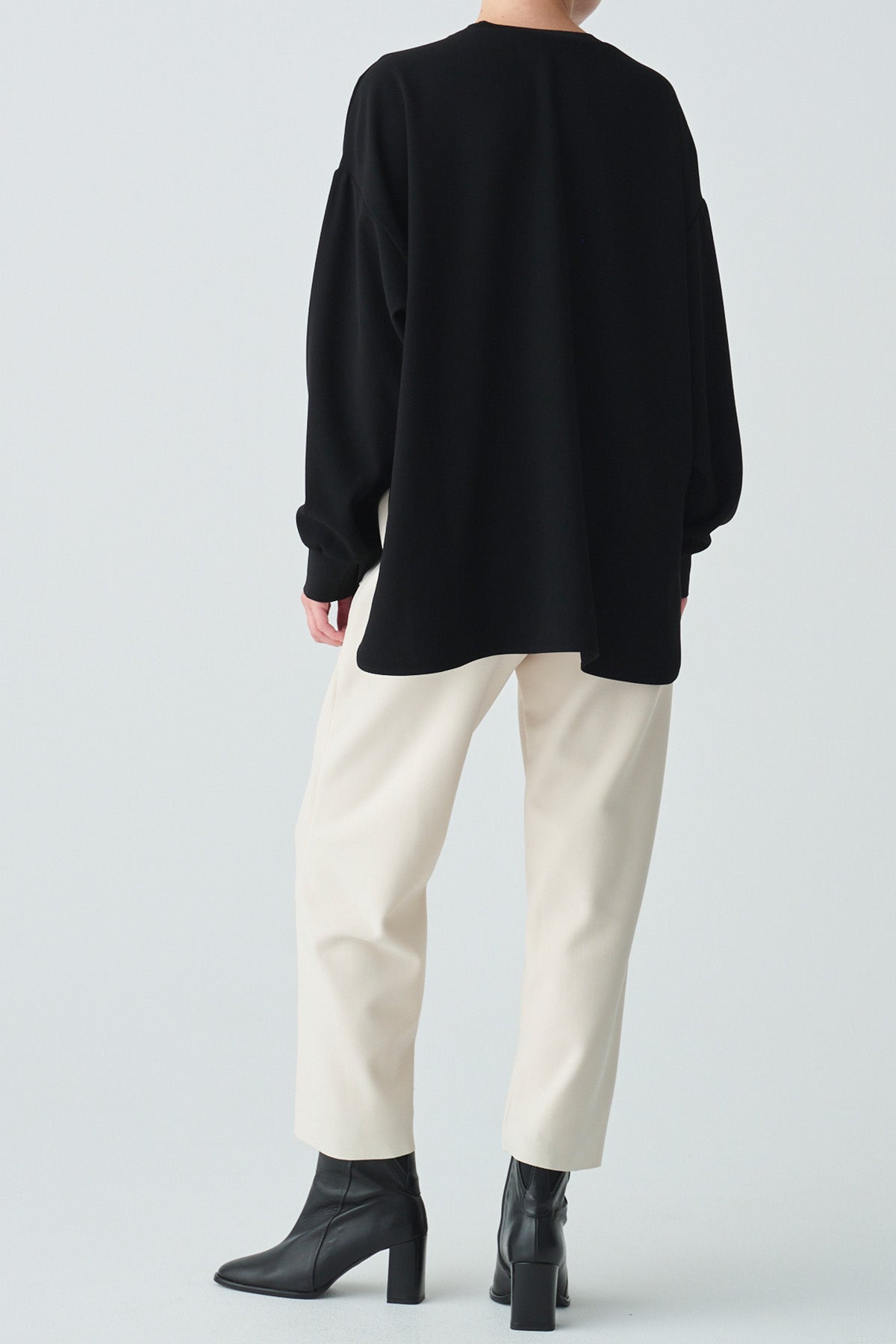 切りっぱなしのカットオフ仕様で、シンプルなデザインにモードな抜け感をプラス
