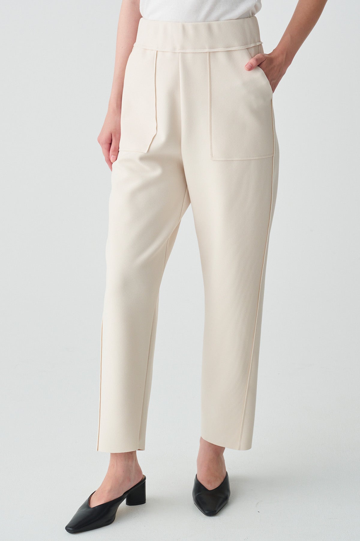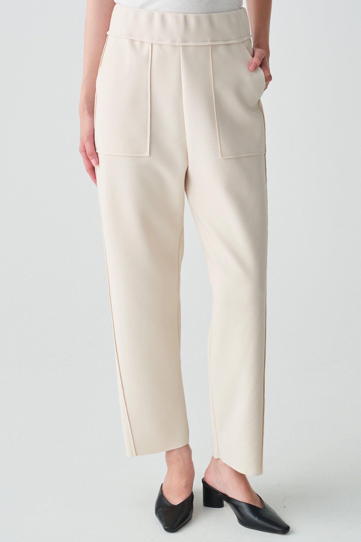 ストレッチの効いた素材で、快適な穿き心地を叶えるテーパードパンツ