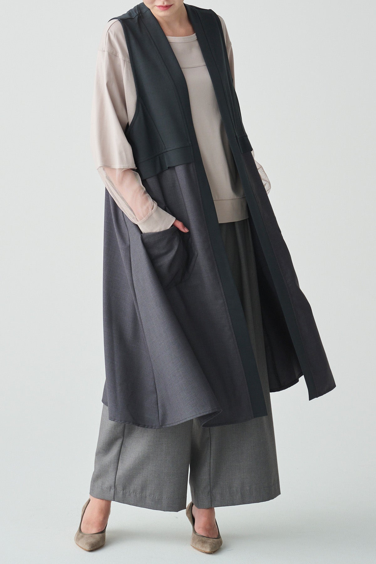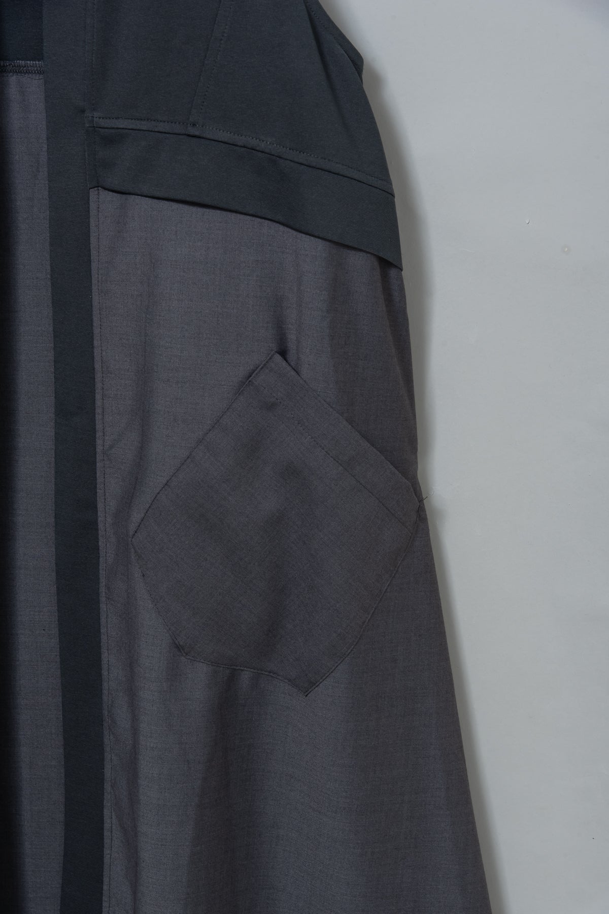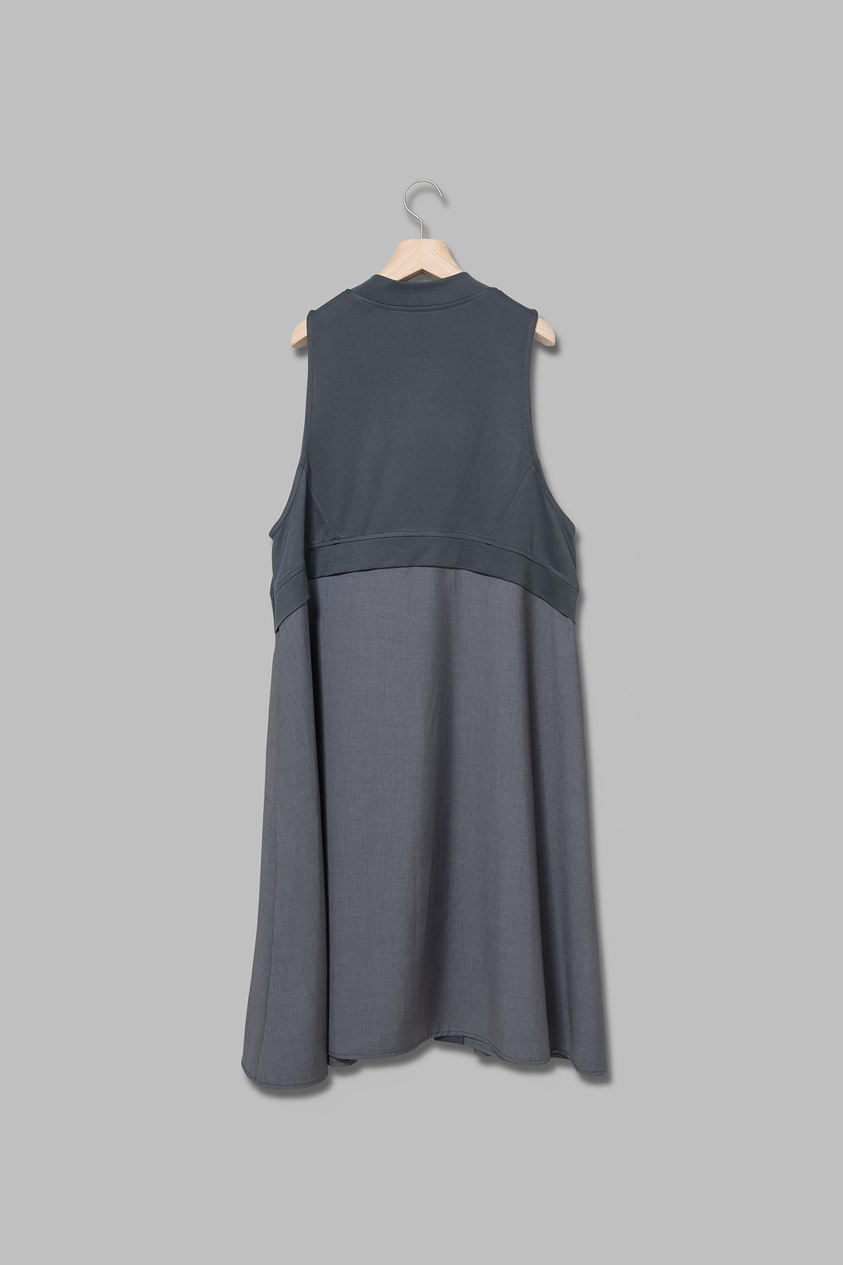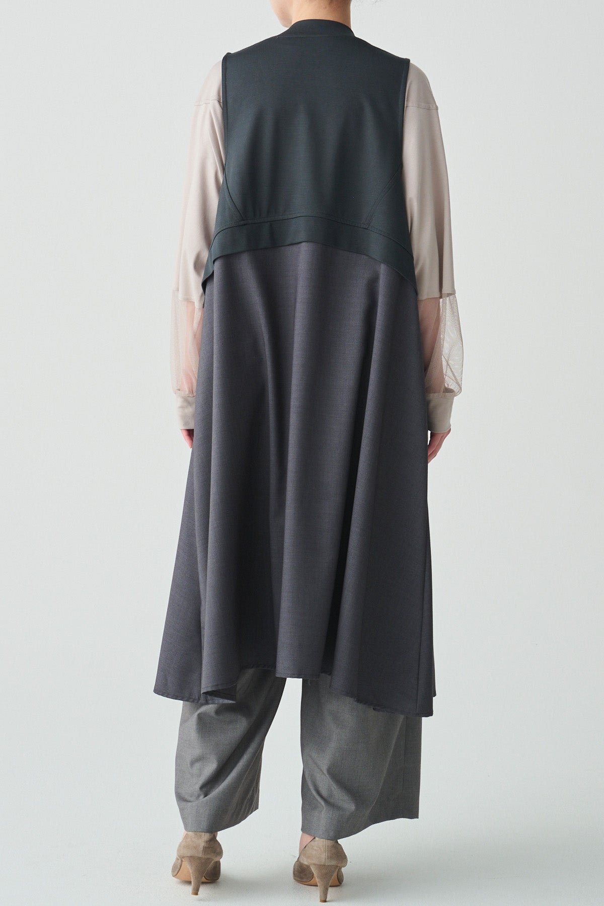 上部は伸縮性のあるカットソー素材、下部は布帛を使用し軽やかなフレア感をプラス