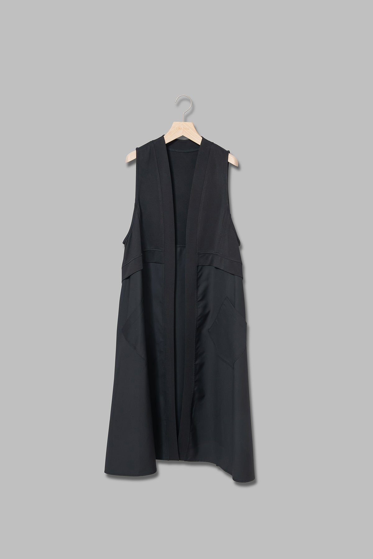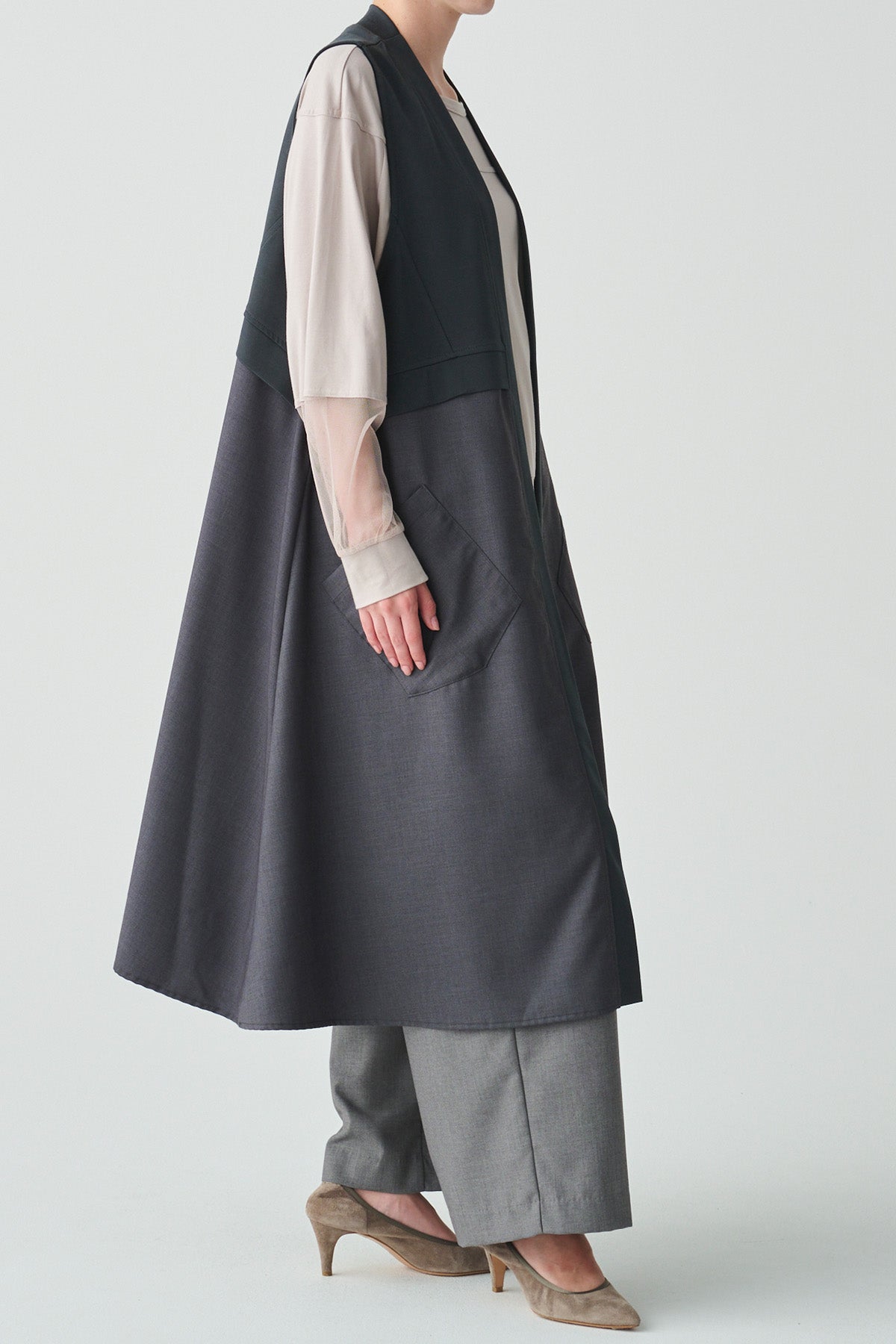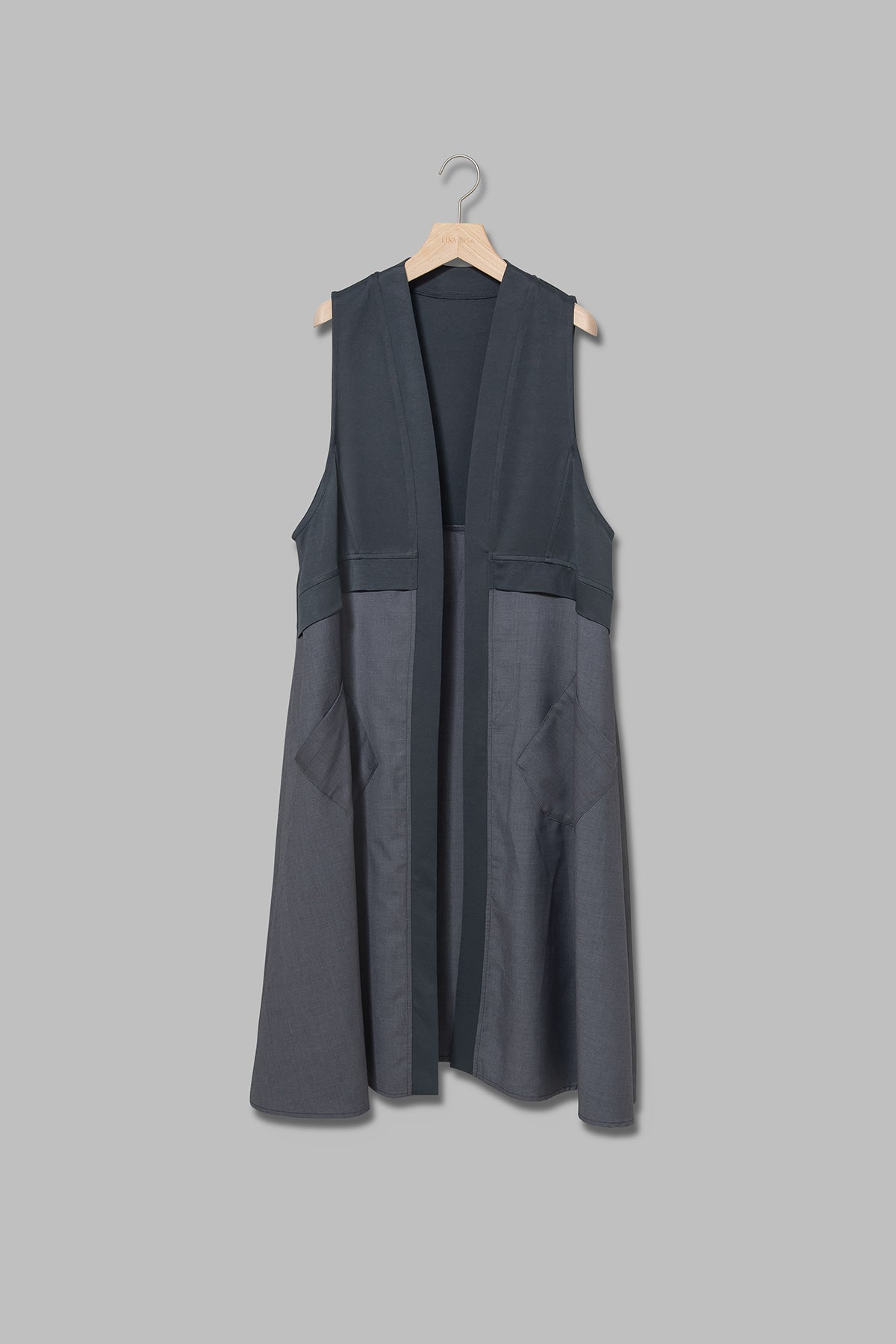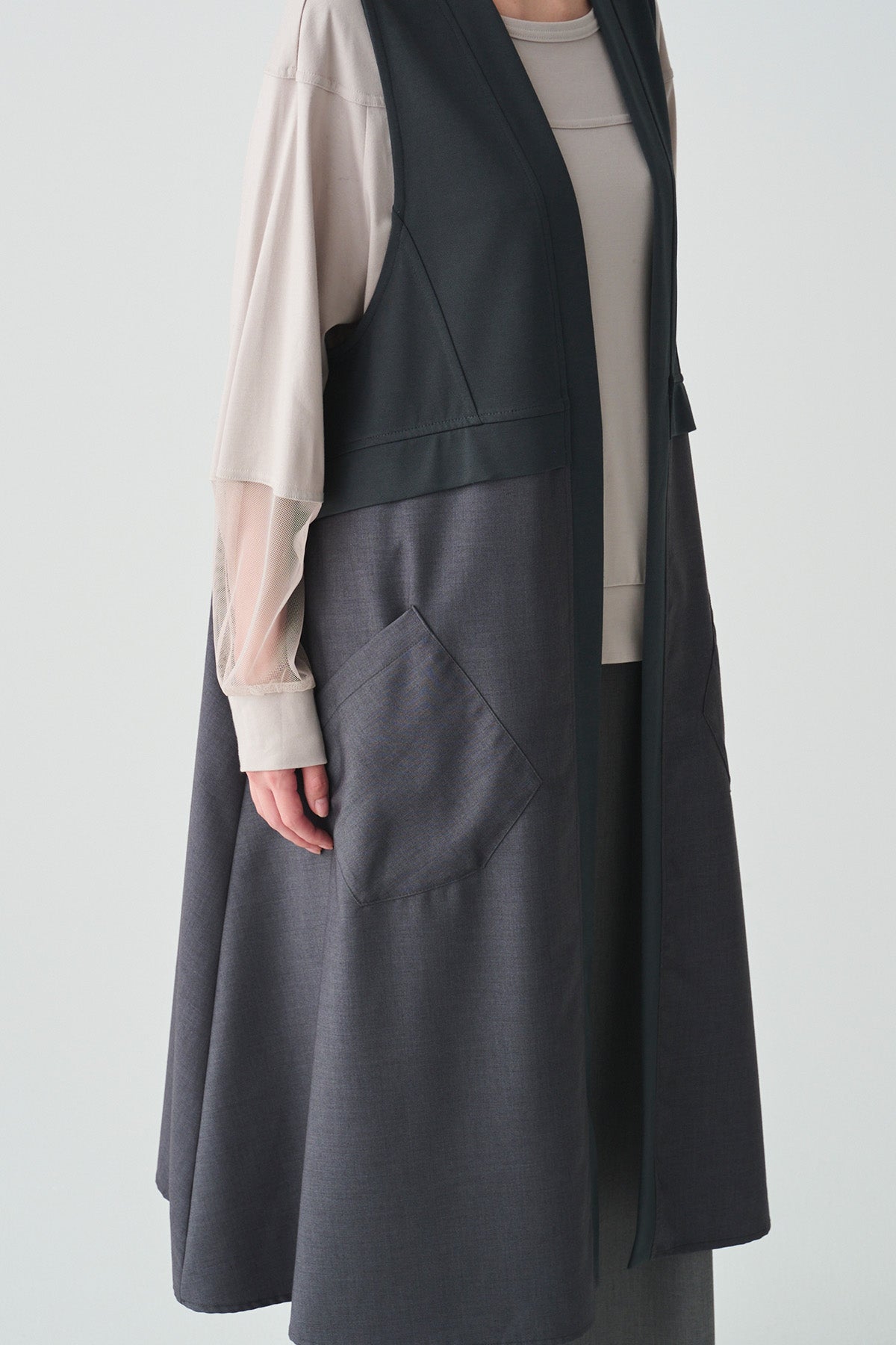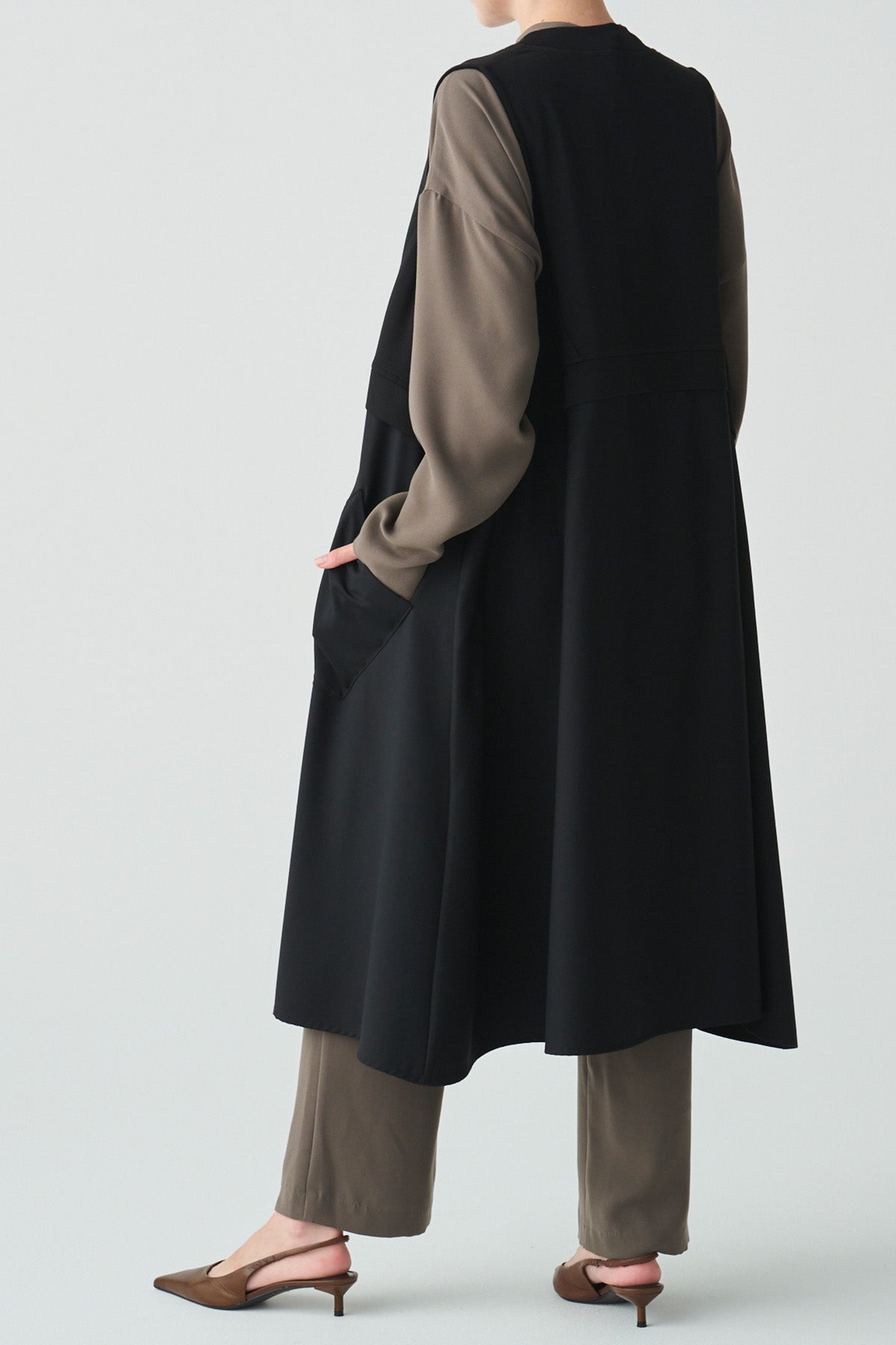 上部は伸縮性のあるカットソー素材、下部は布帛を使用し軽やかなフレア感をプラス