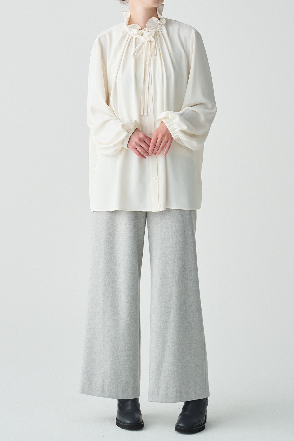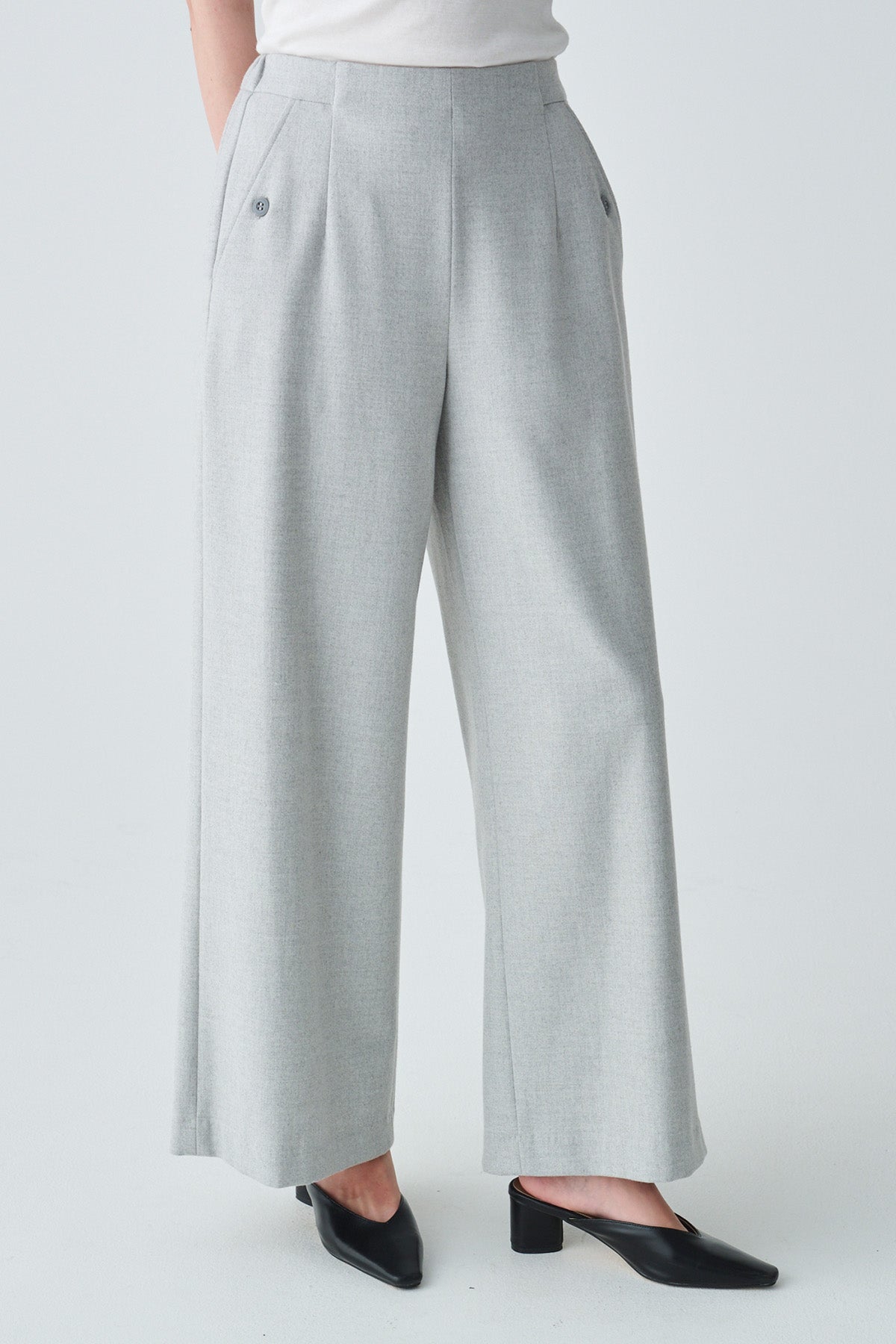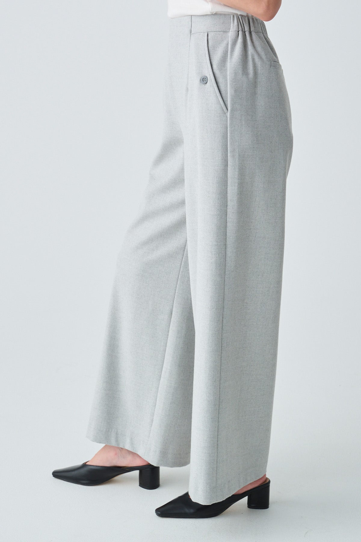 ほんのりと起毛したダブルピーチスキン素材を使用したワイドパンツ