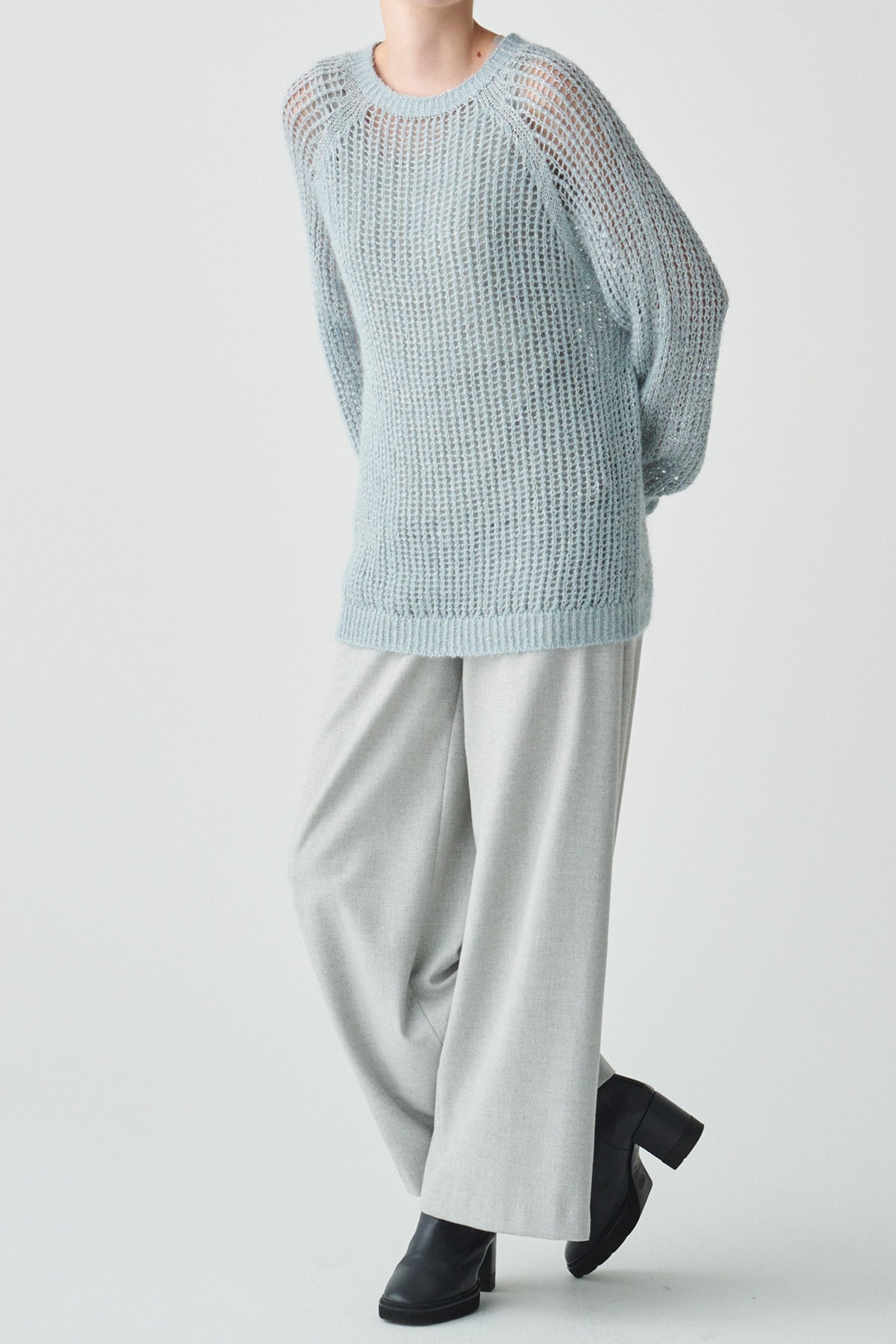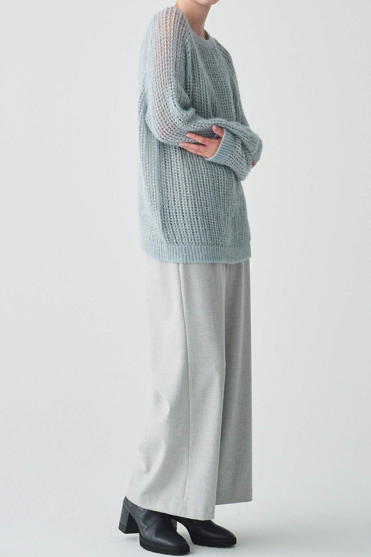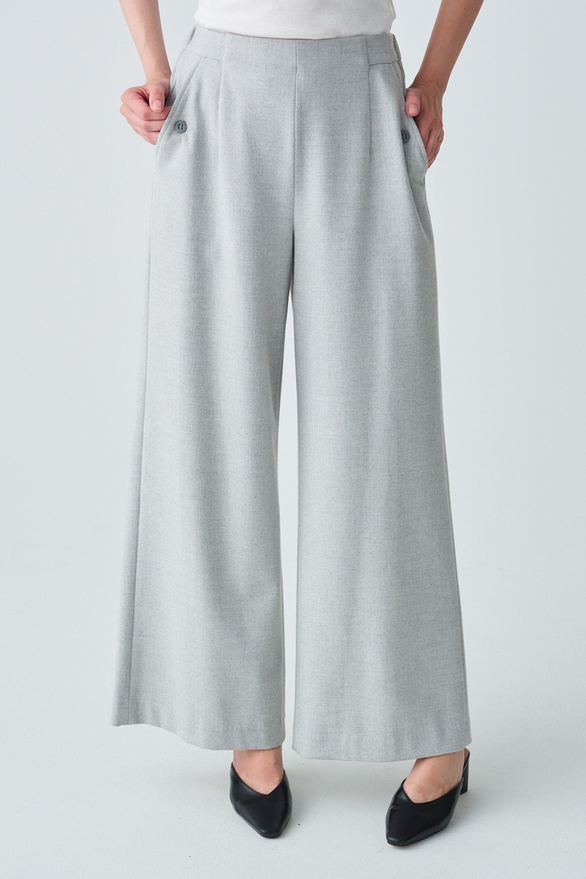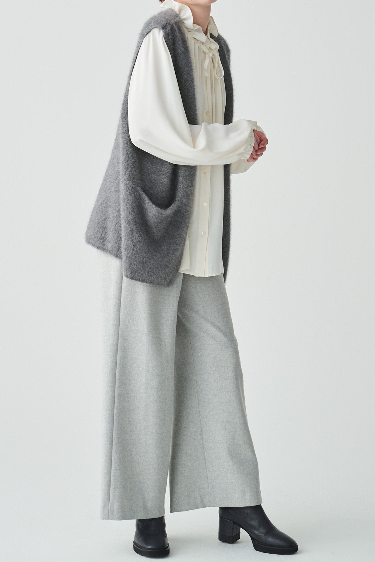ほんのりと起毛したダブルピーチスキン素材を使用したワイドパンツ