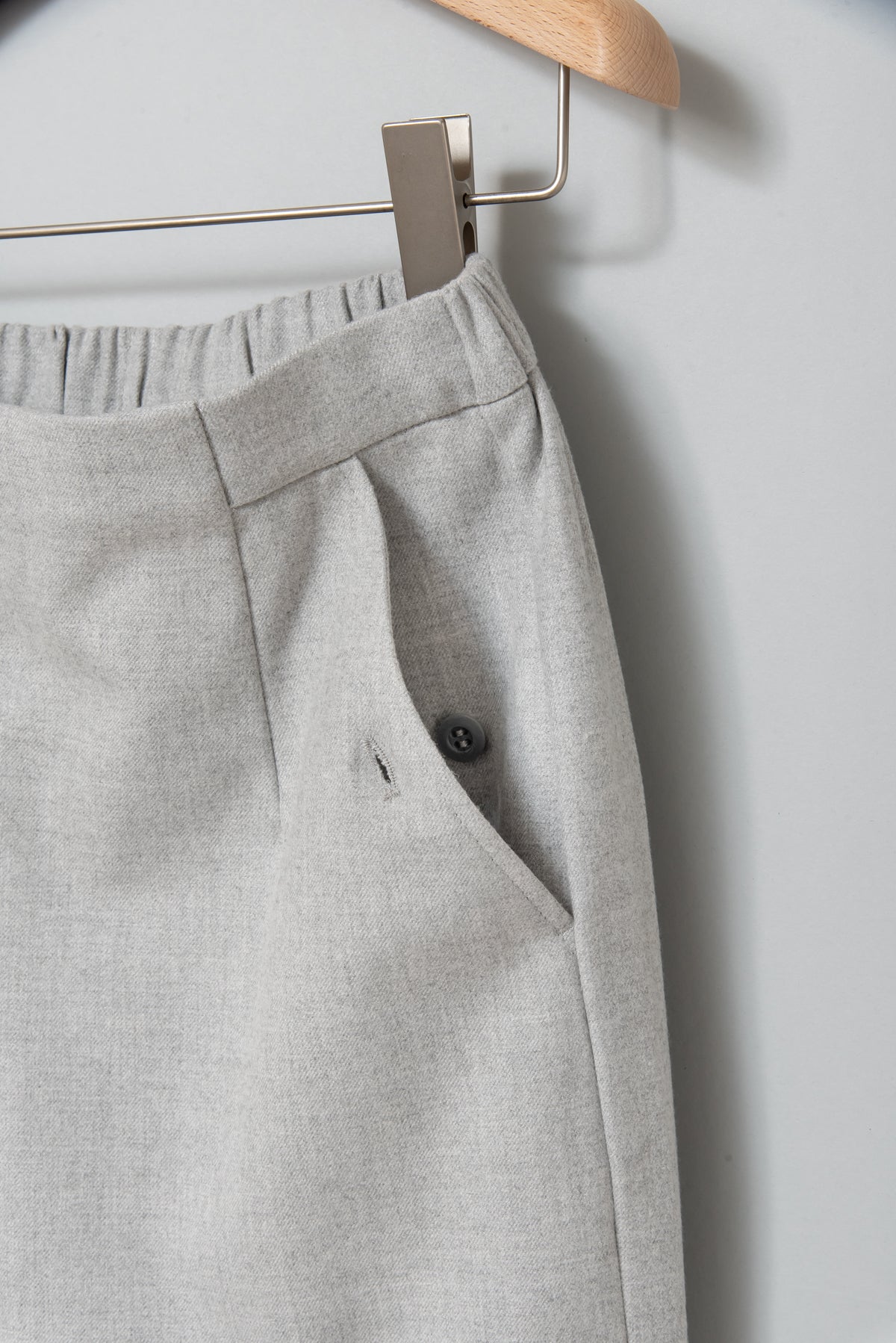 【仕様】裏地なし、ウエスト後ろ半分ゴム、両サイドポケット+ワンボタン