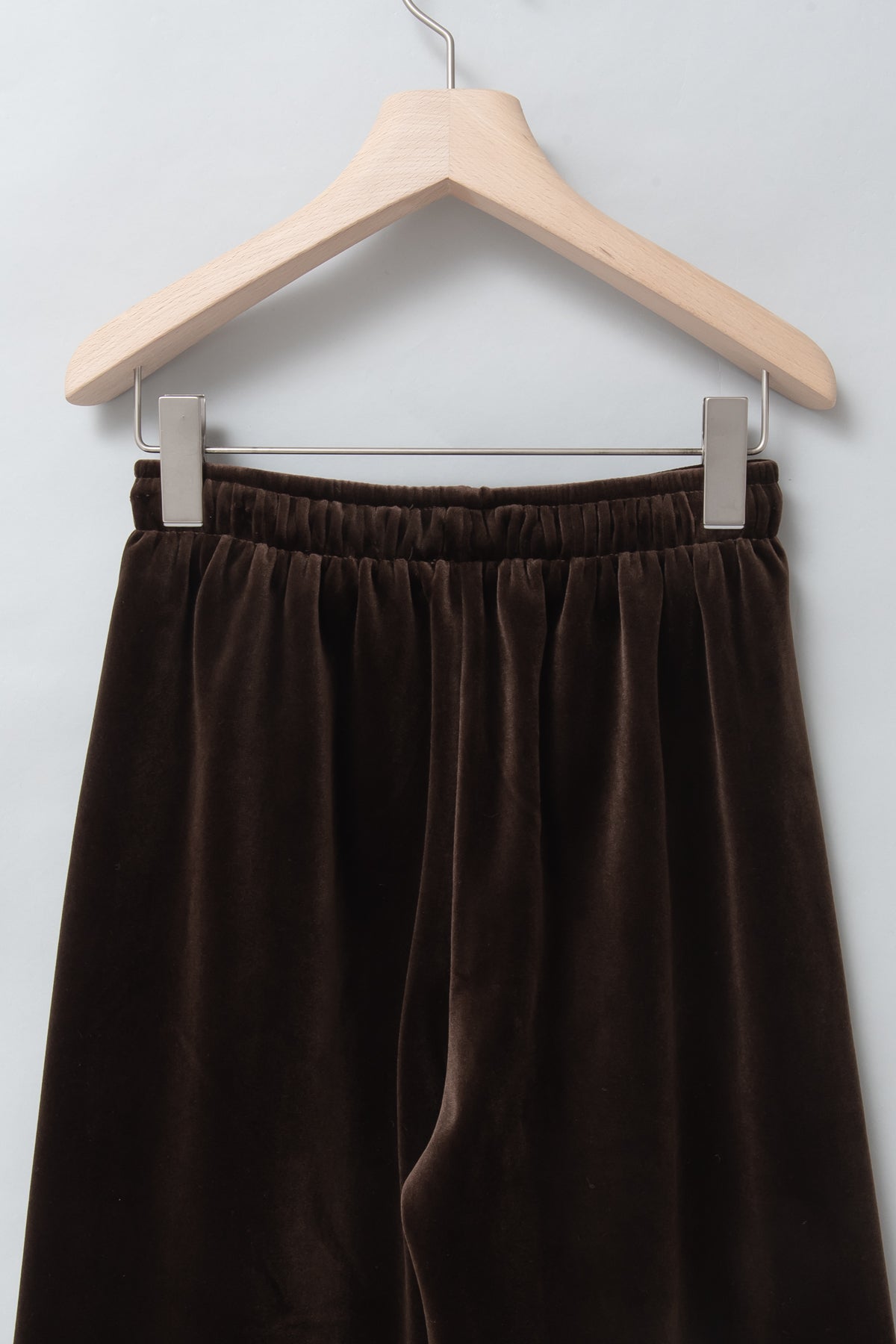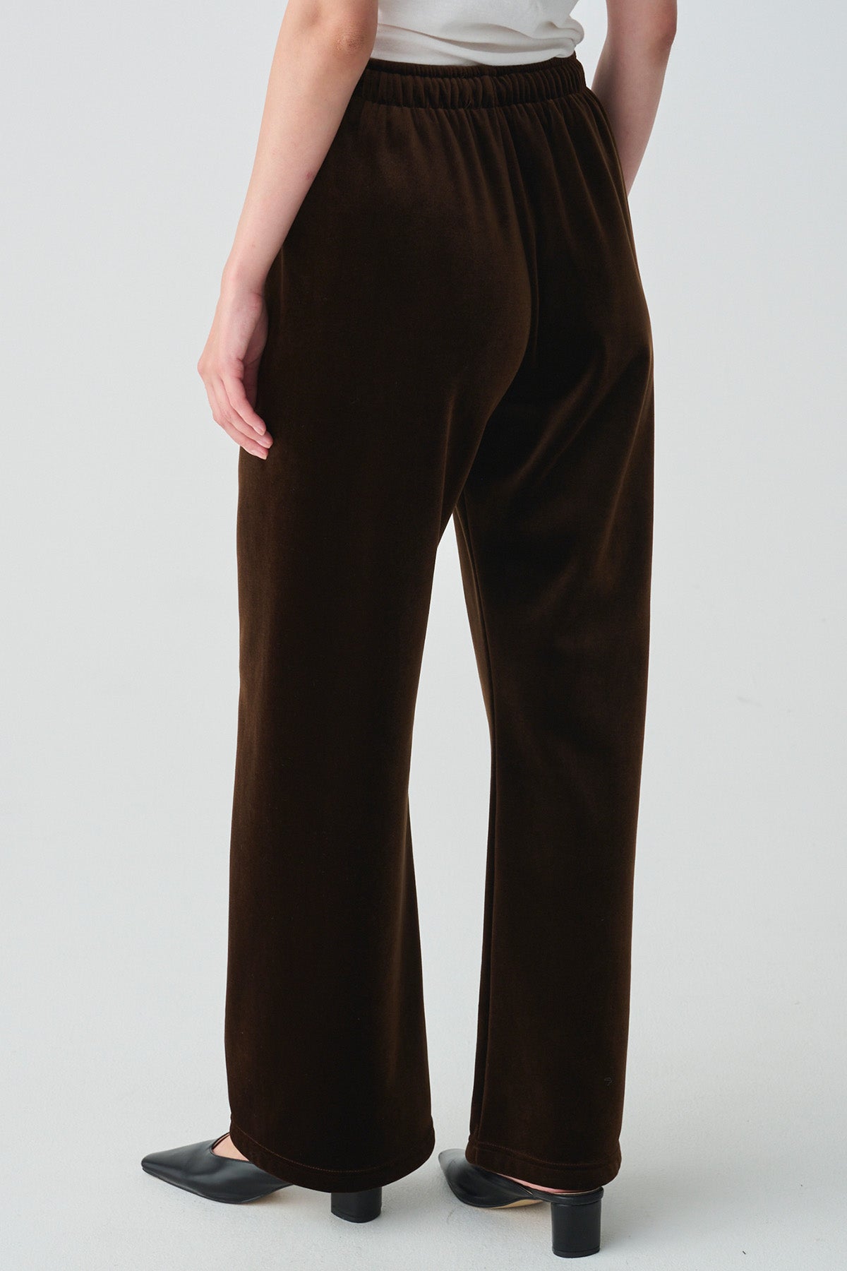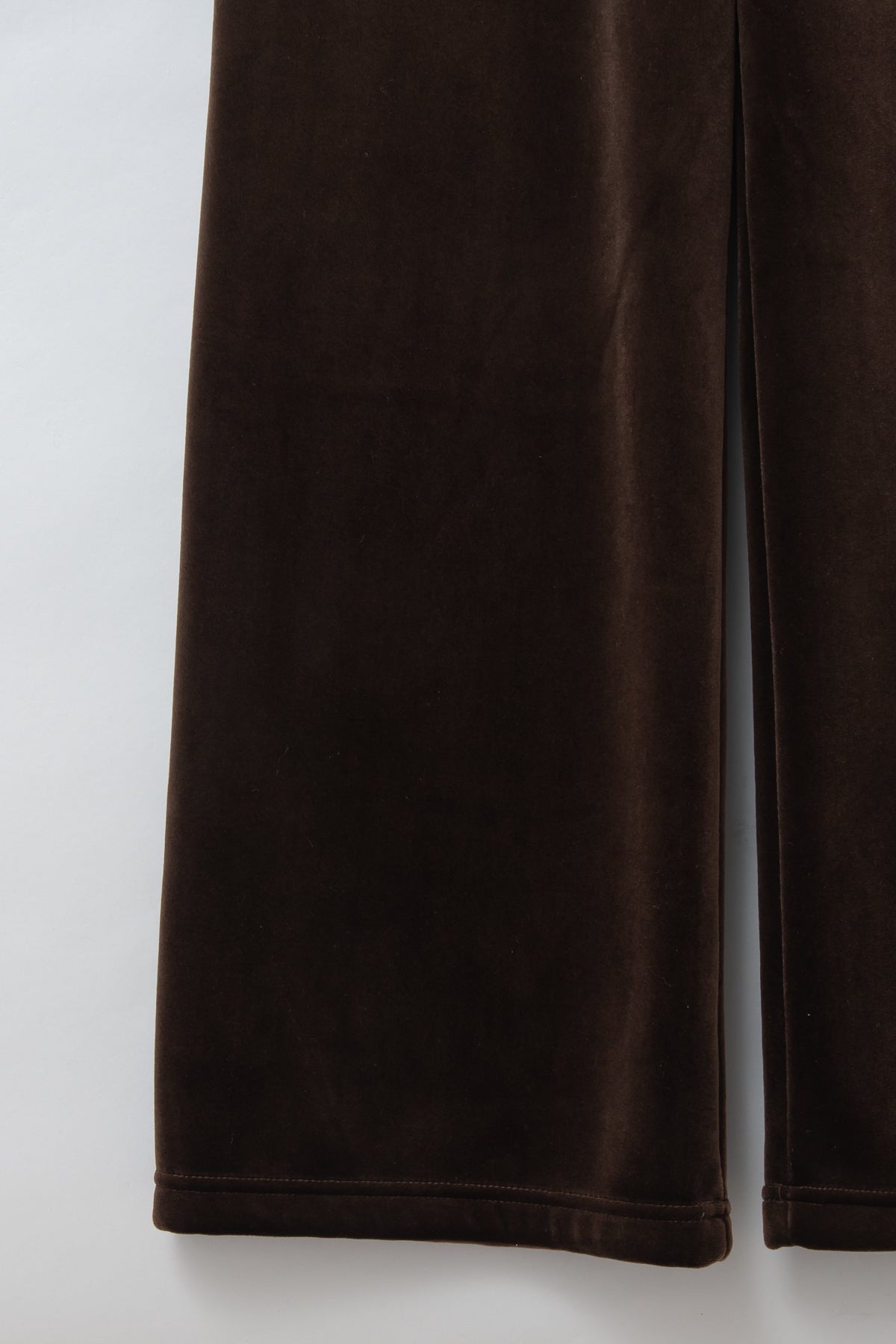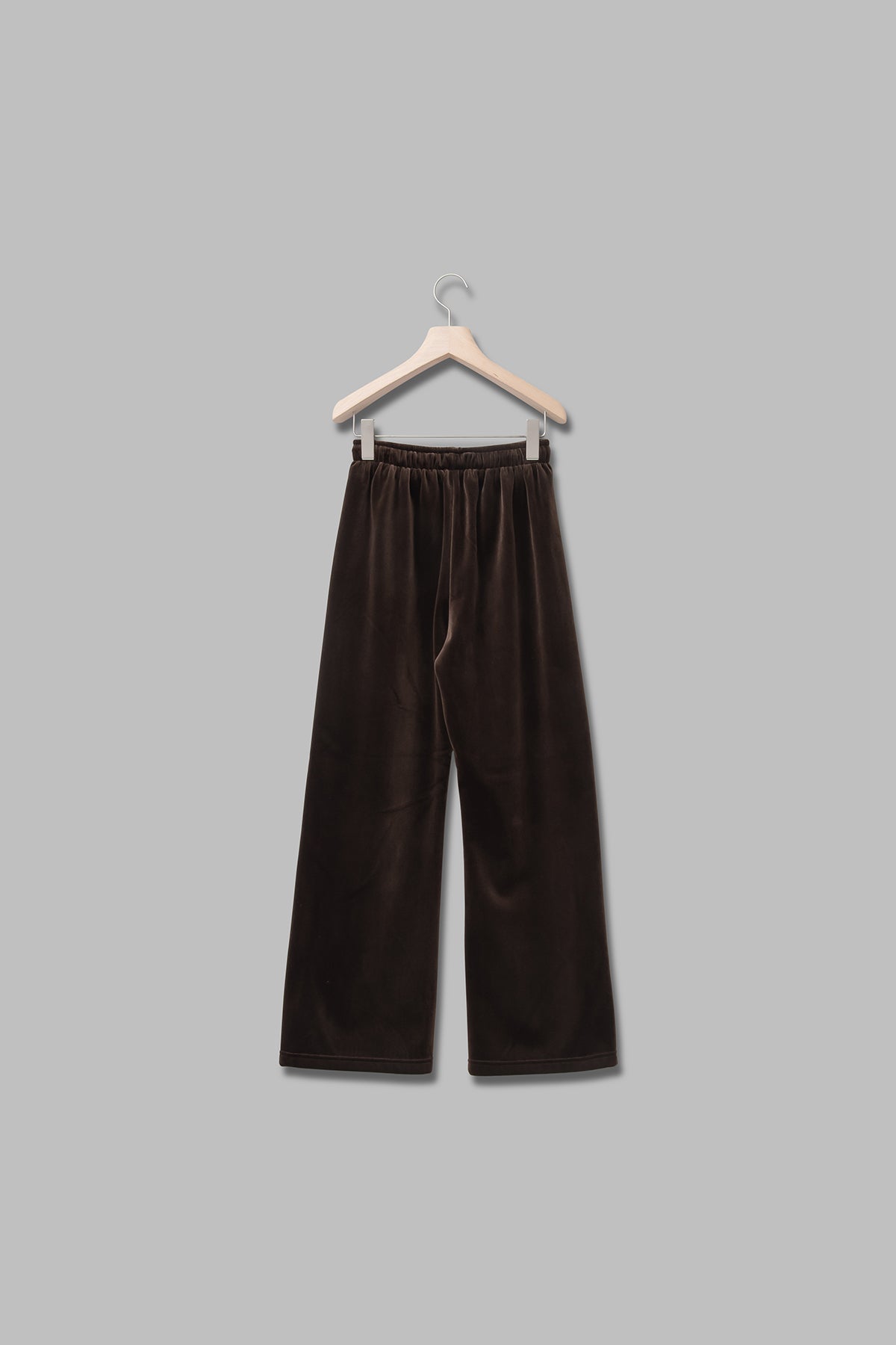 光沢のある上質なベロア素材で、すとんと落ちる美しいシルエットが魅力のベロアパンツ