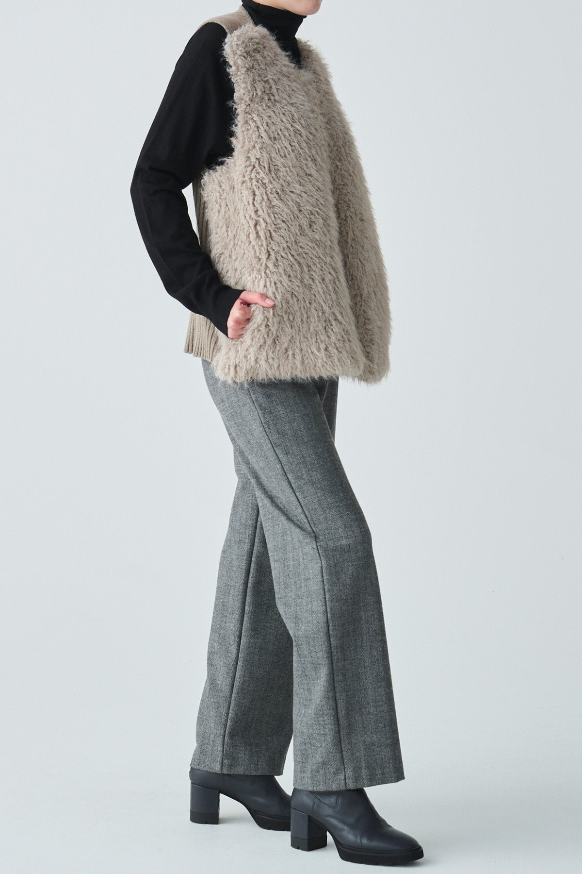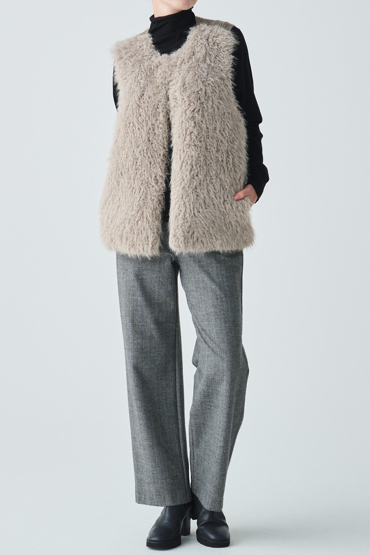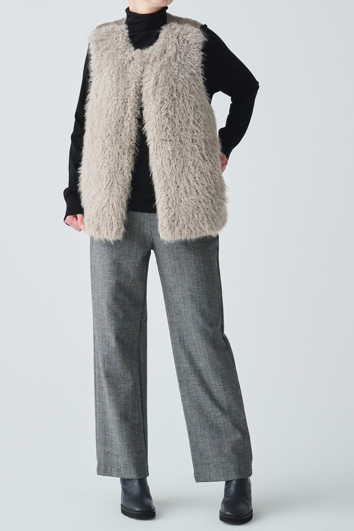 フェイクファーニット切替ジレ