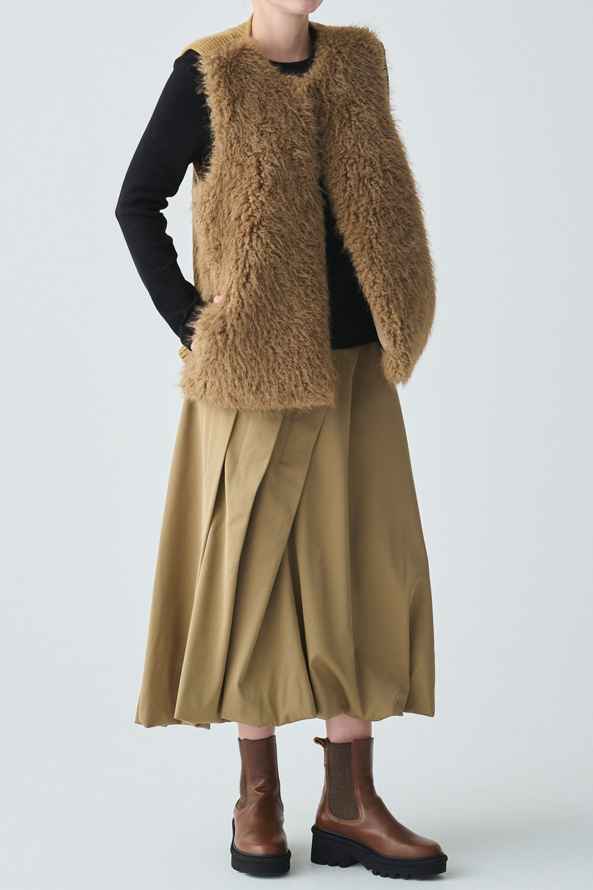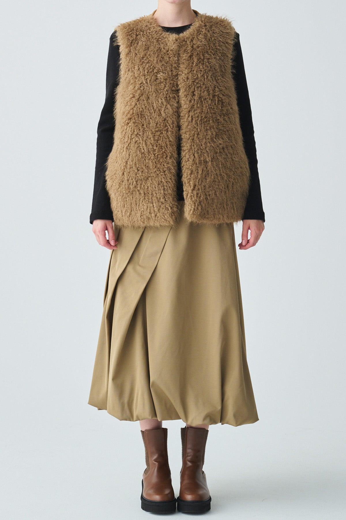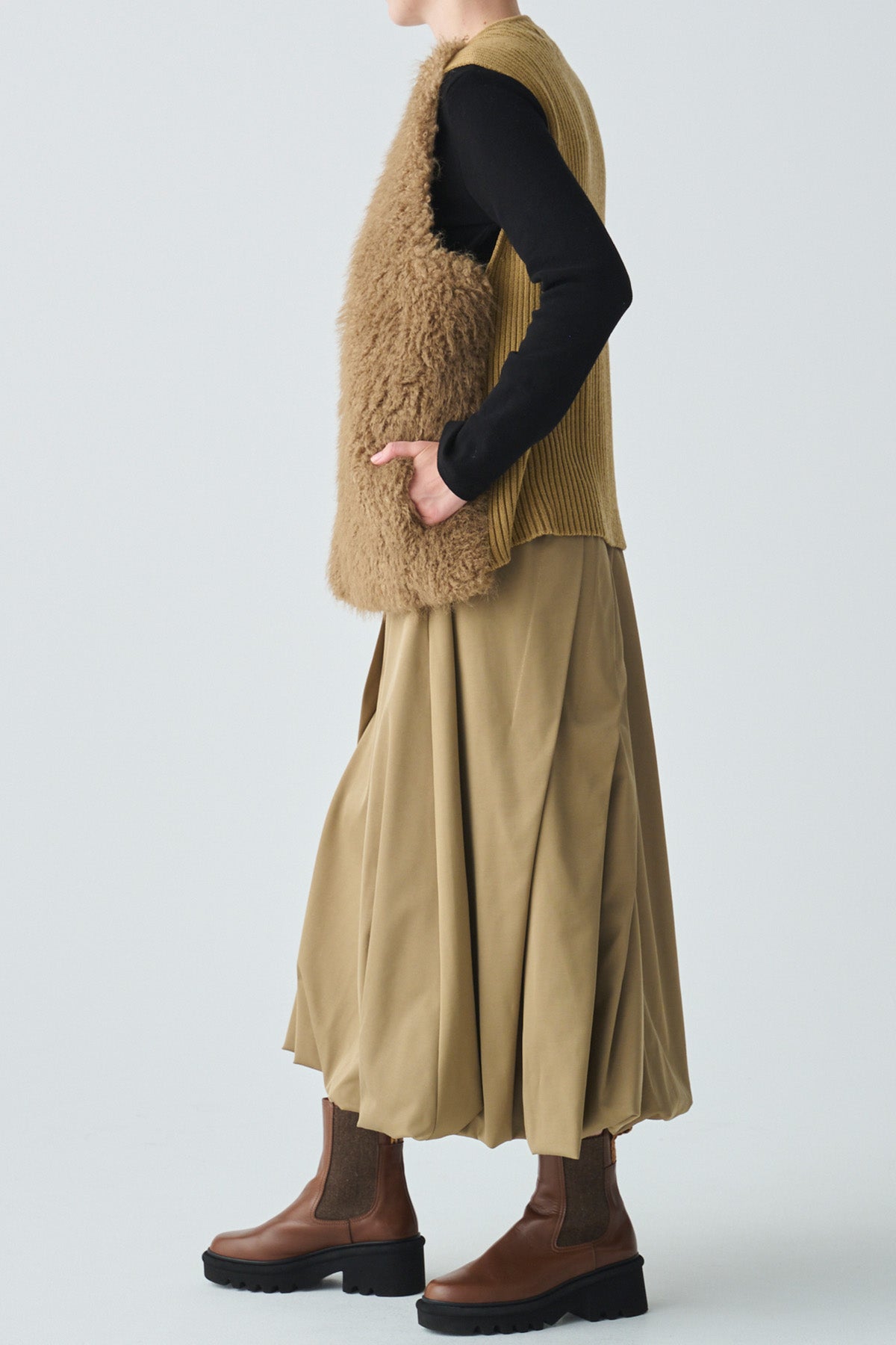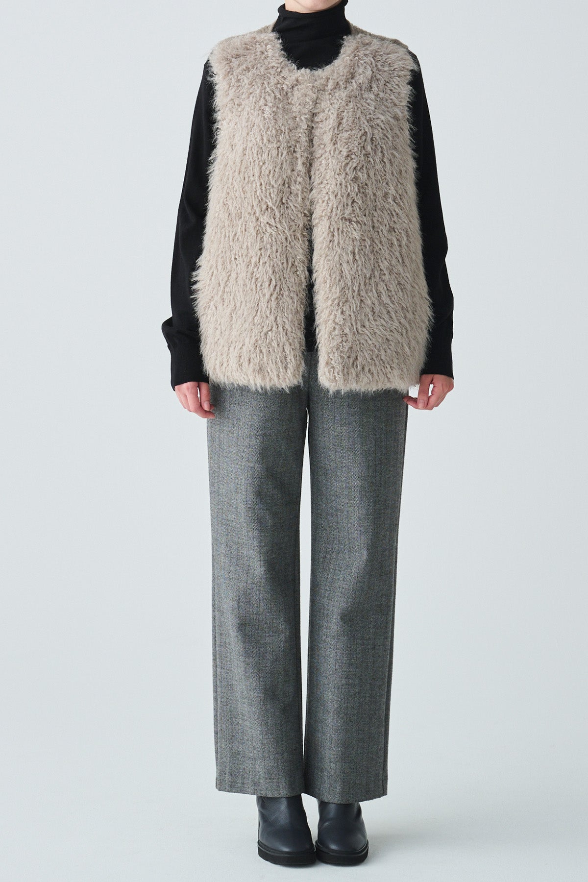 フェイクファーニット切替ジレ