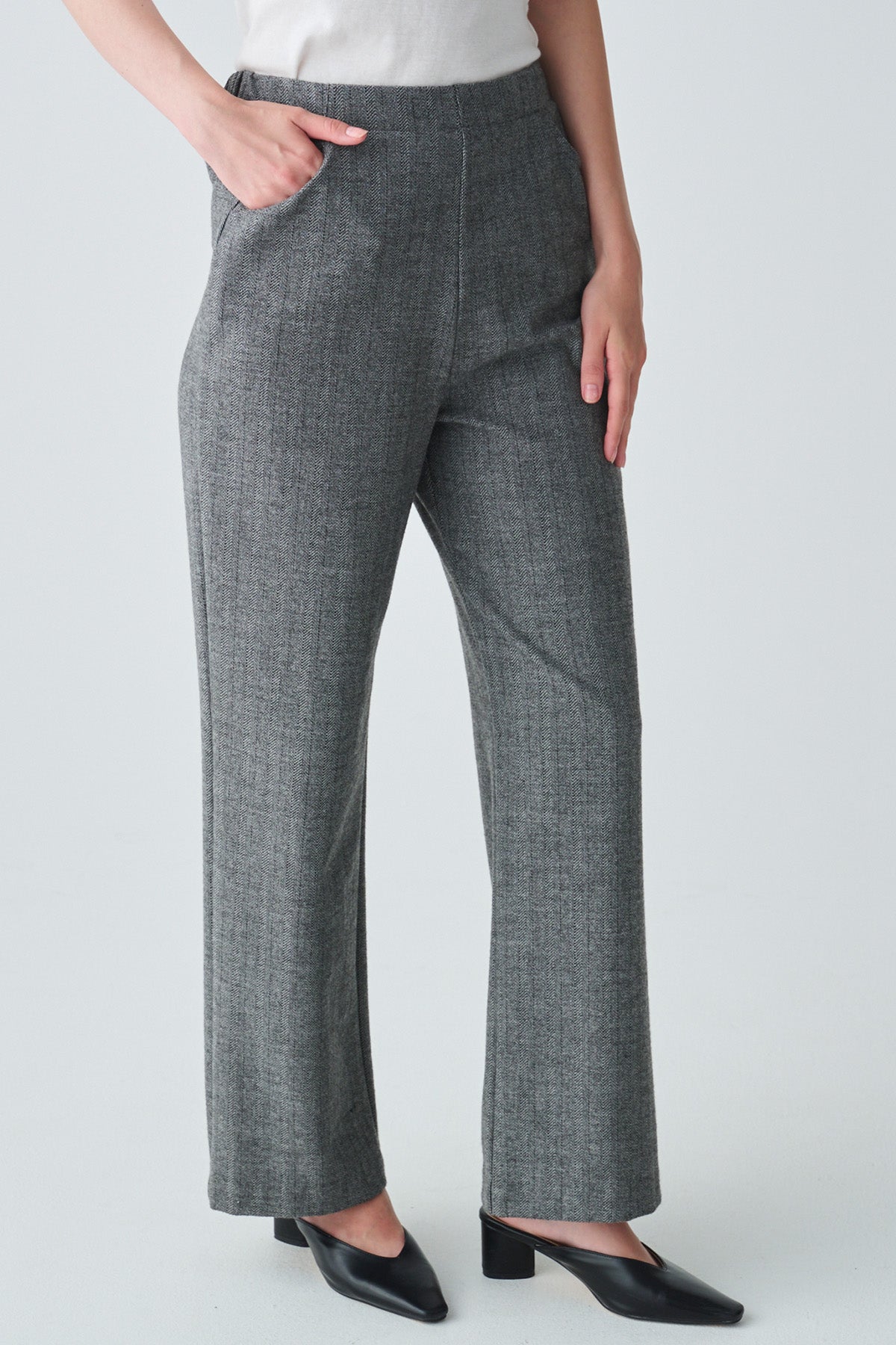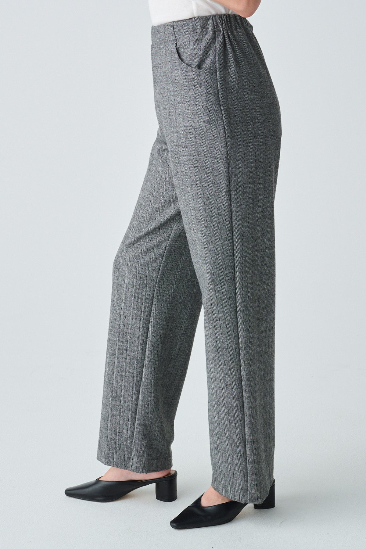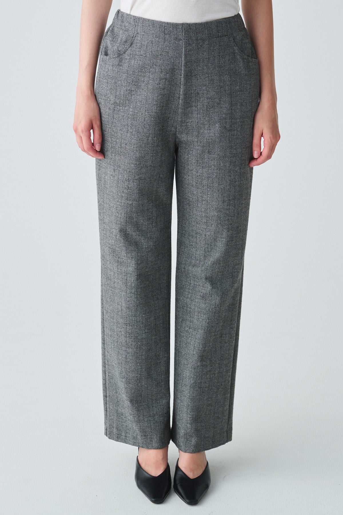 クラシカルなヘリンボーン柄をモダンに仕立てたストレートパンツ