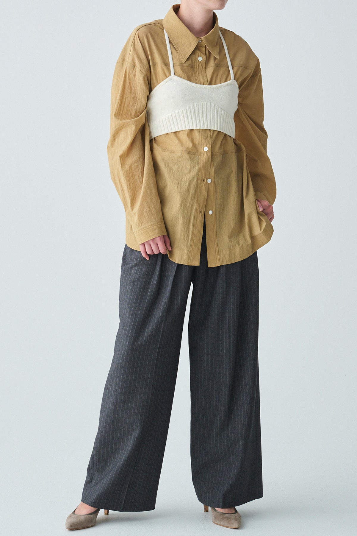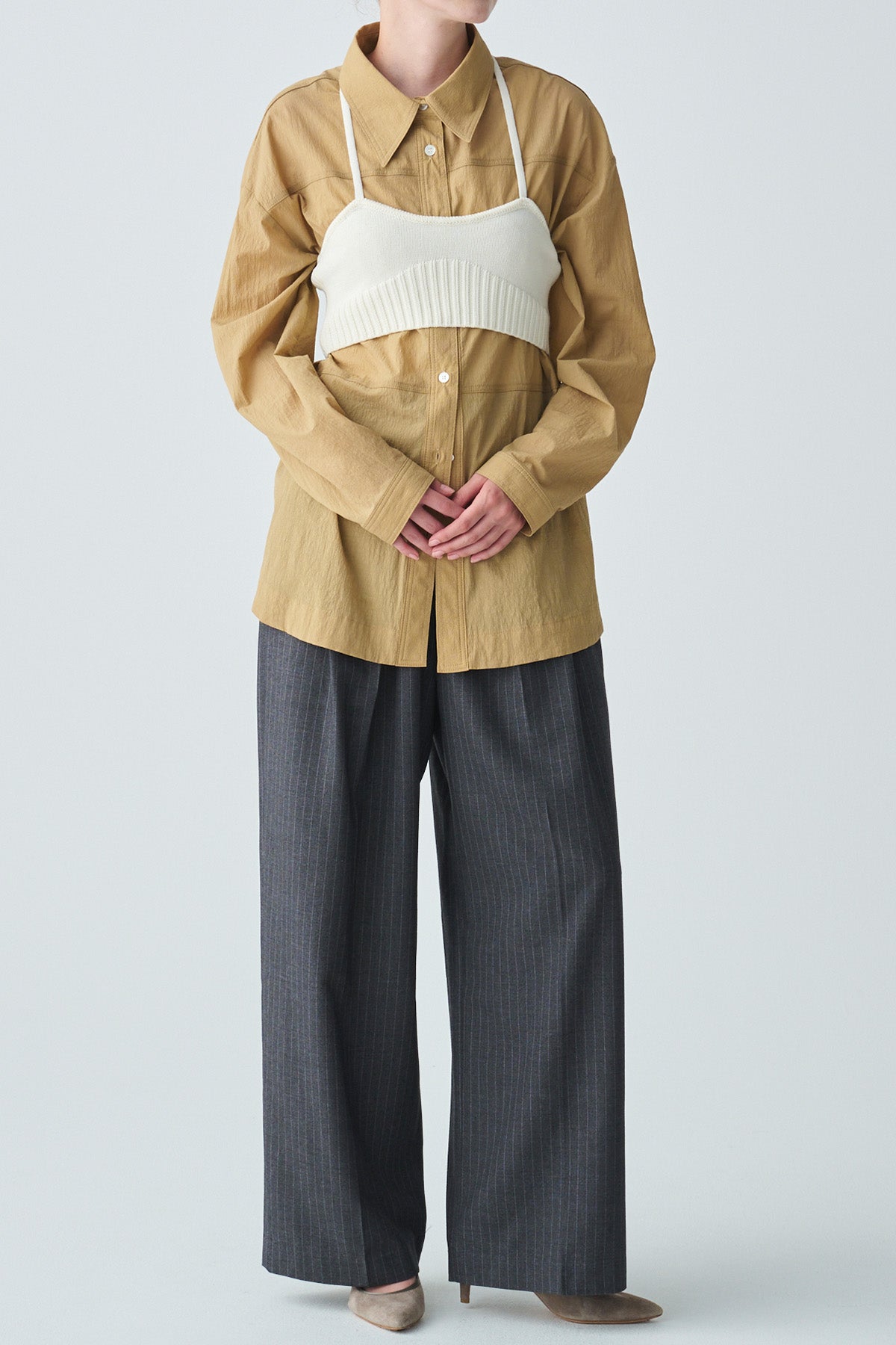 シンプルなシャツやカットソーに重ねるだけで、スタイリングに新鮮なバランスを生むニットビスチェ