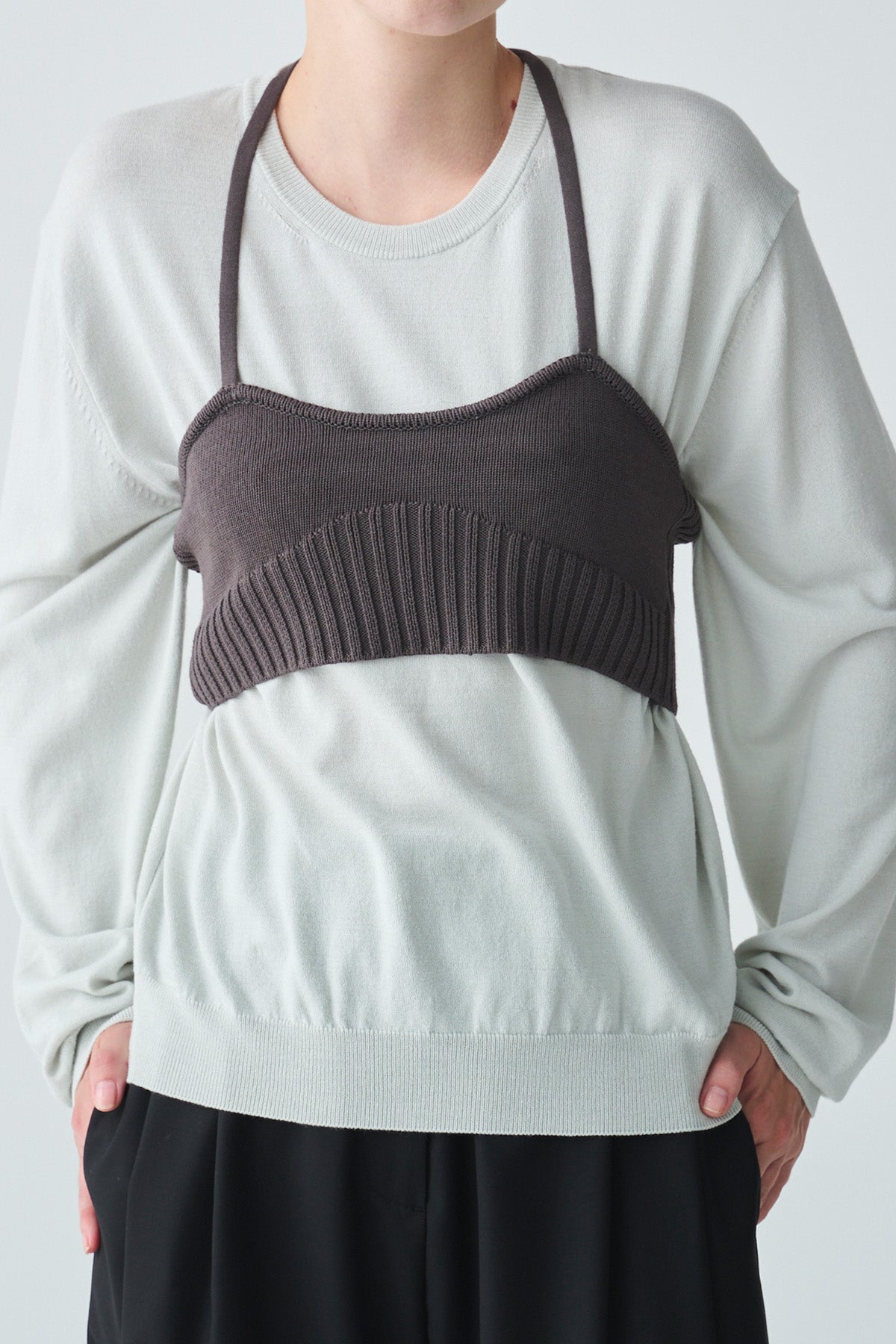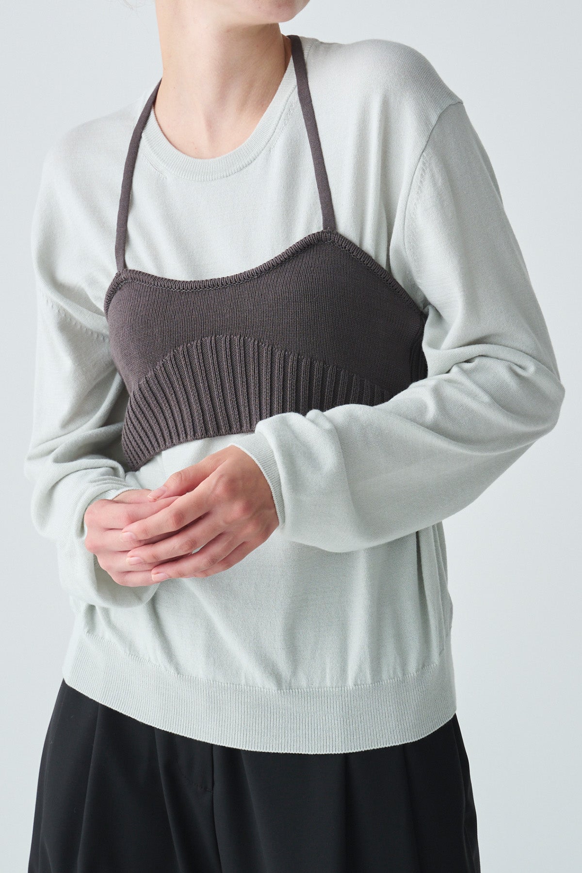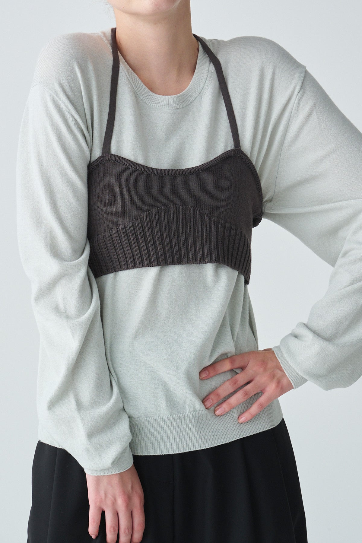 程よいフィット感のリブ編みがウエストラインをすっきり見せ、細めのストラップが女性らしい抜け感を演出します