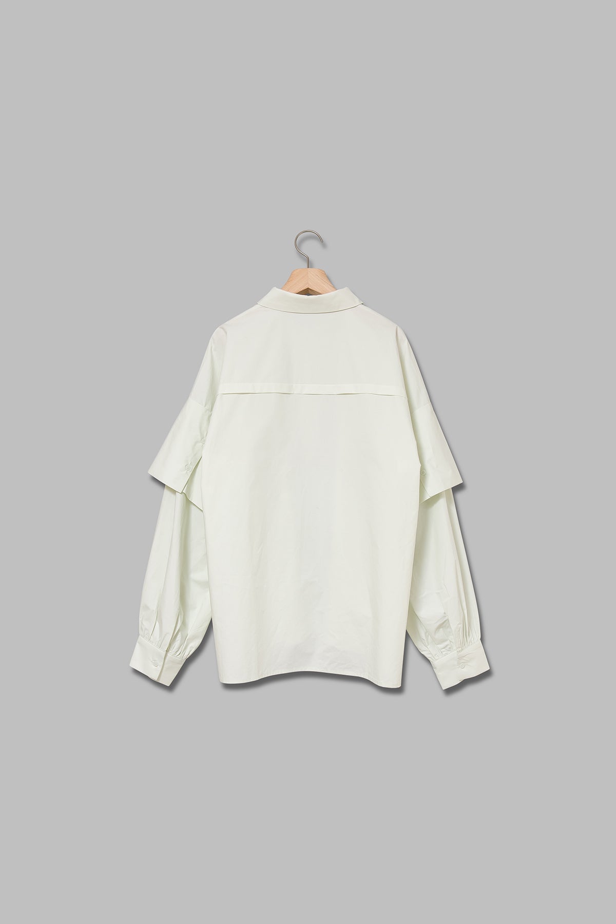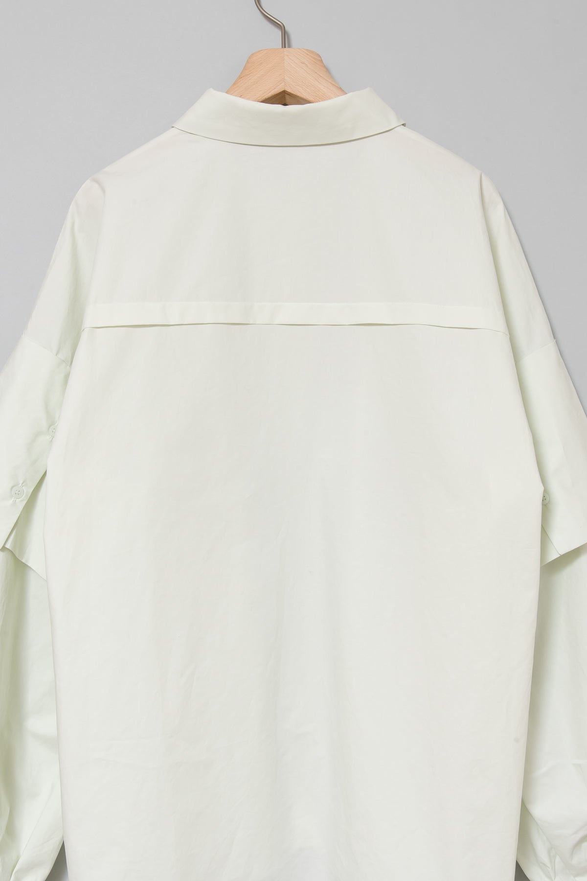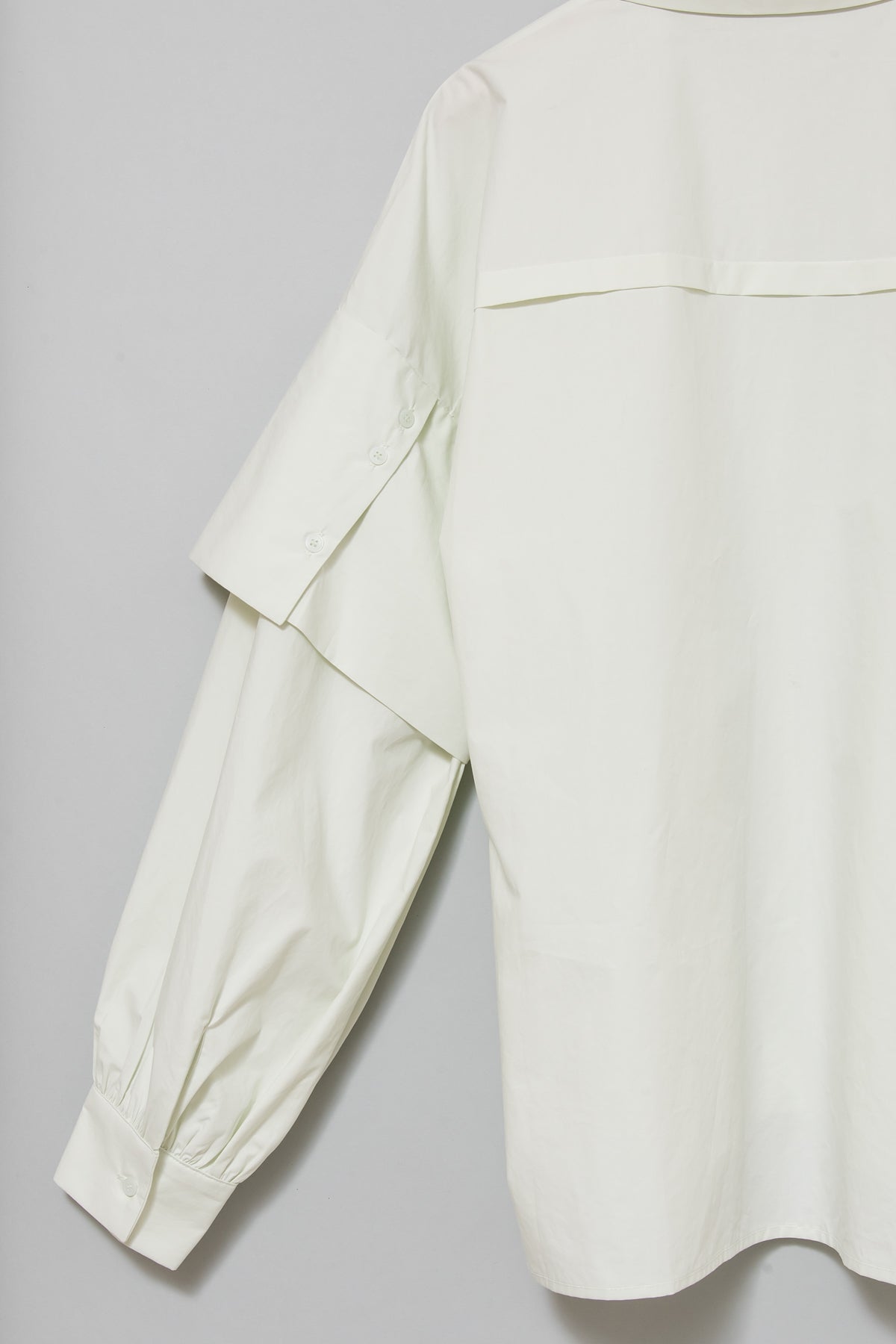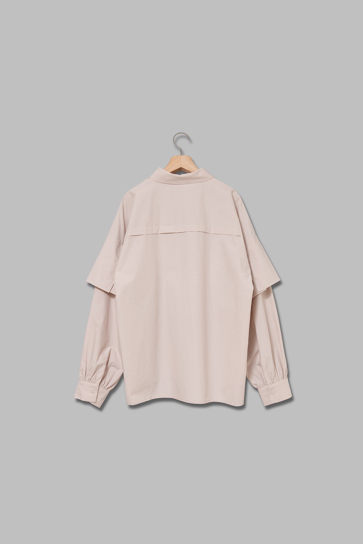 半袖に長袖を重ねたような、遊び心あるデザインシャツ