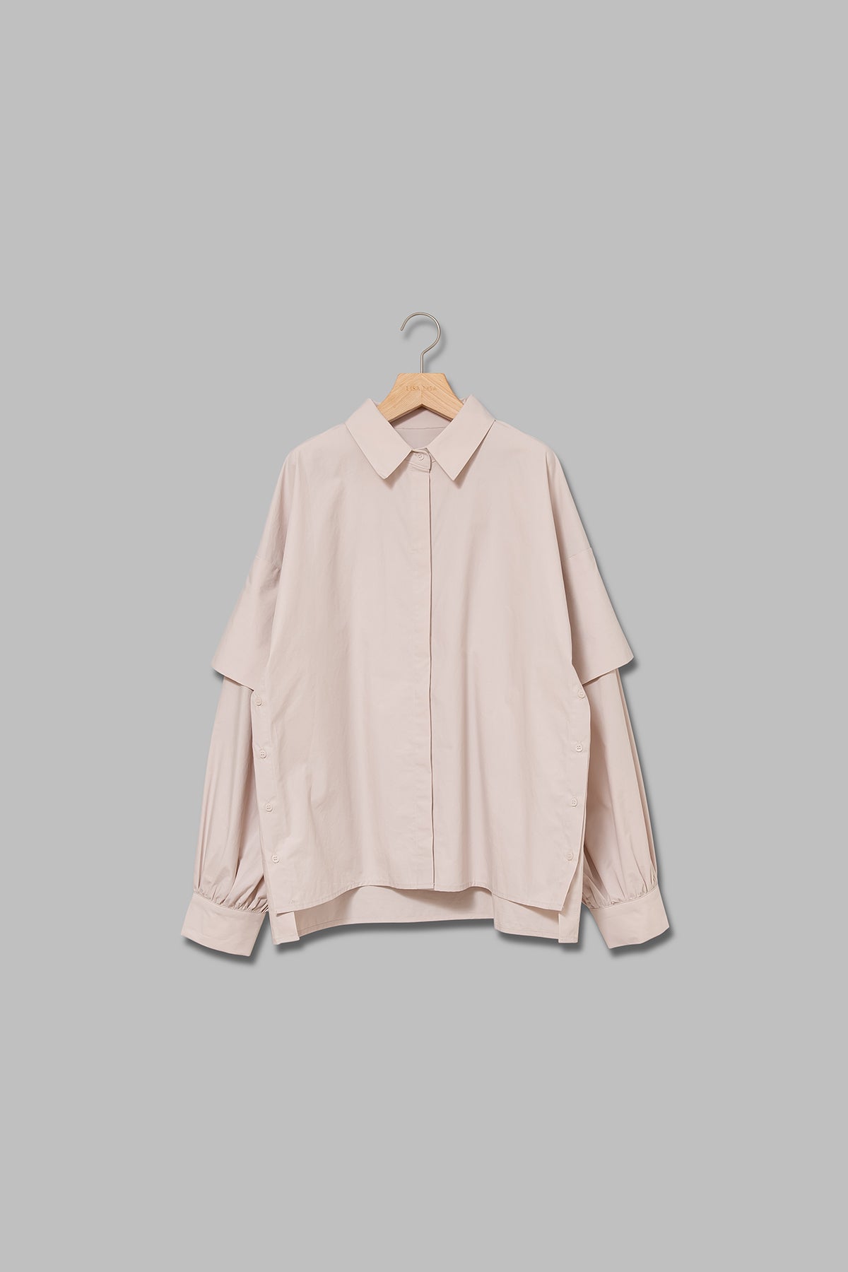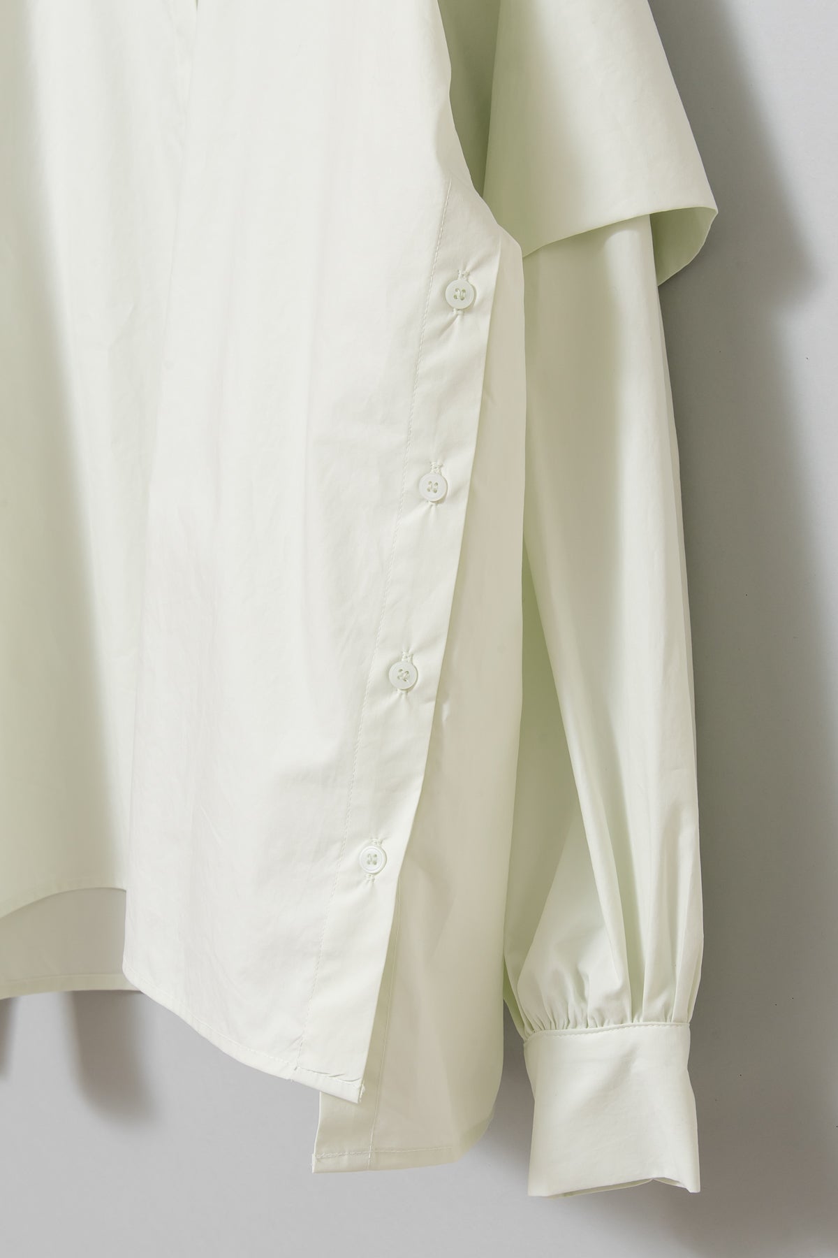 両サイドと袖後ろに施したボタンディテールで、ニュアンスのあるシルエットに