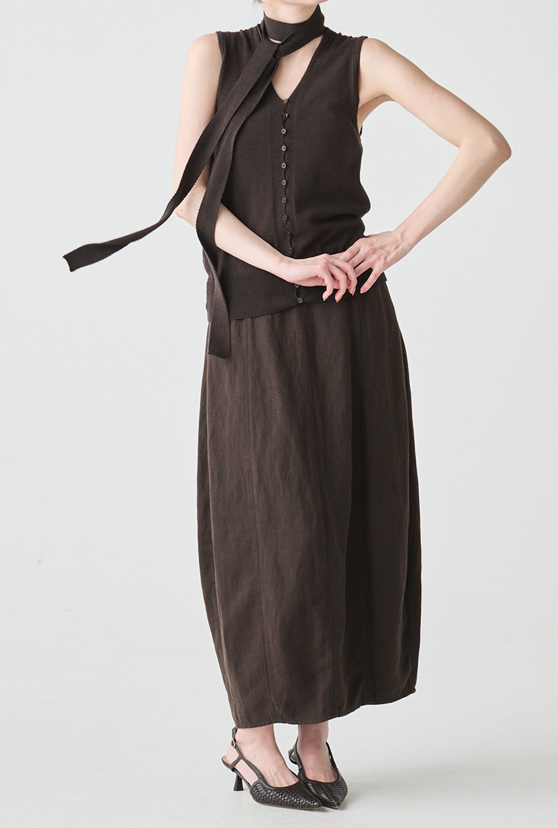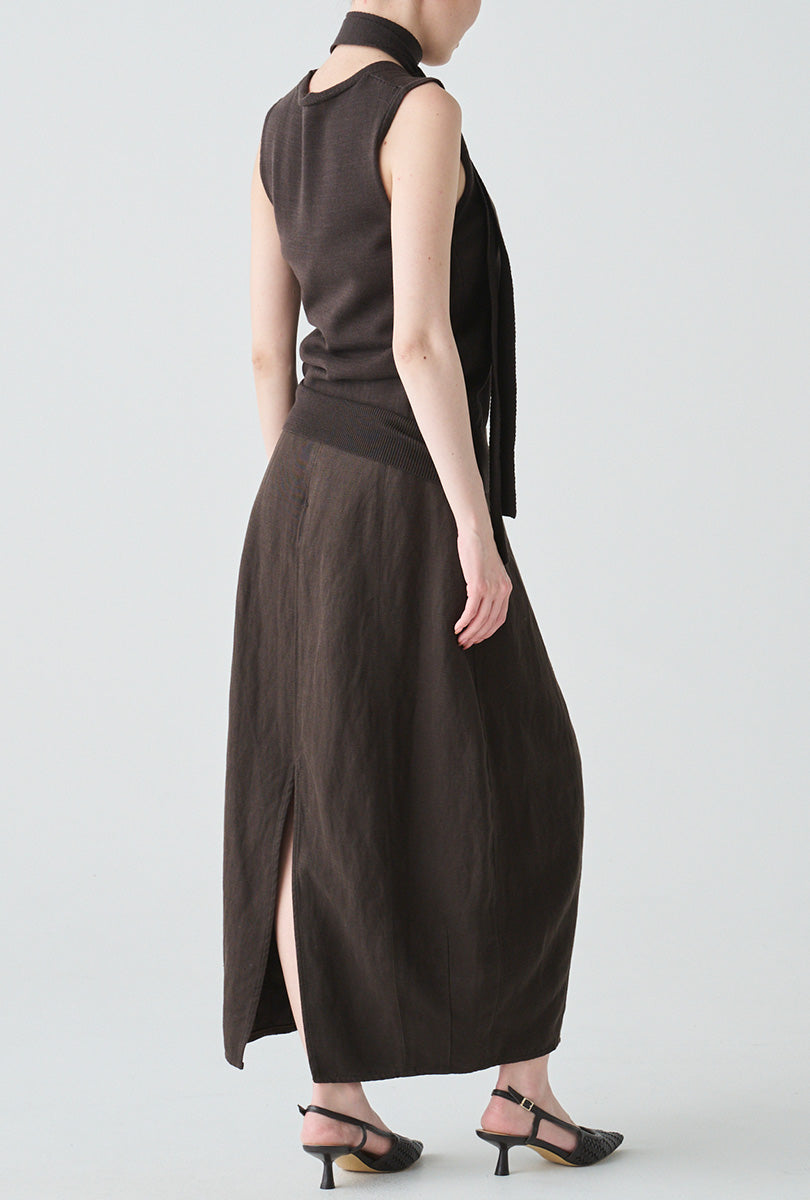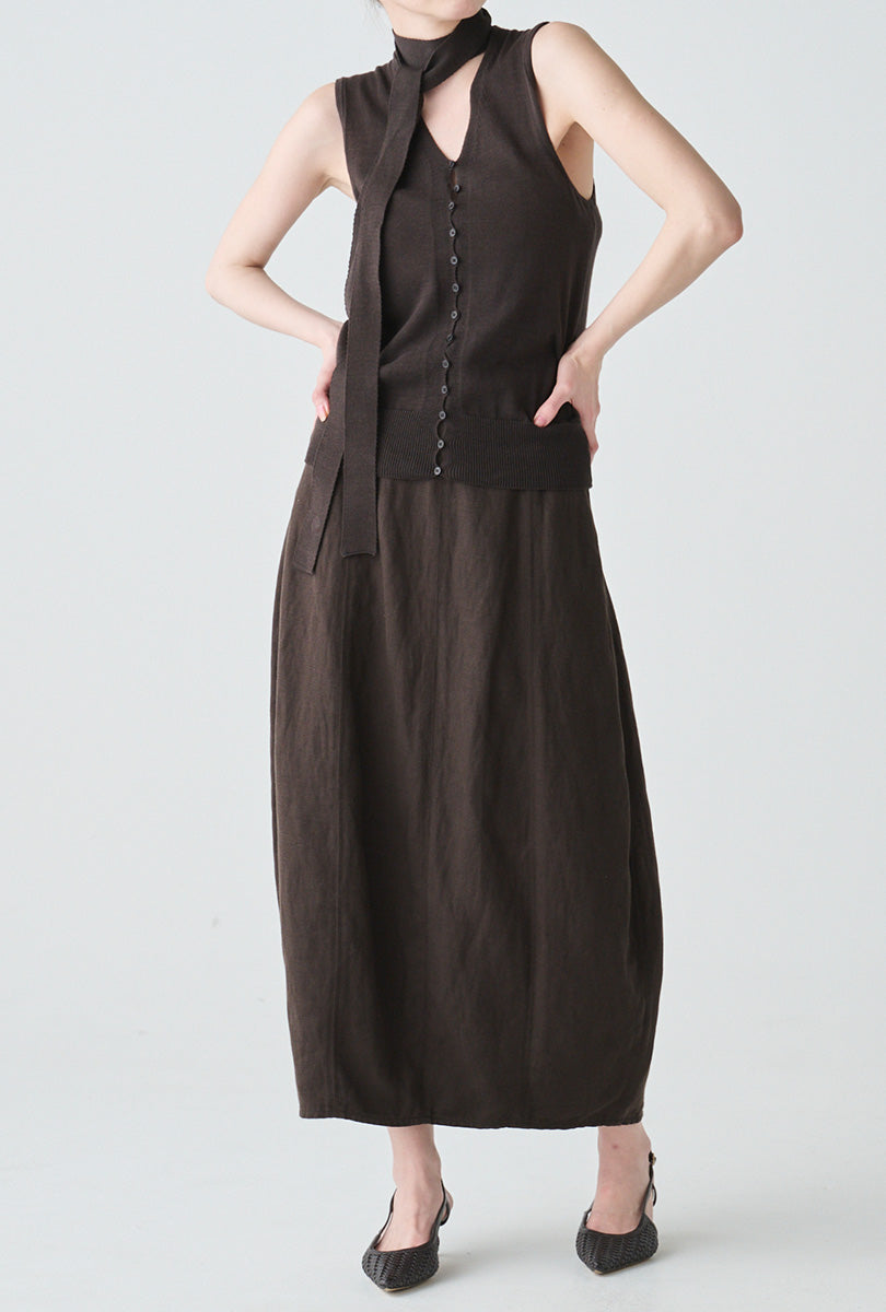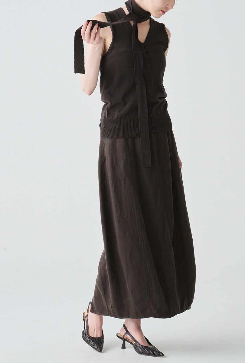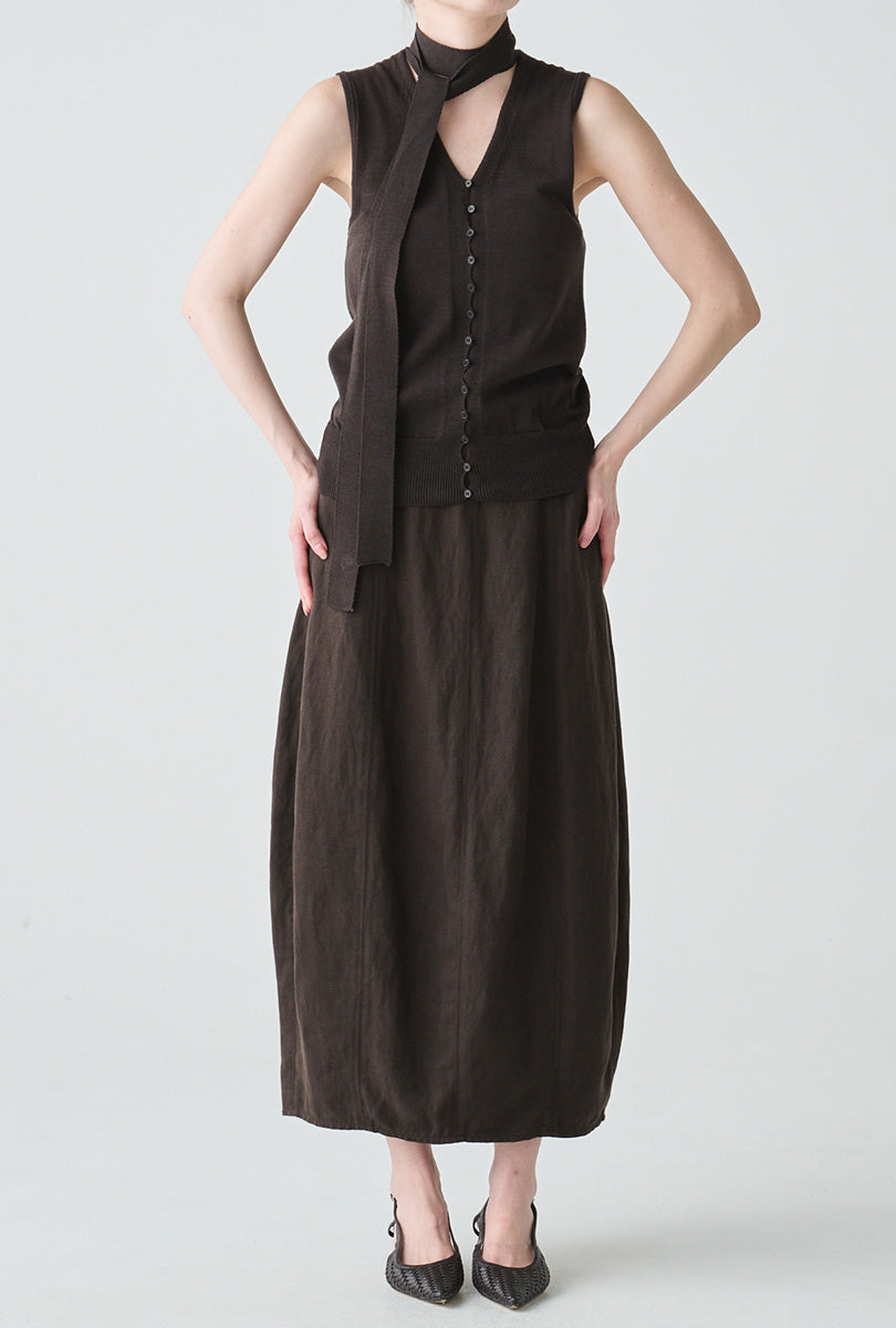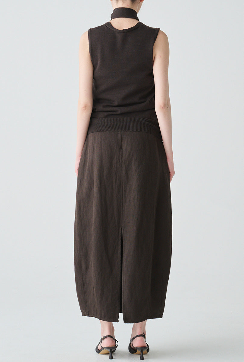 リネンにシルクをブレンドした、軽やかさと上質感を兼ね備えたコクーンシルエットのスカート