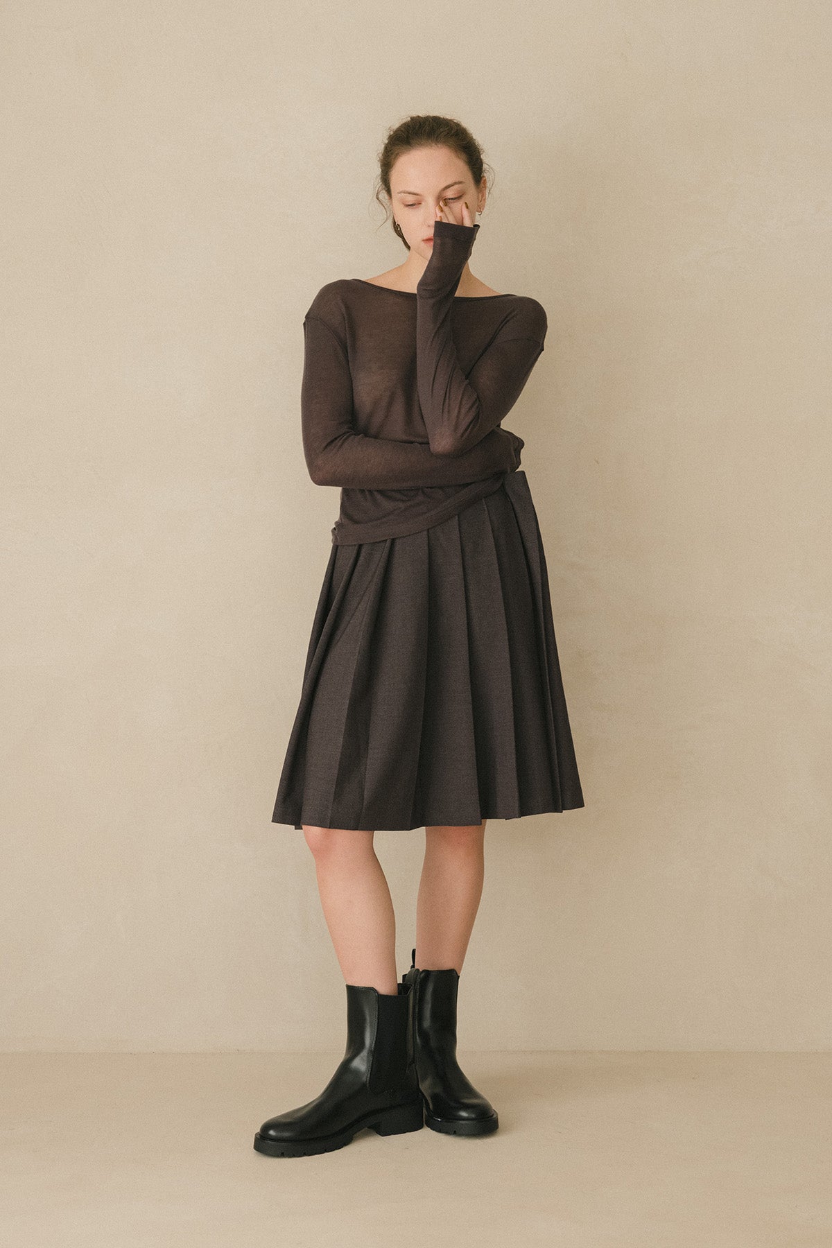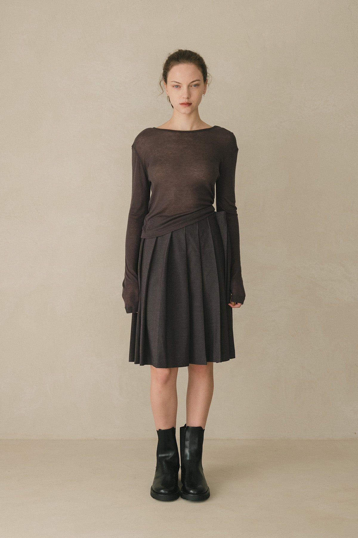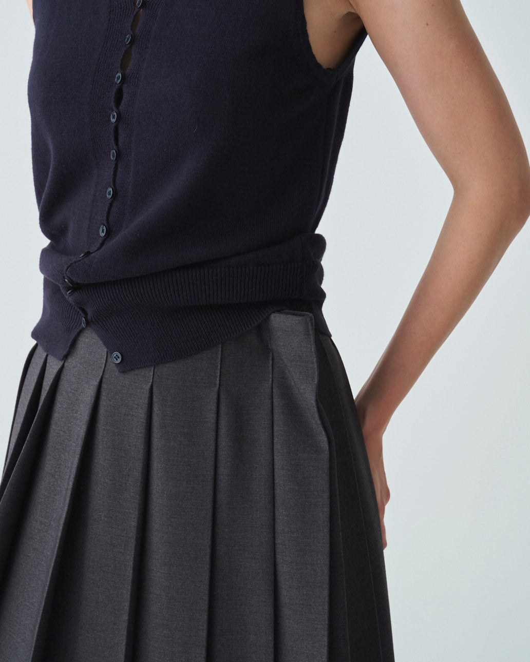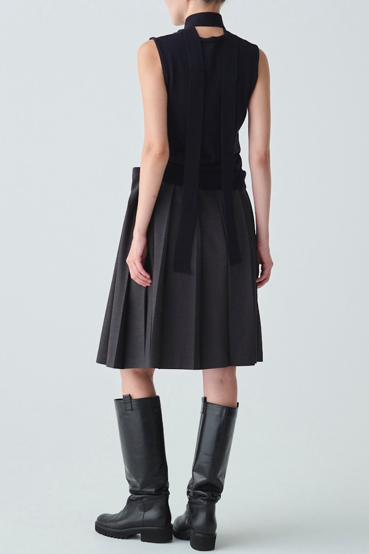 総プリーツ、ポケット無し、左前ウエストデザインアクセント有り