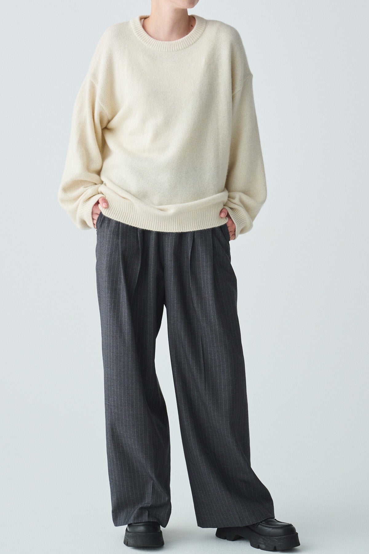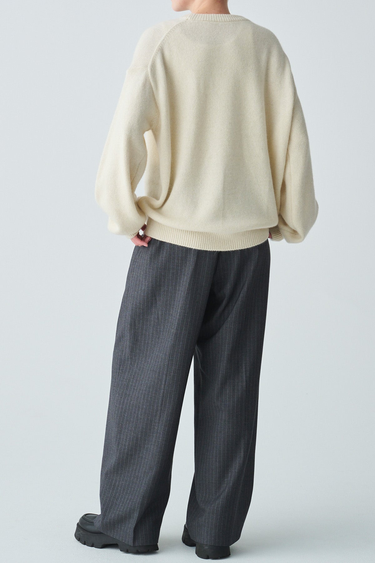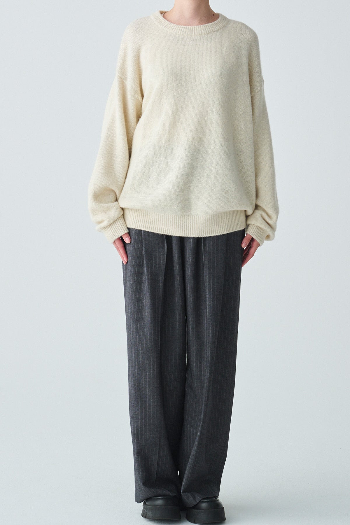 【仕様】クルーネック、袖口・裾口・リブ編み、衿のみダブルリブ編み