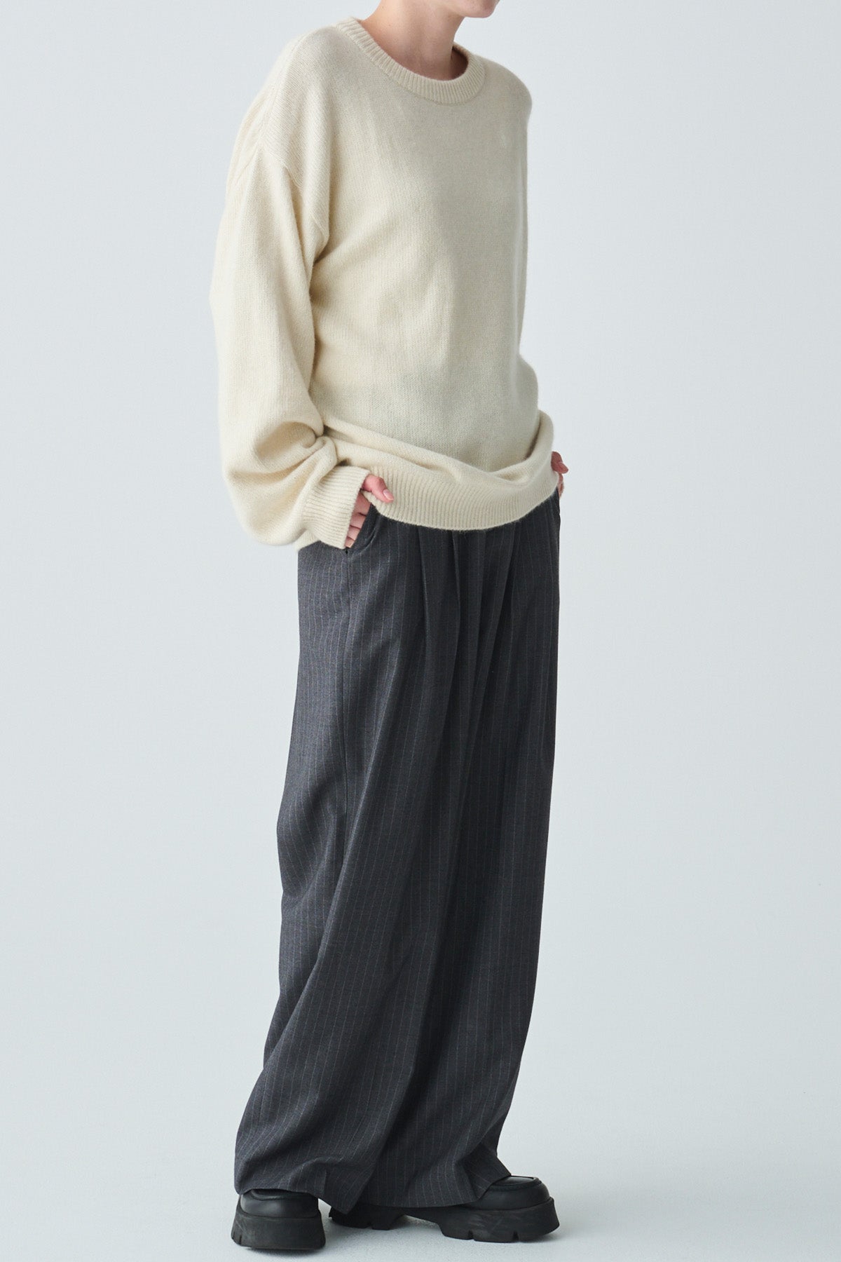 ふんわりとしたラクーン混の柔らかく包み込まれるような着心地のプルオーバー