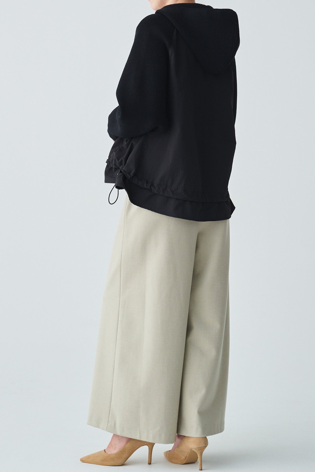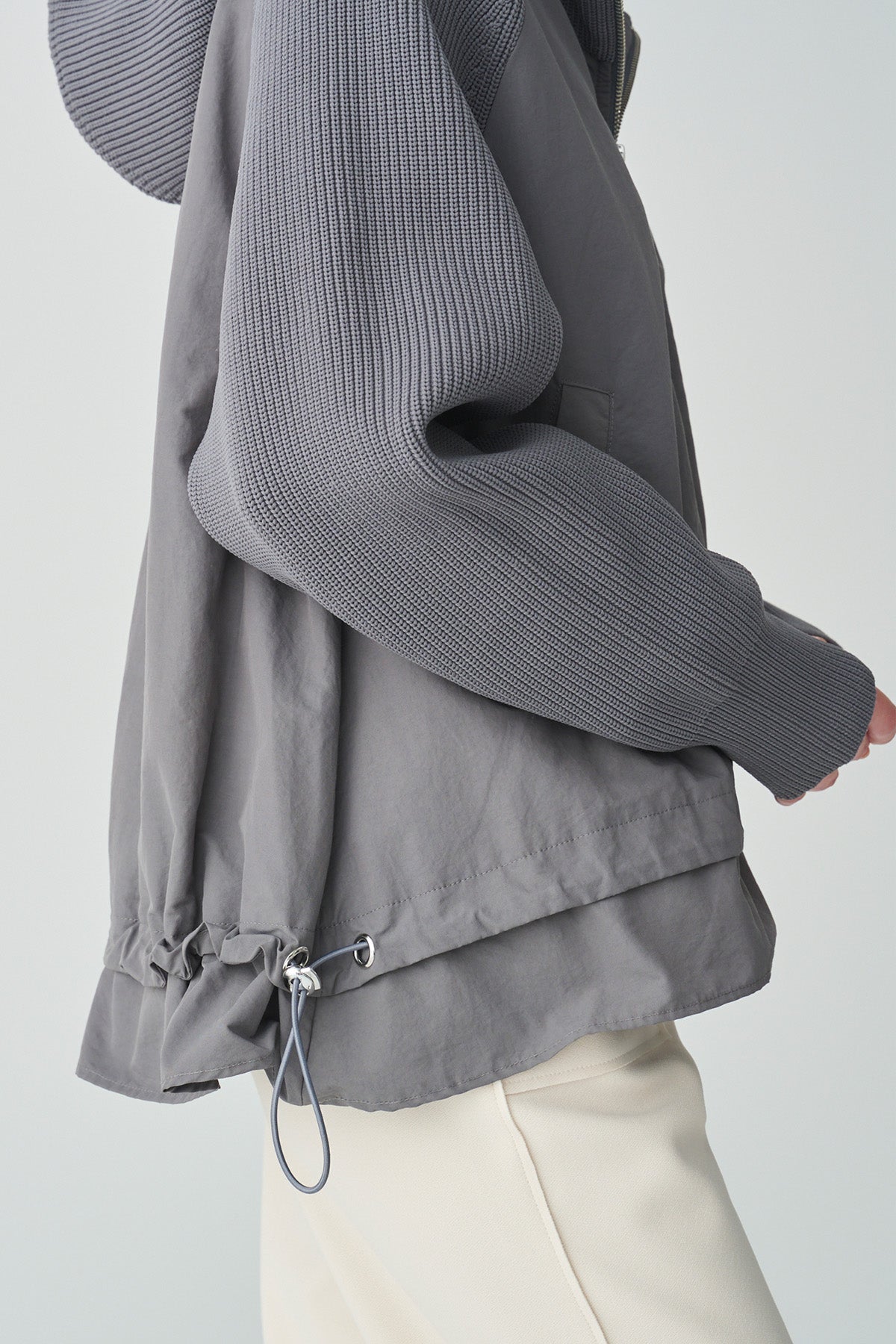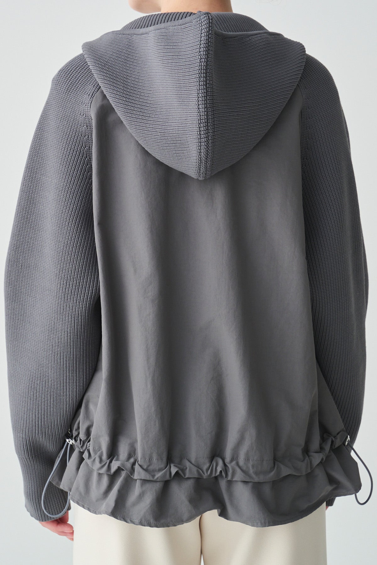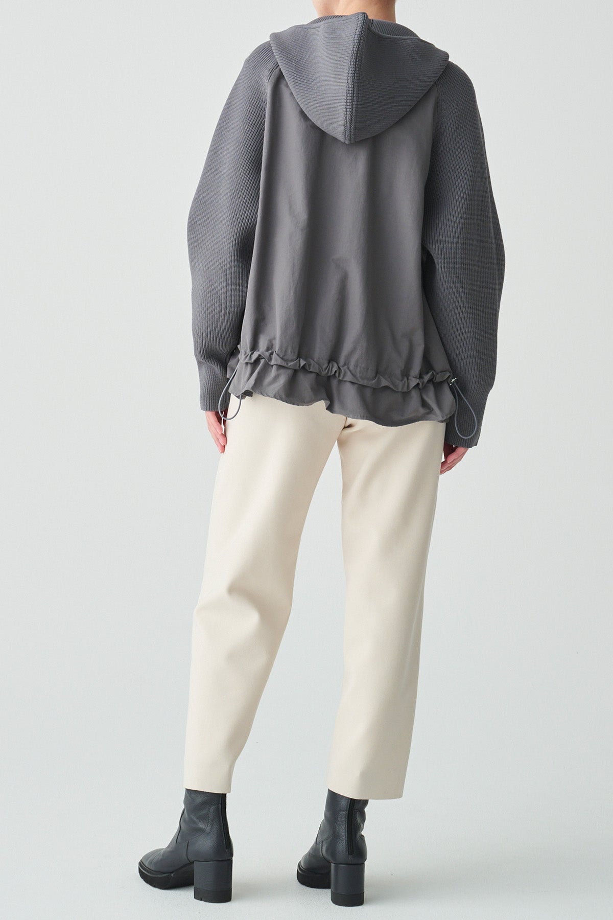 立体的なフォルムを美しく際立たせてくれるニットと柔らかなワッシャー加工の異素材ドッキングが魅力