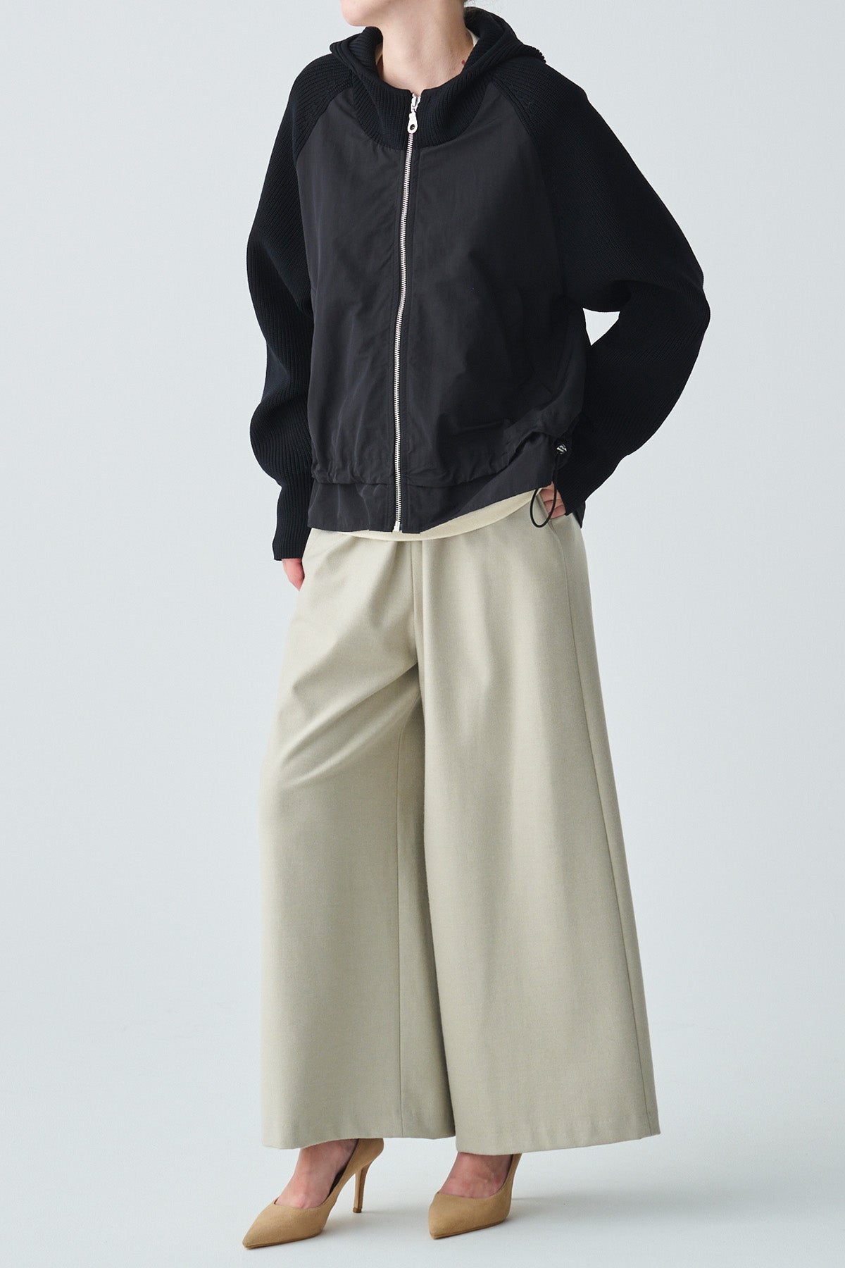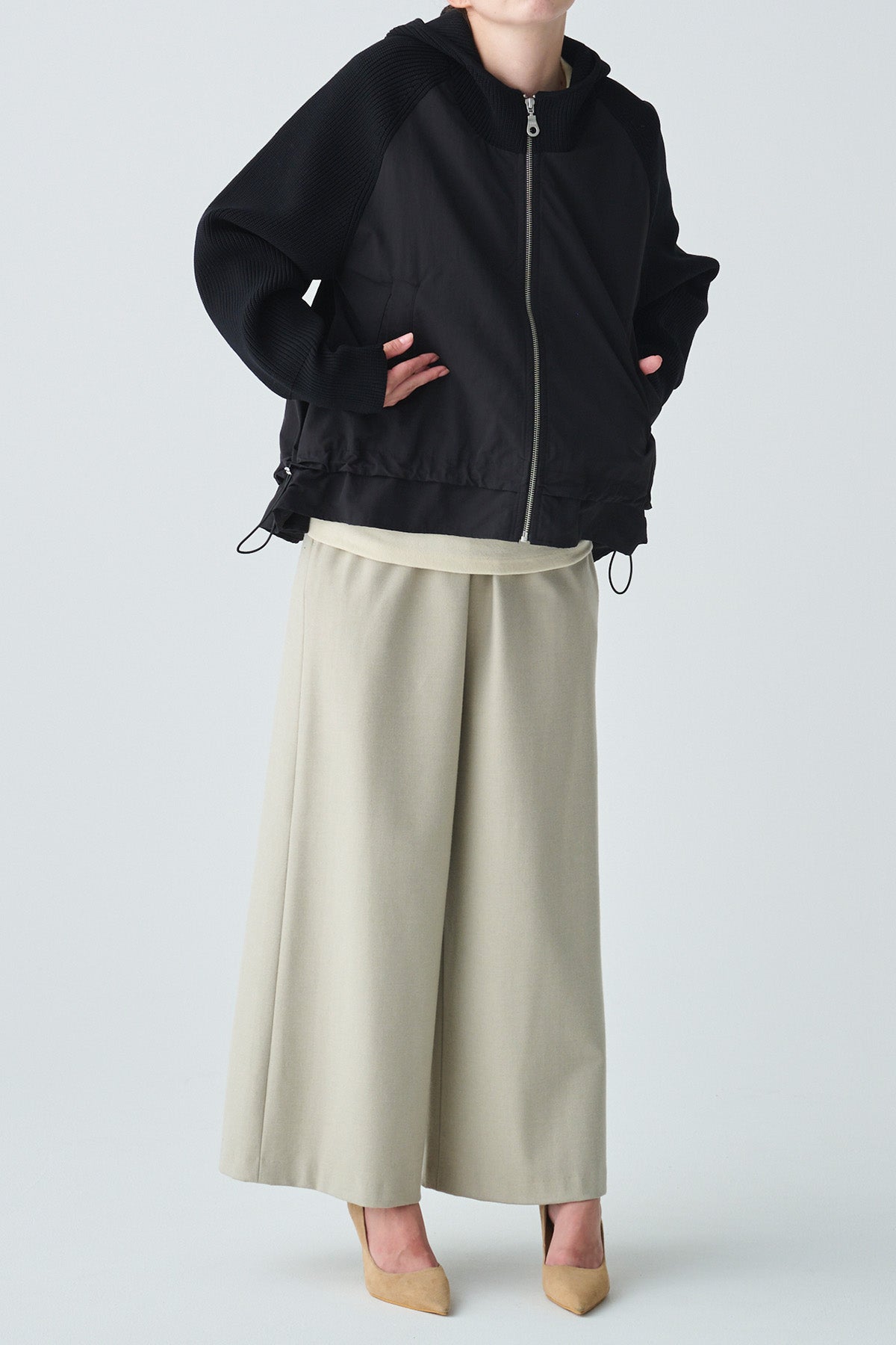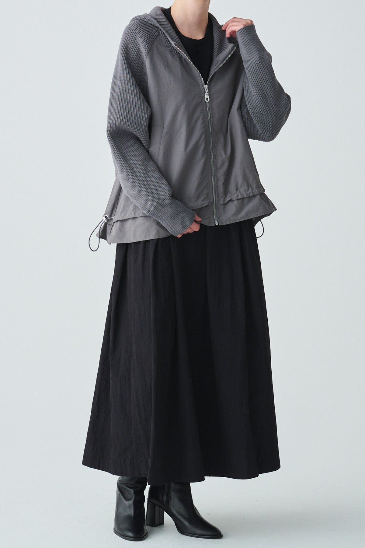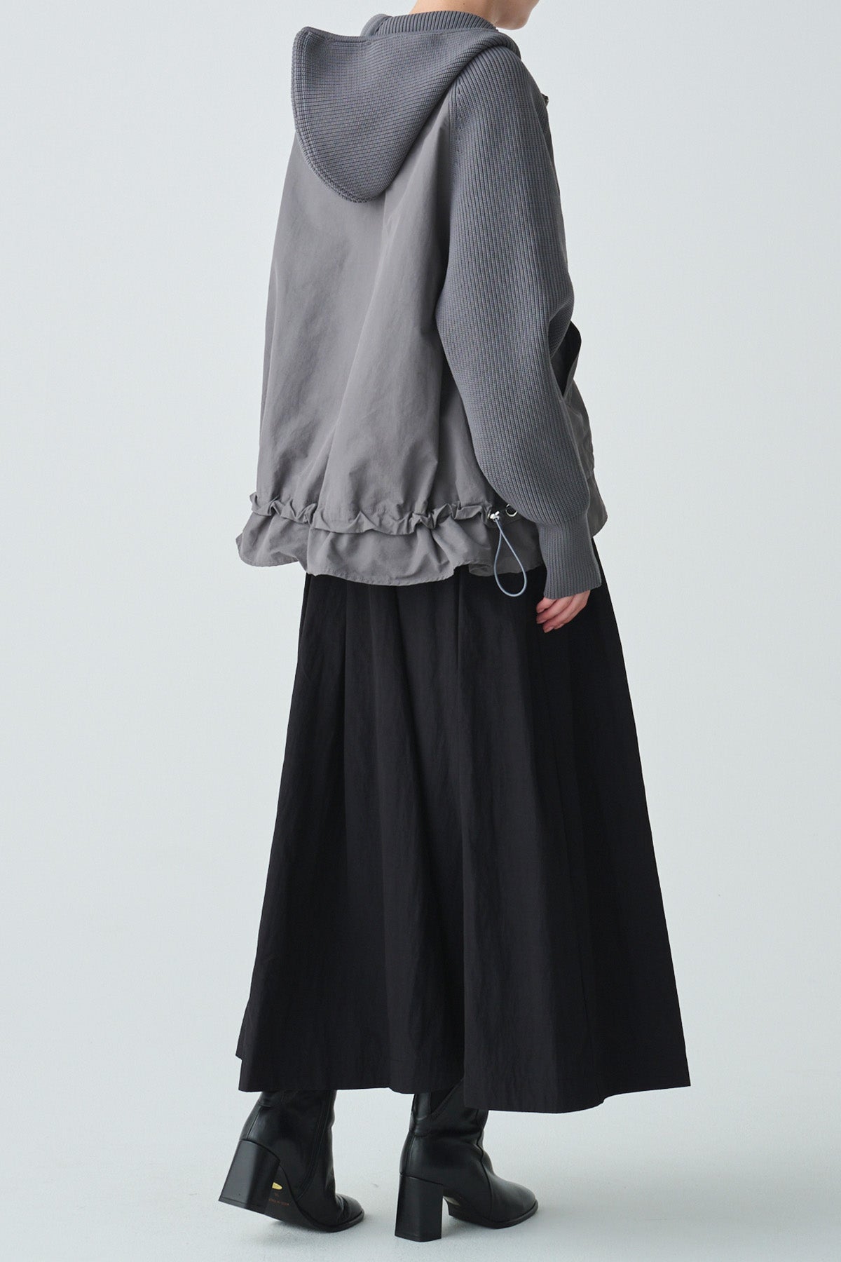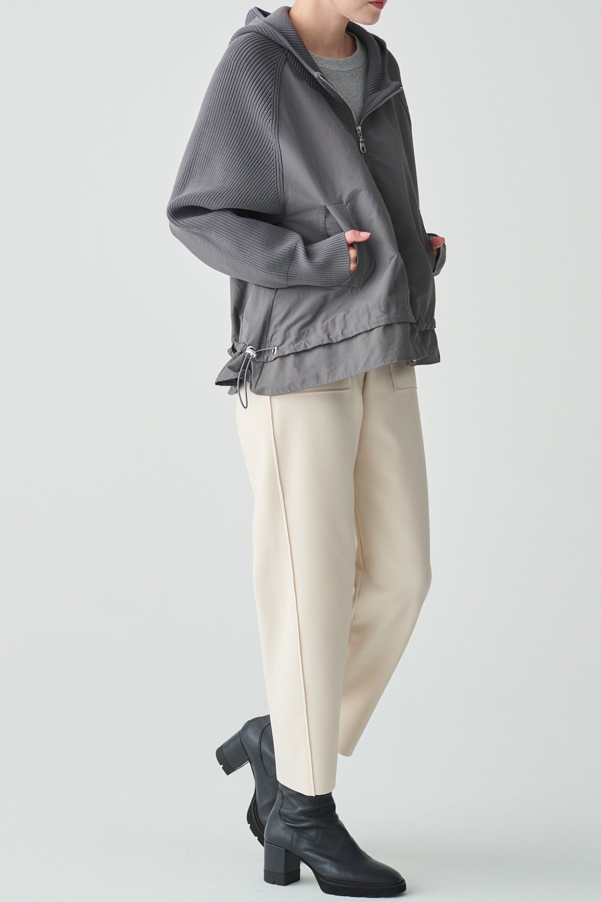 立体的なフォルムを美しく際立たせてくれるニットと柔らかなワッシャー加工の異素材ドッキングが魅力
