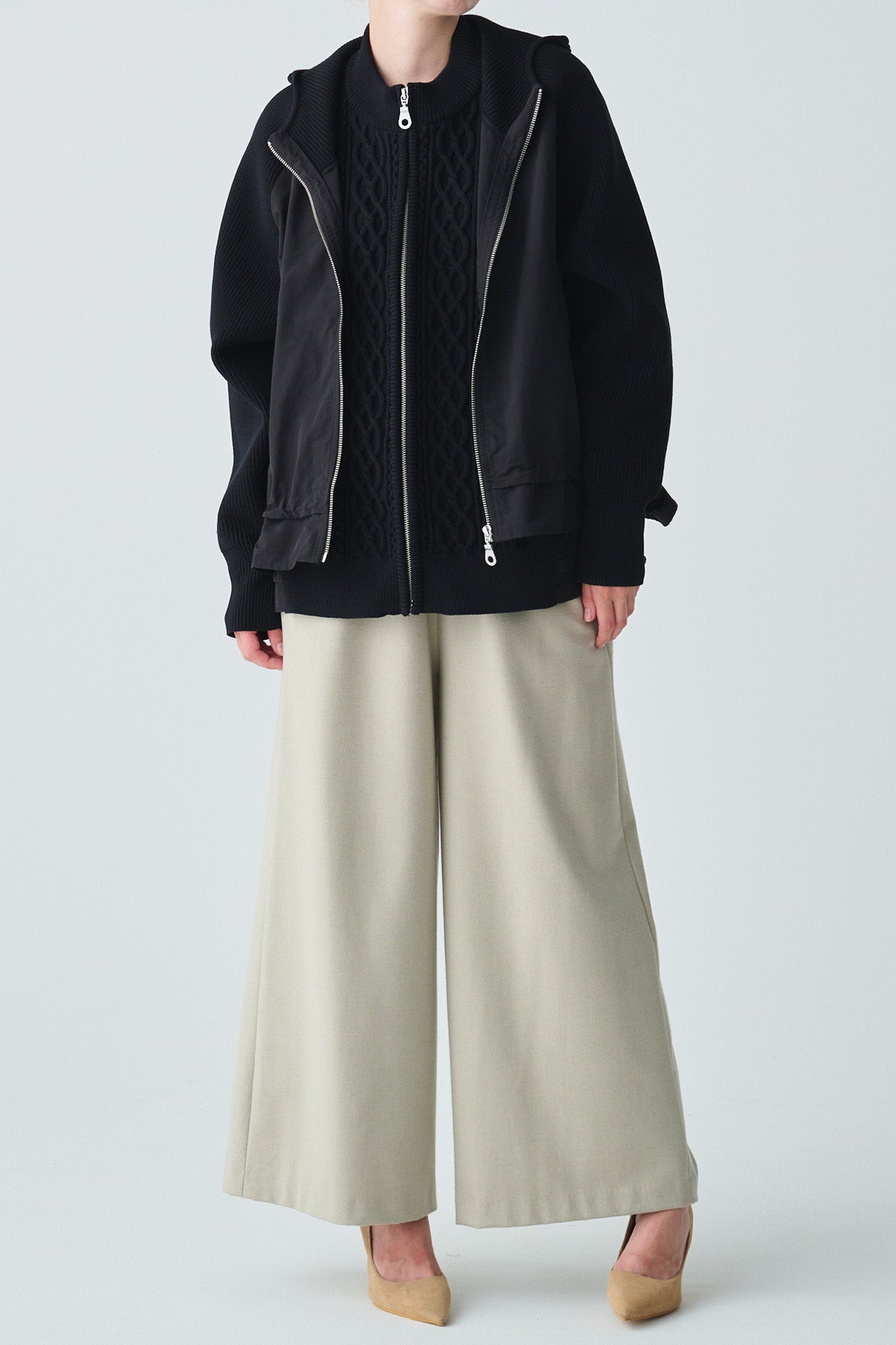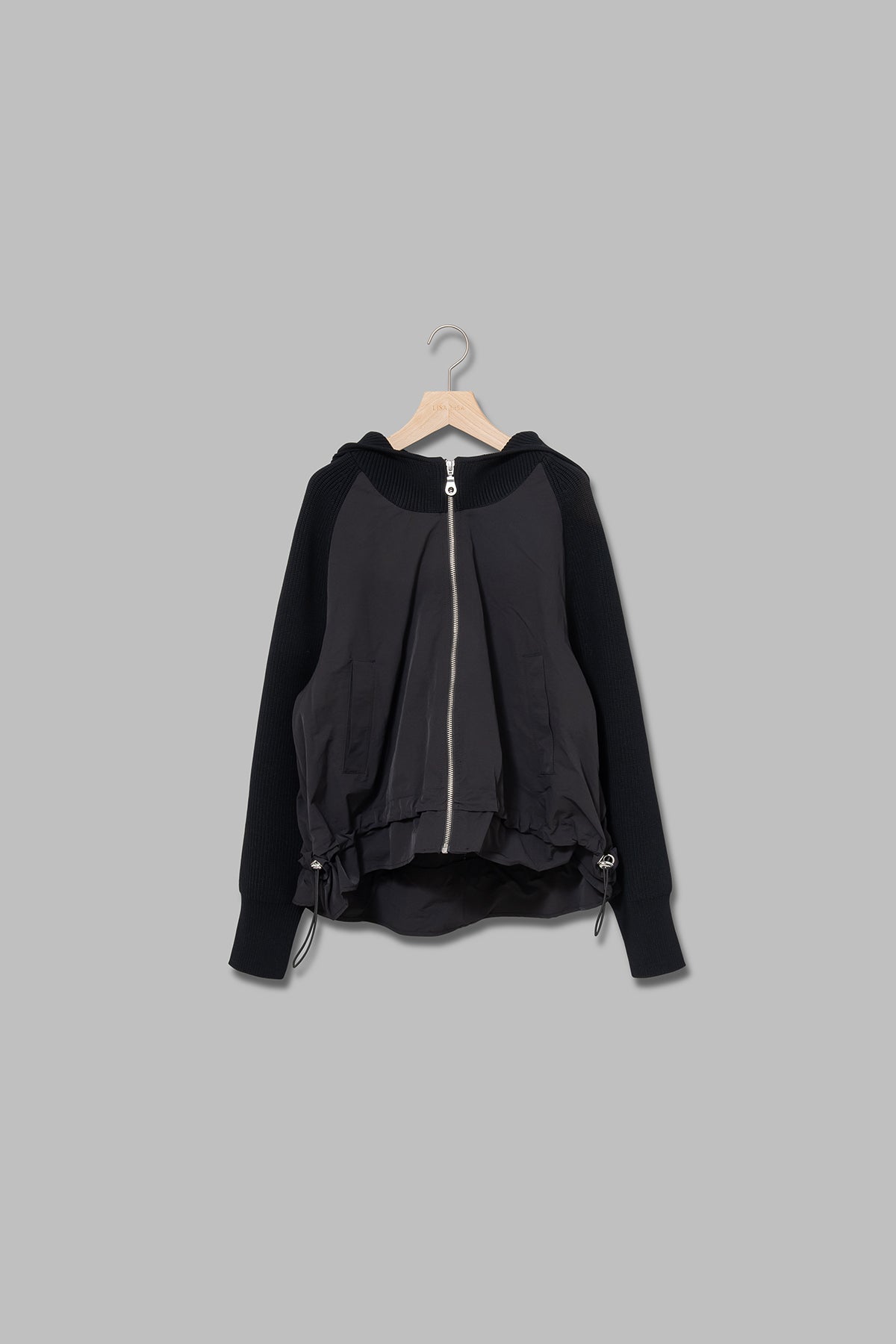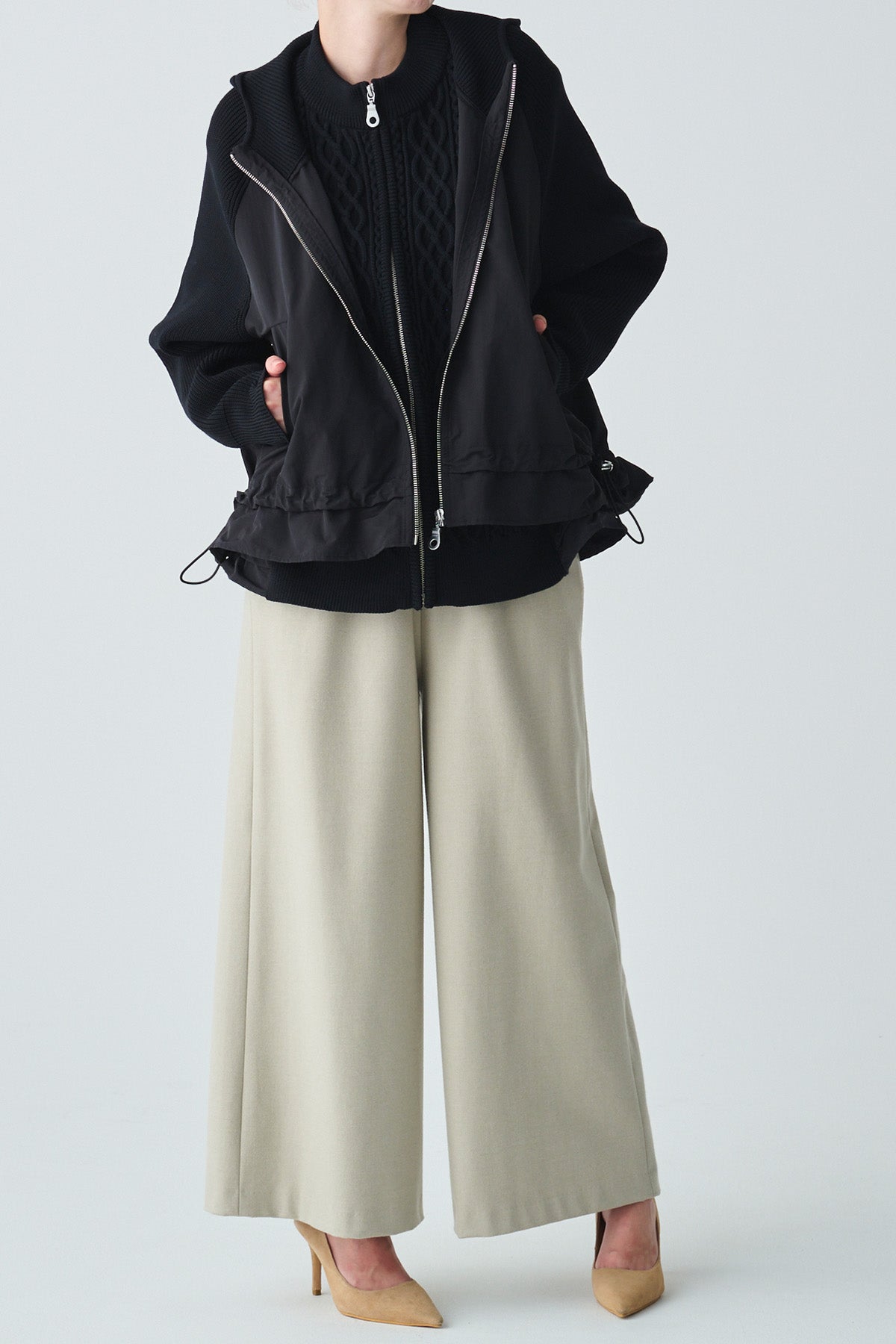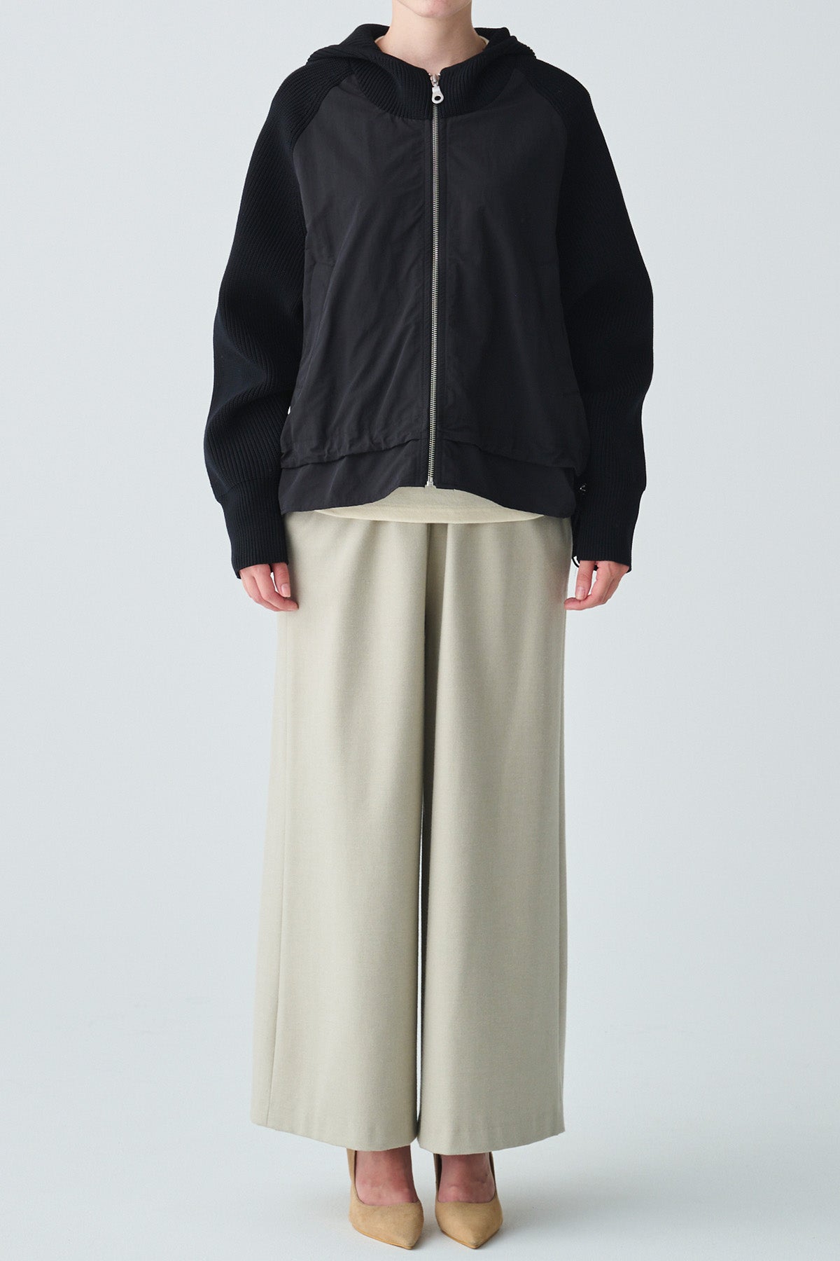 立体的なフォルムを美しく際立たせてくれるニットと柔らかなワッシャー加工の異素材ドッキングが魅力
