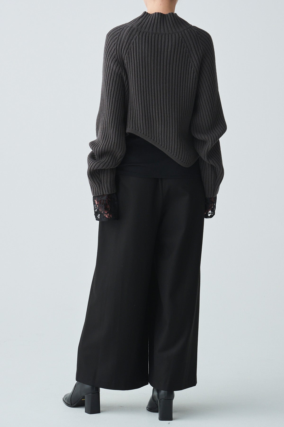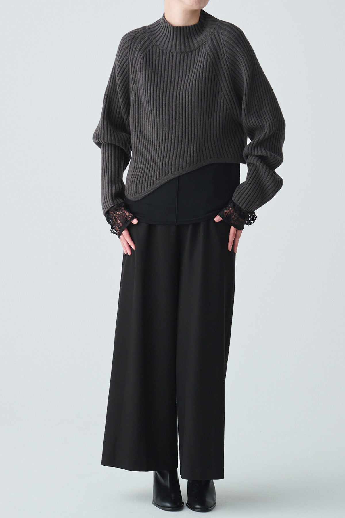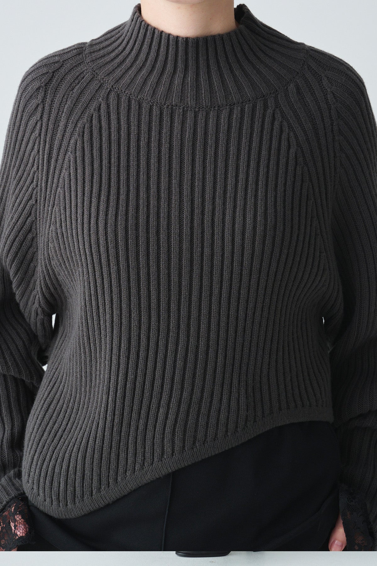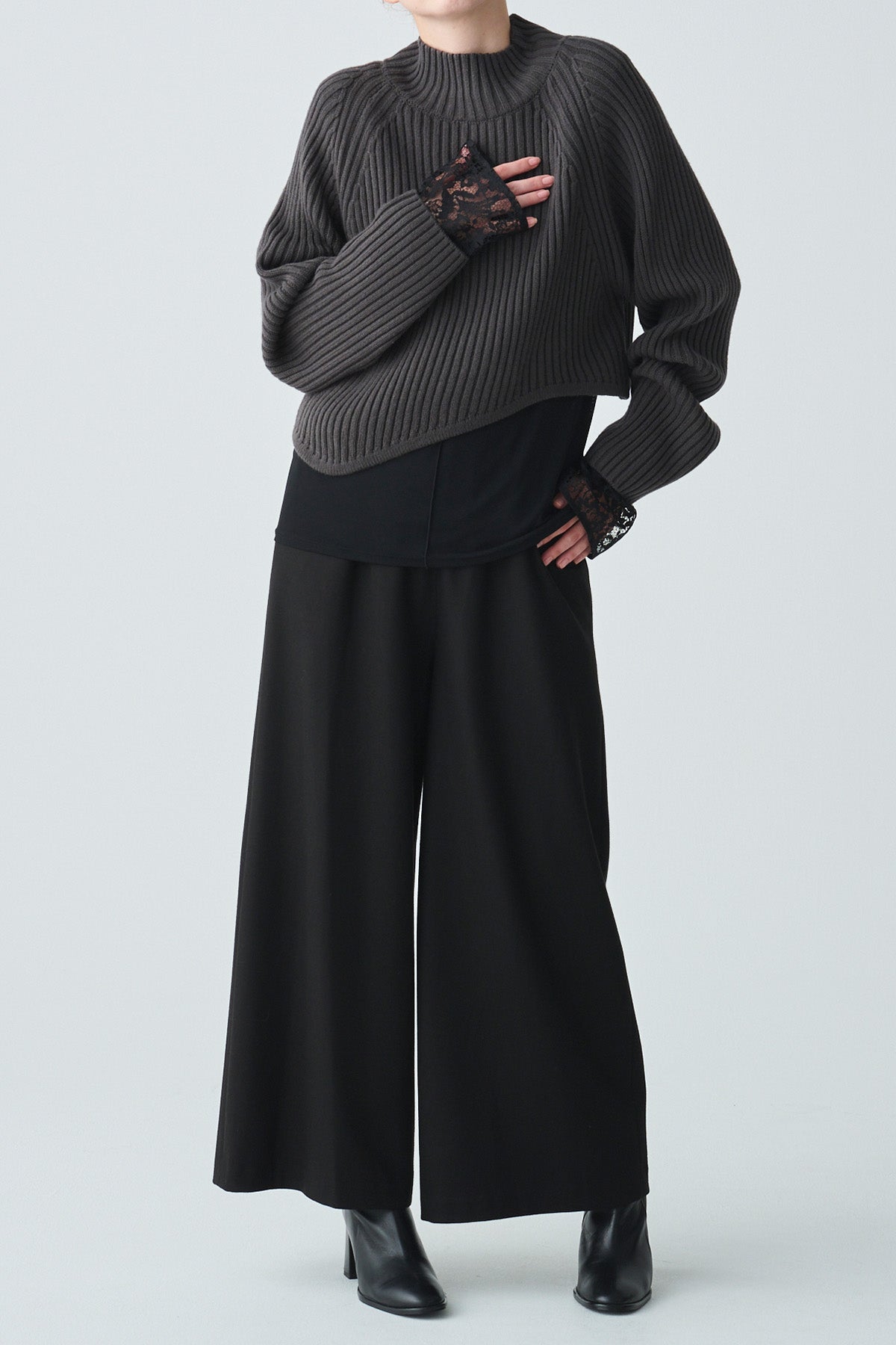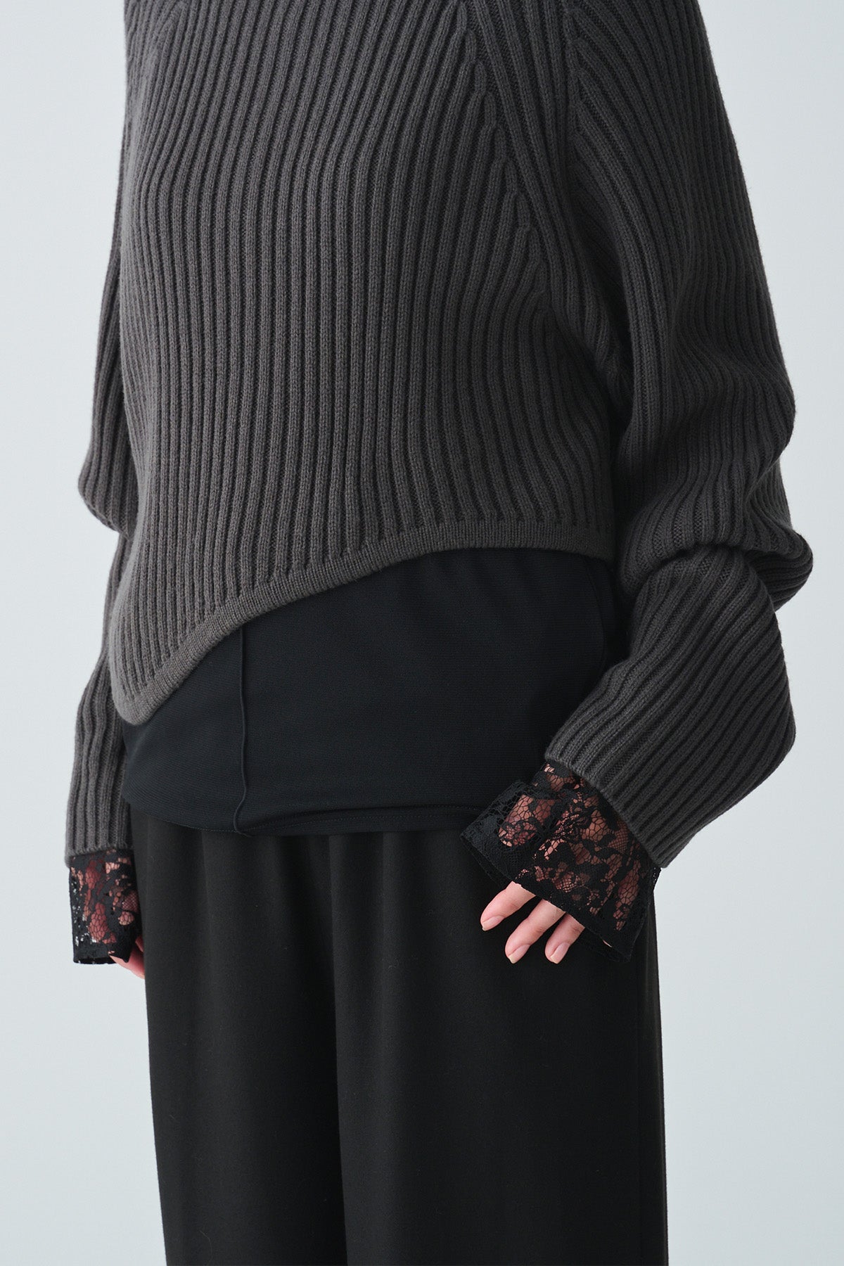 程よい透け感のメッシュ素材に、袖口のレースのコントラストが美しいプルオーバー