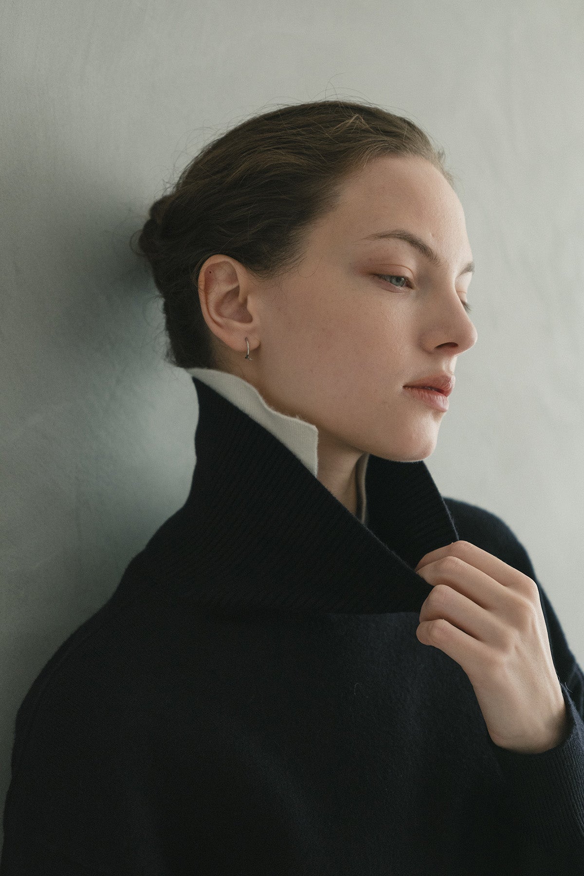 折り返すとレイヤード風に、伸ばせばハイネックとして着用可能