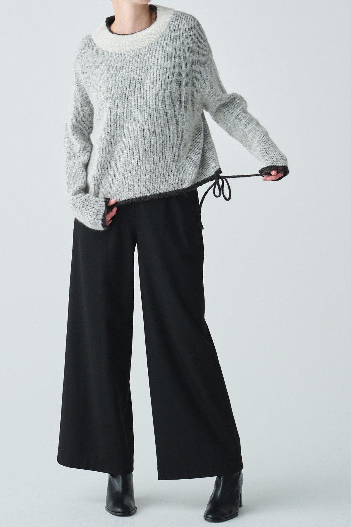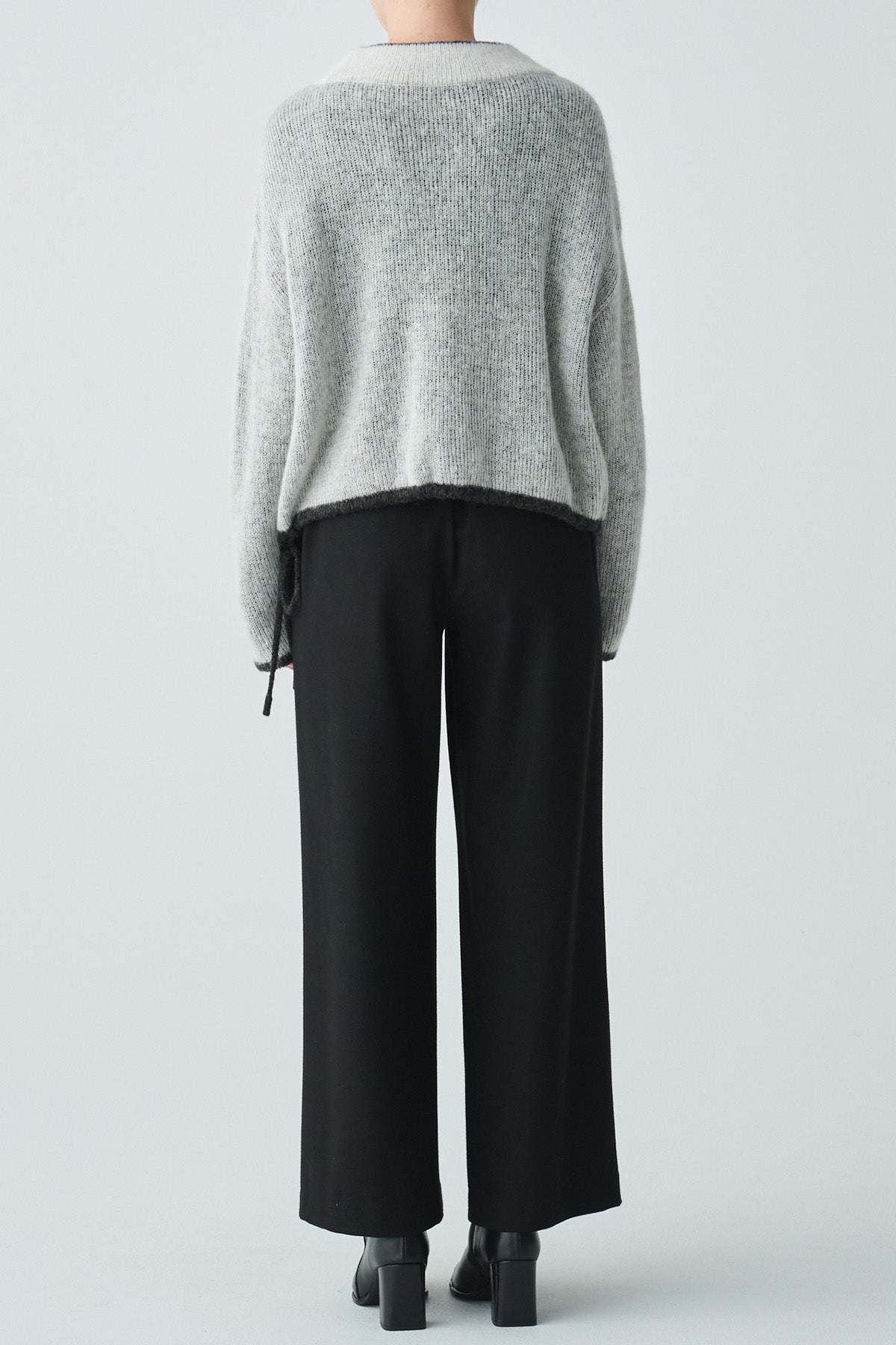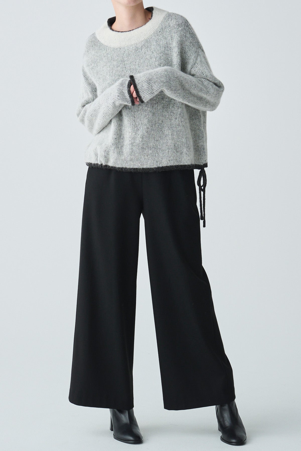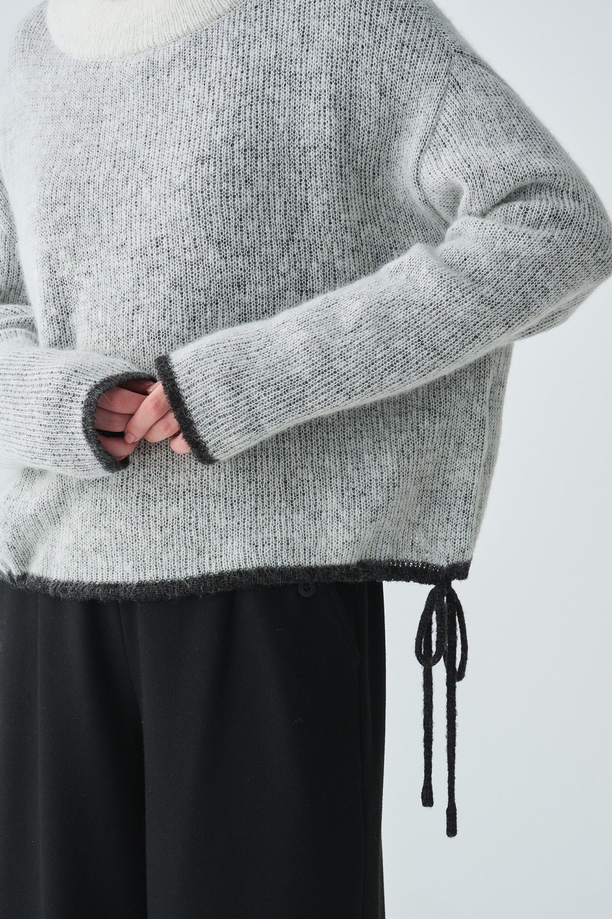 ふんわりと軽やかなアルパカ混素材を使用した、2枚仕立てのバイカラーニット