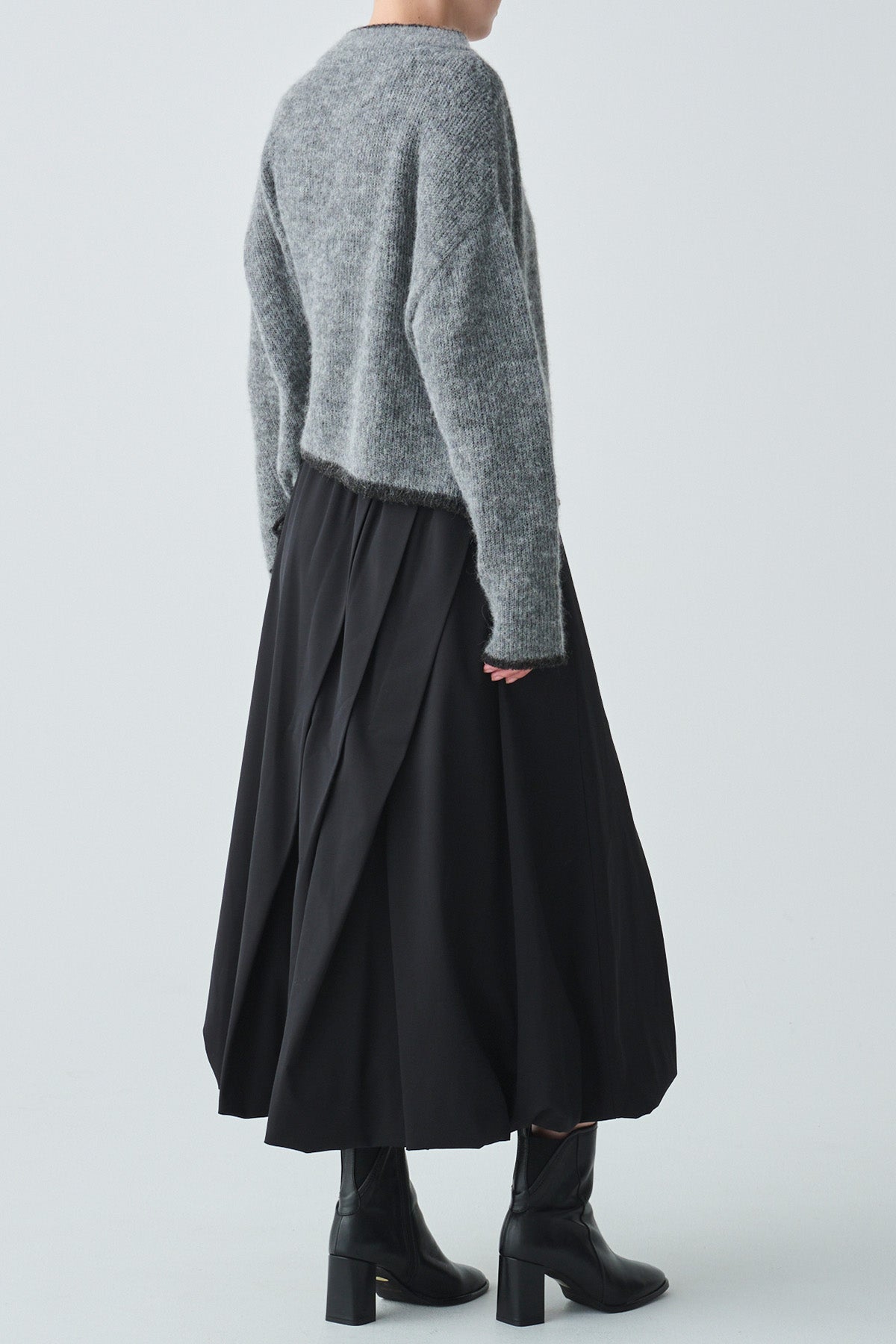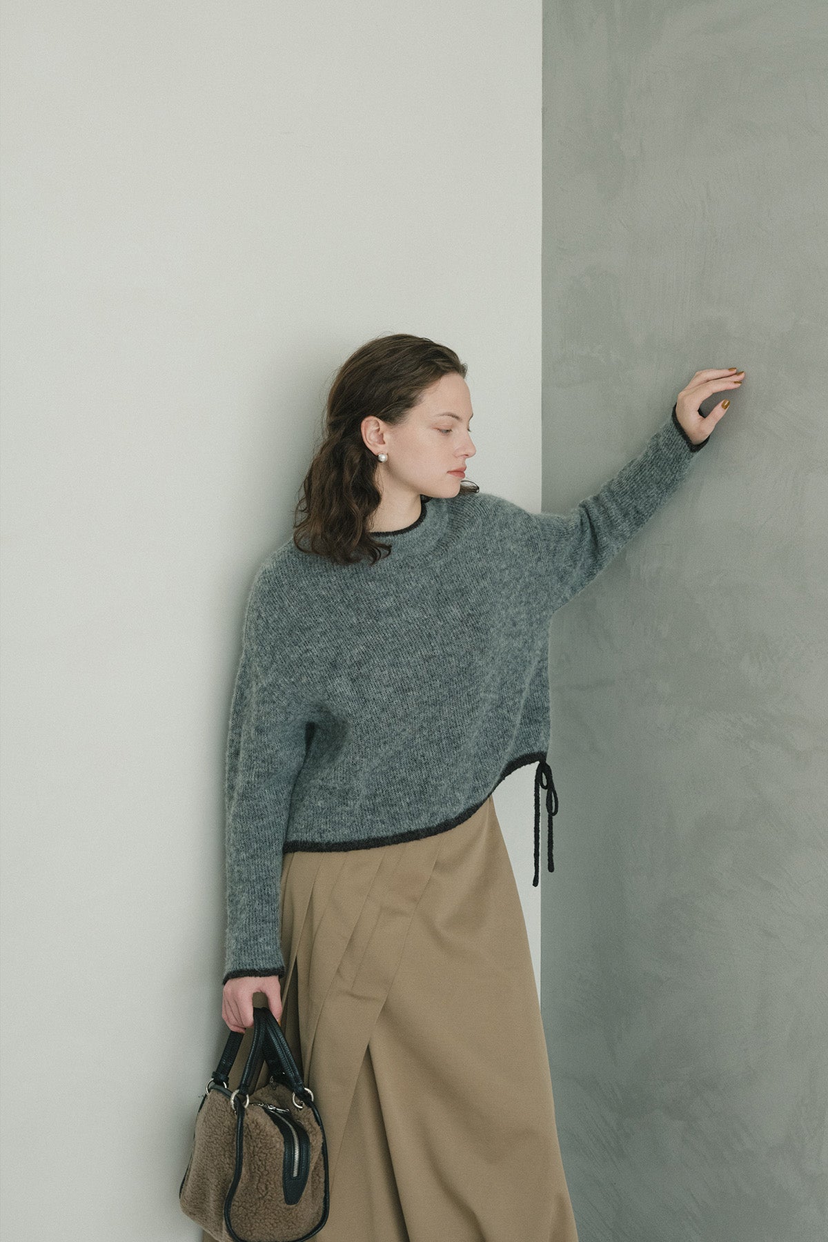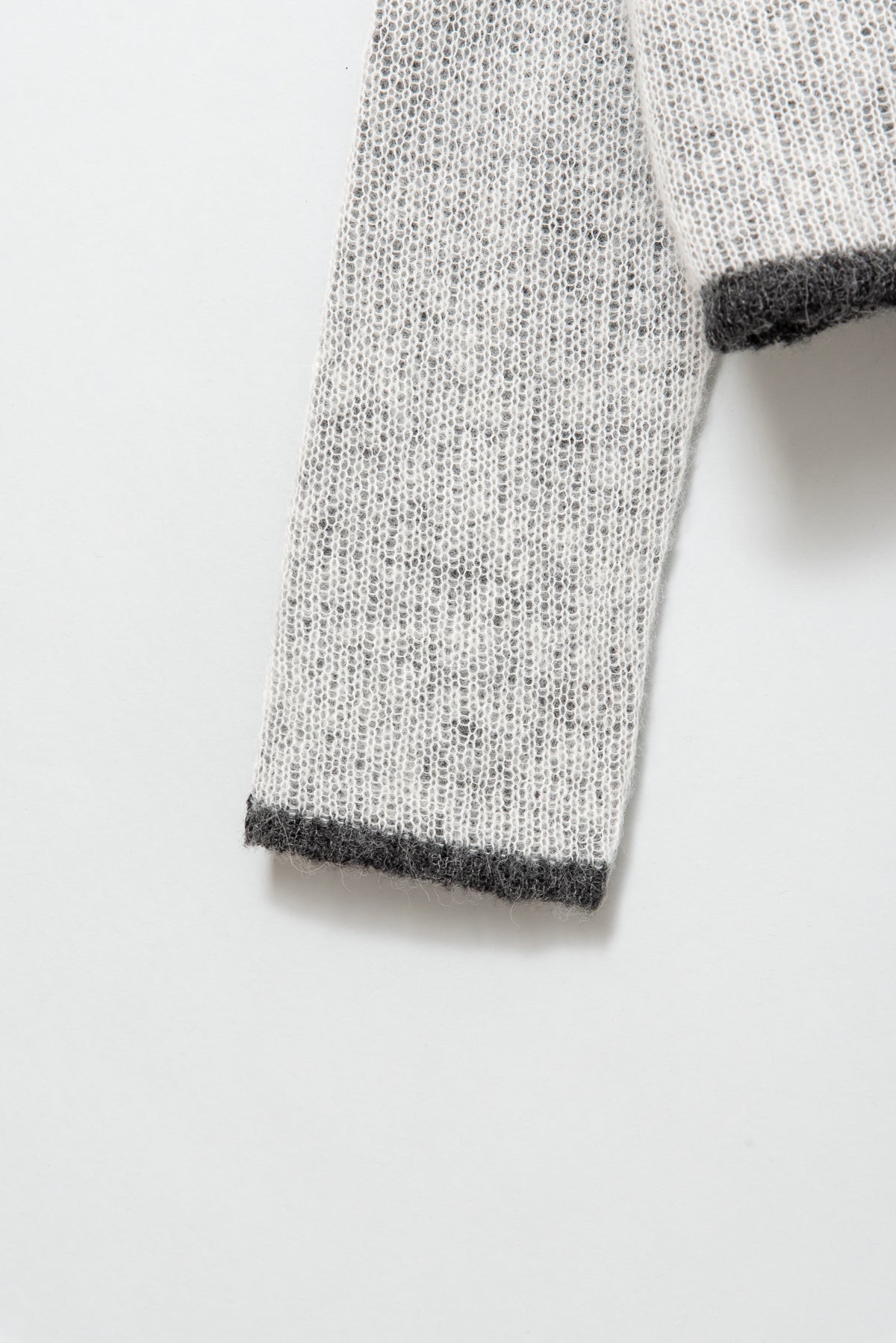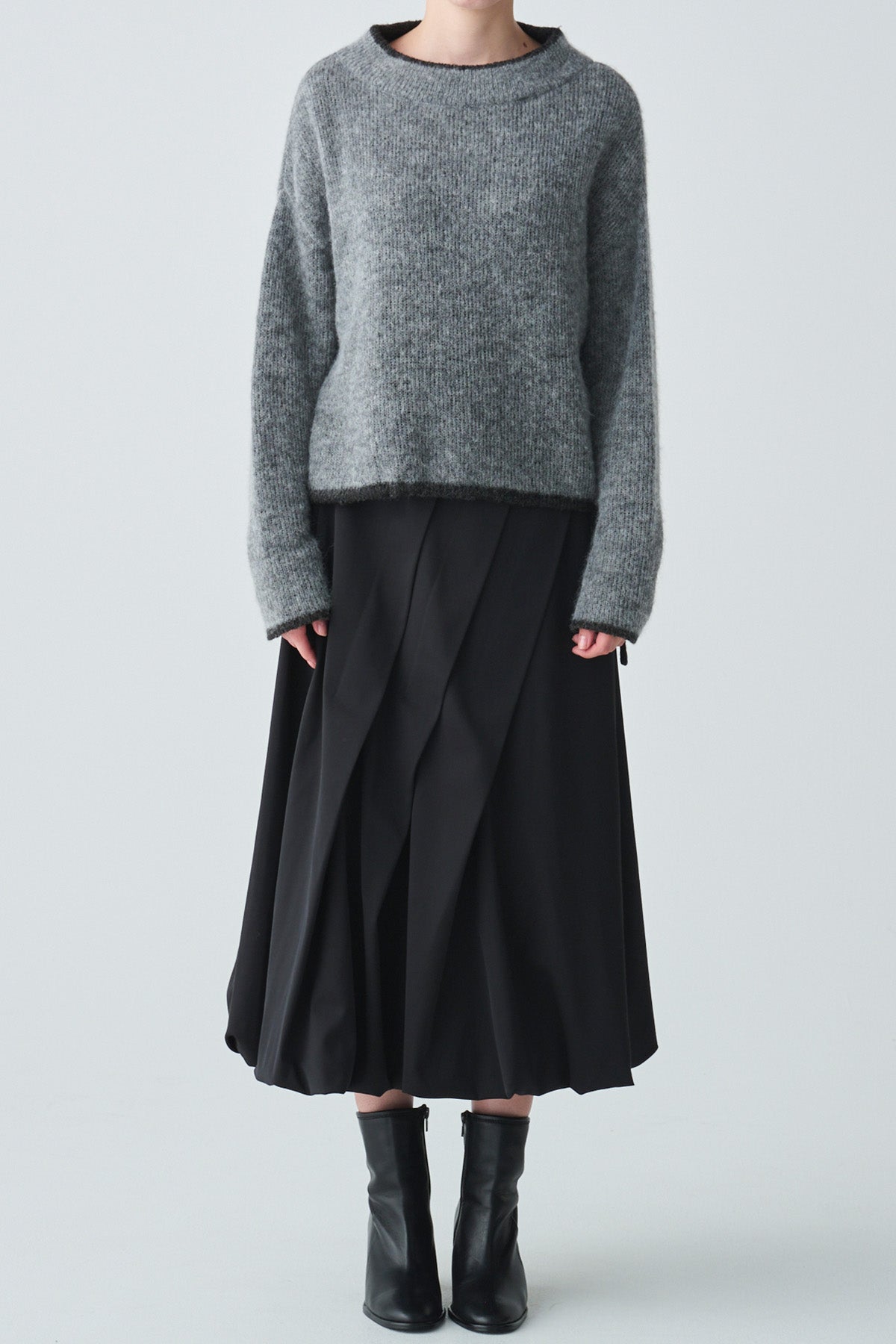 ふんわりと軽やかなアルパカ混素材を使用した、2枚仕立てのバイカラーニット