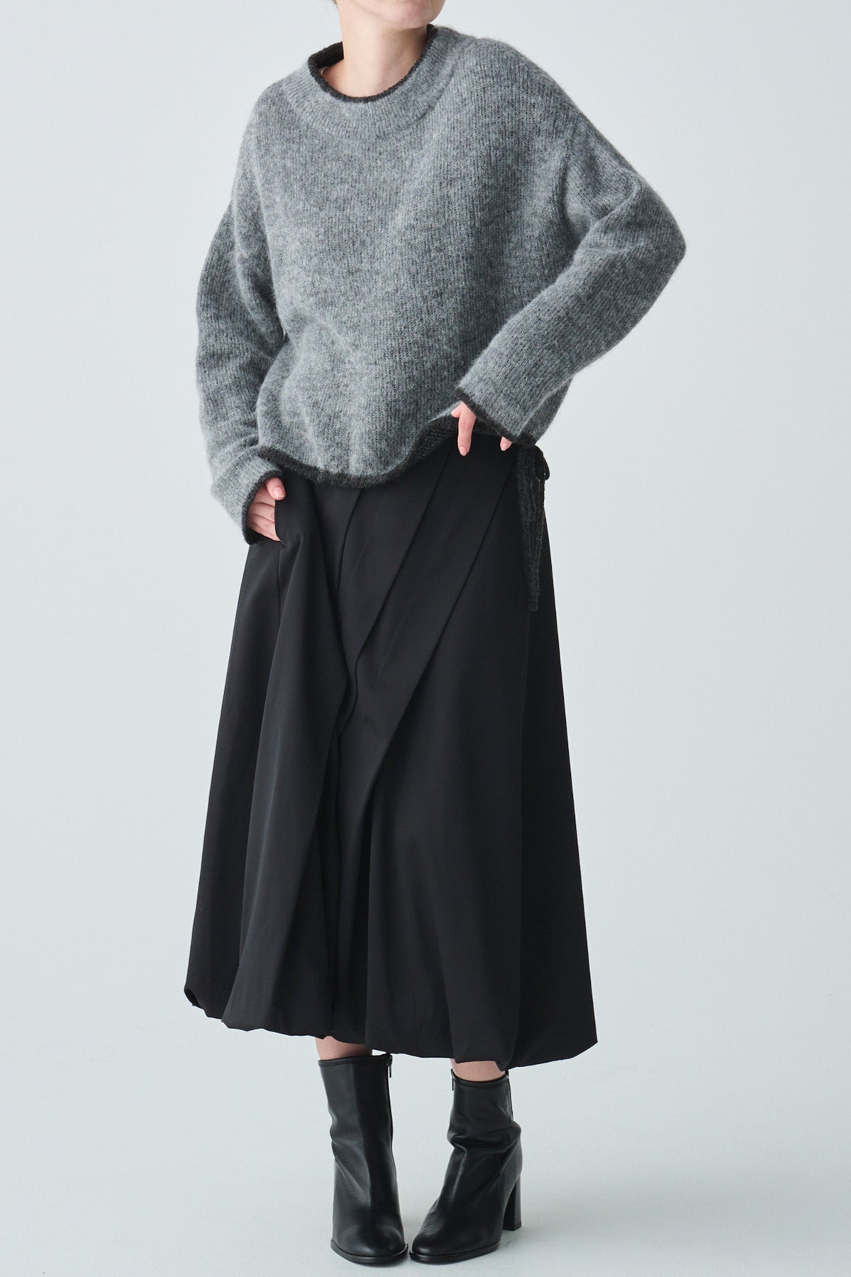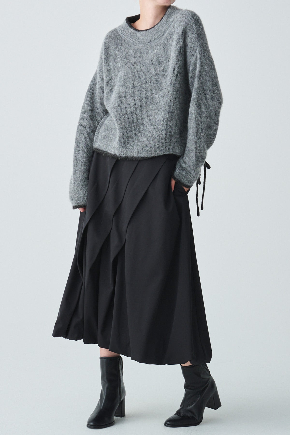 片側サイドにはドロストデザインを施し、シルエットにニュアンスをプラス