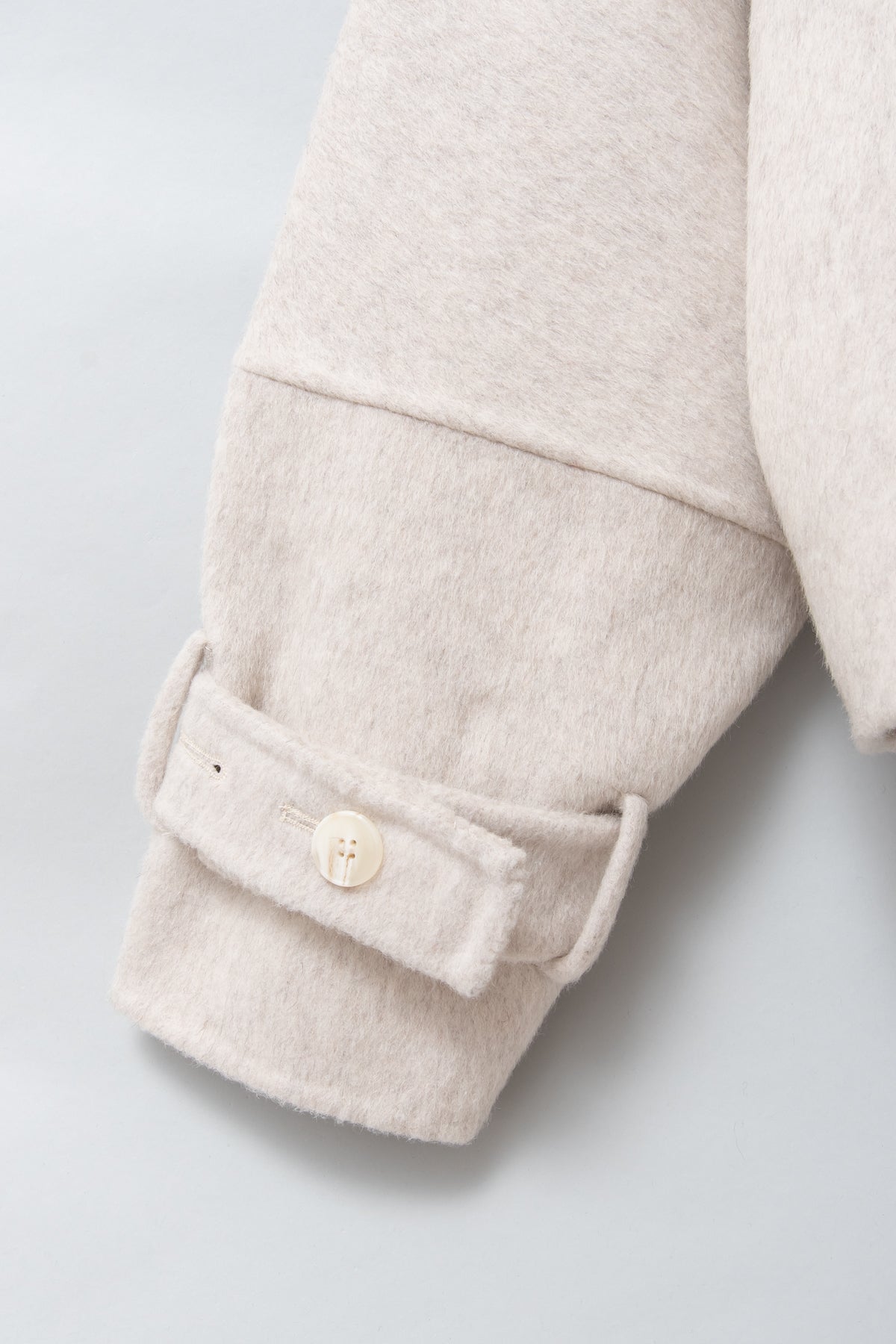【仕様】裏無し、ドルマンスリーブ、前比翼明き、袖口タブ釦ホール2ヶ