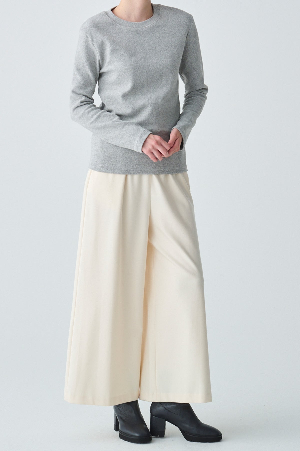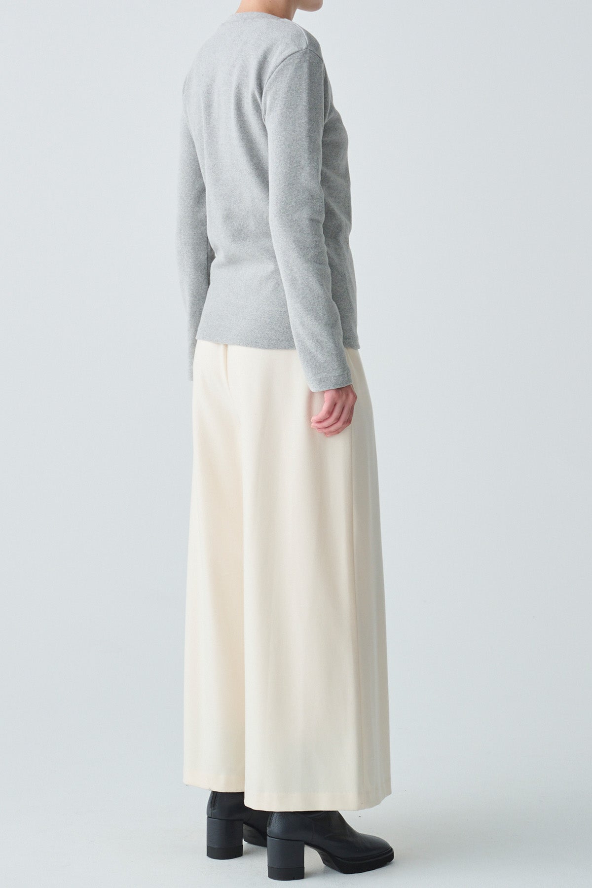 シンプルなクルーネックデザインだからこそ、一枚ではもちろん、ニットやジャケットのインナーとしても重宝します