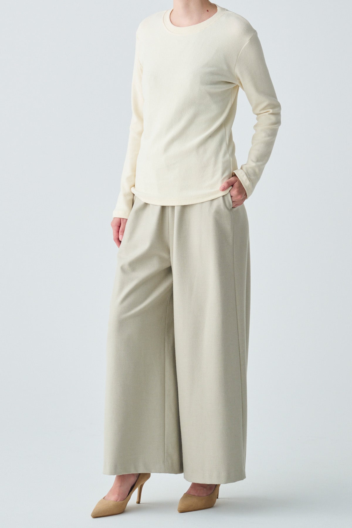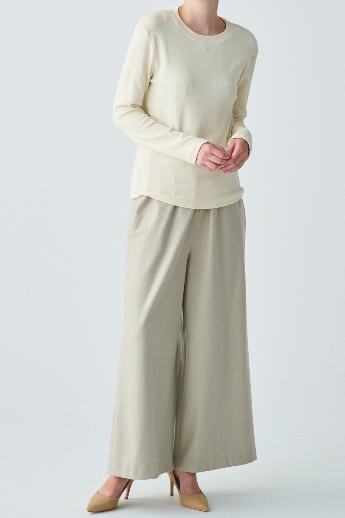 ほんのり起毛感のある柔らかな素材で、着るだけで心地よい暖かさを感じられるカットソー