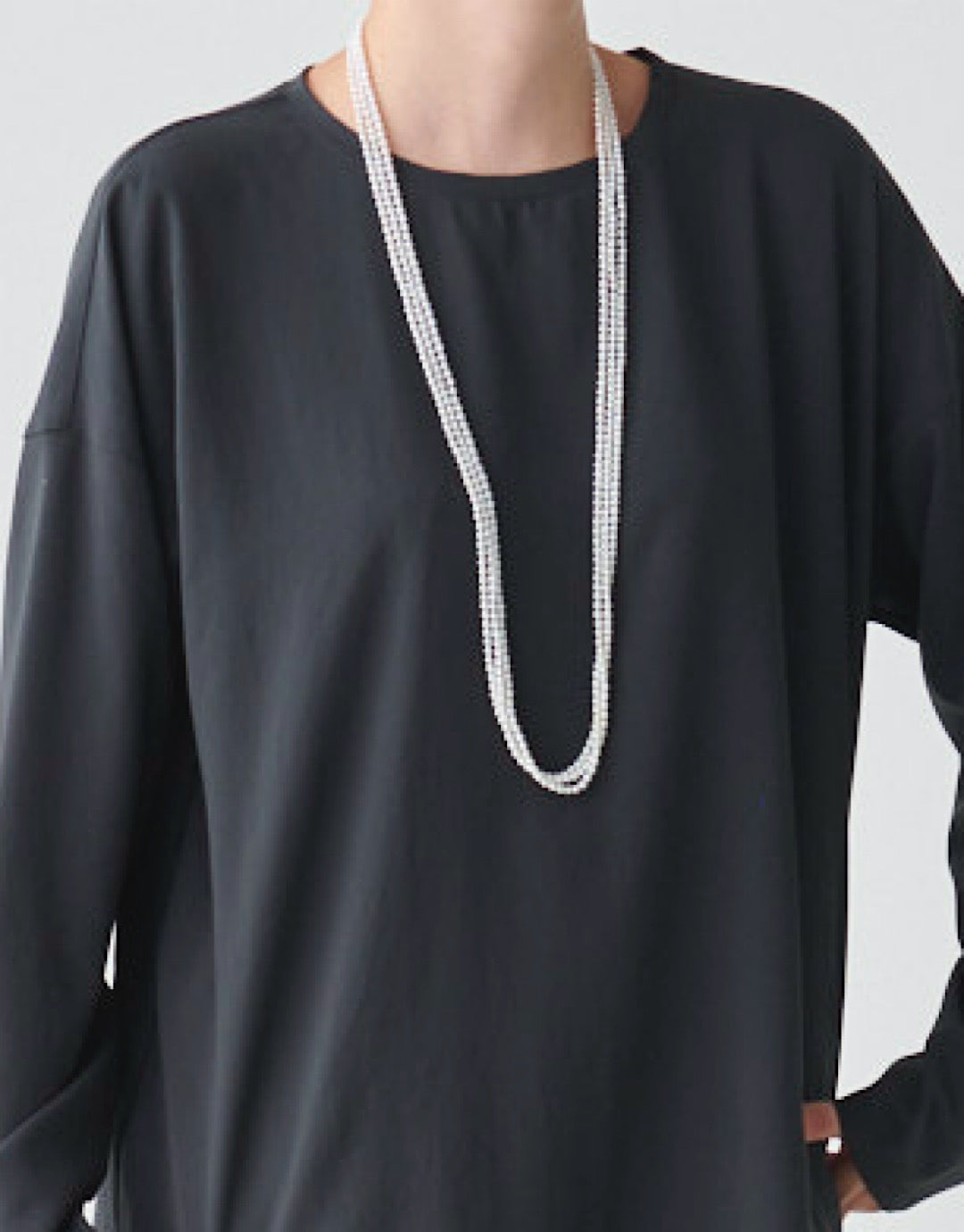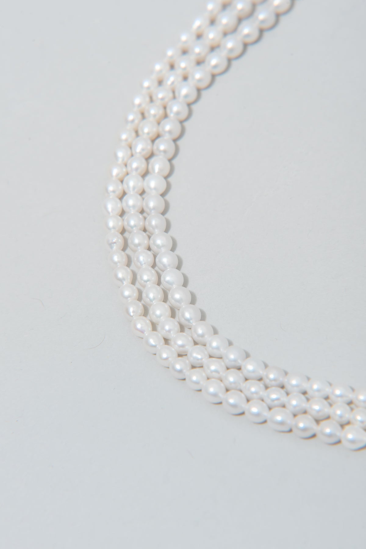 小粒の淡水パールを贅沢にあしらった、留め具なしのロングネックレス